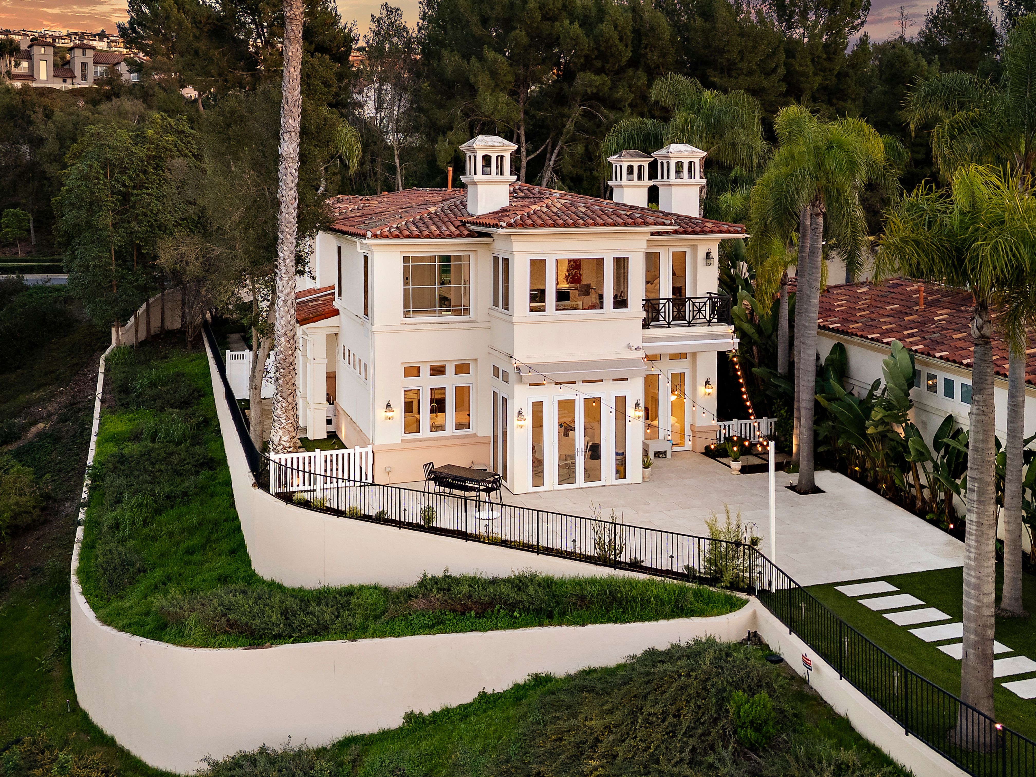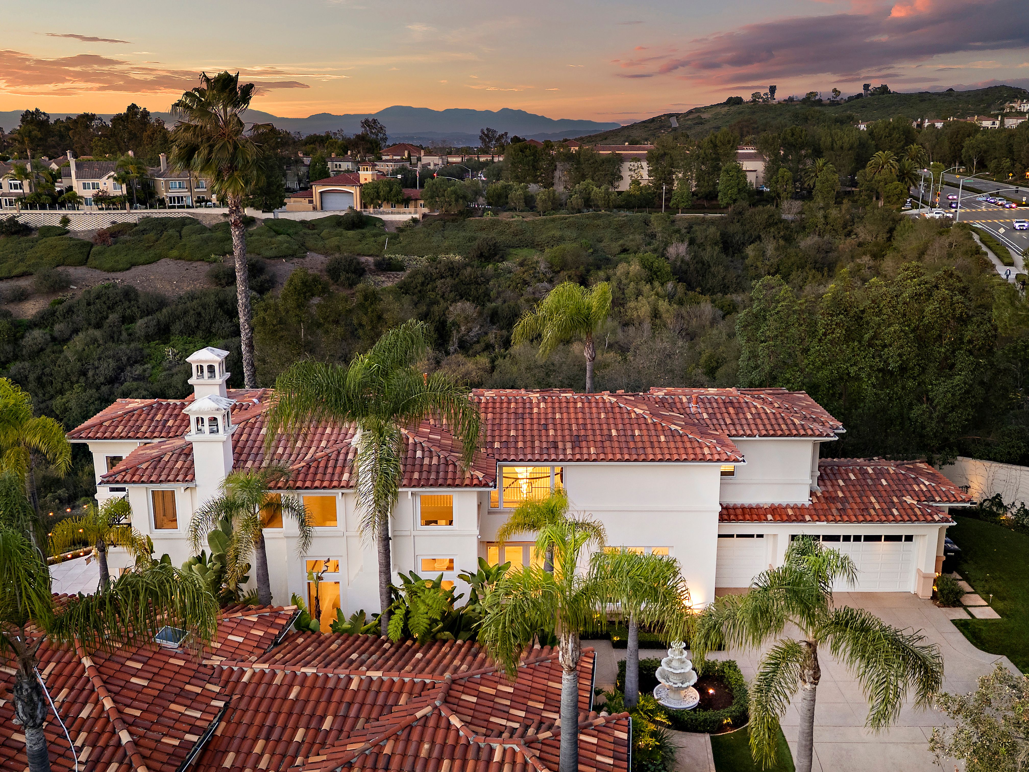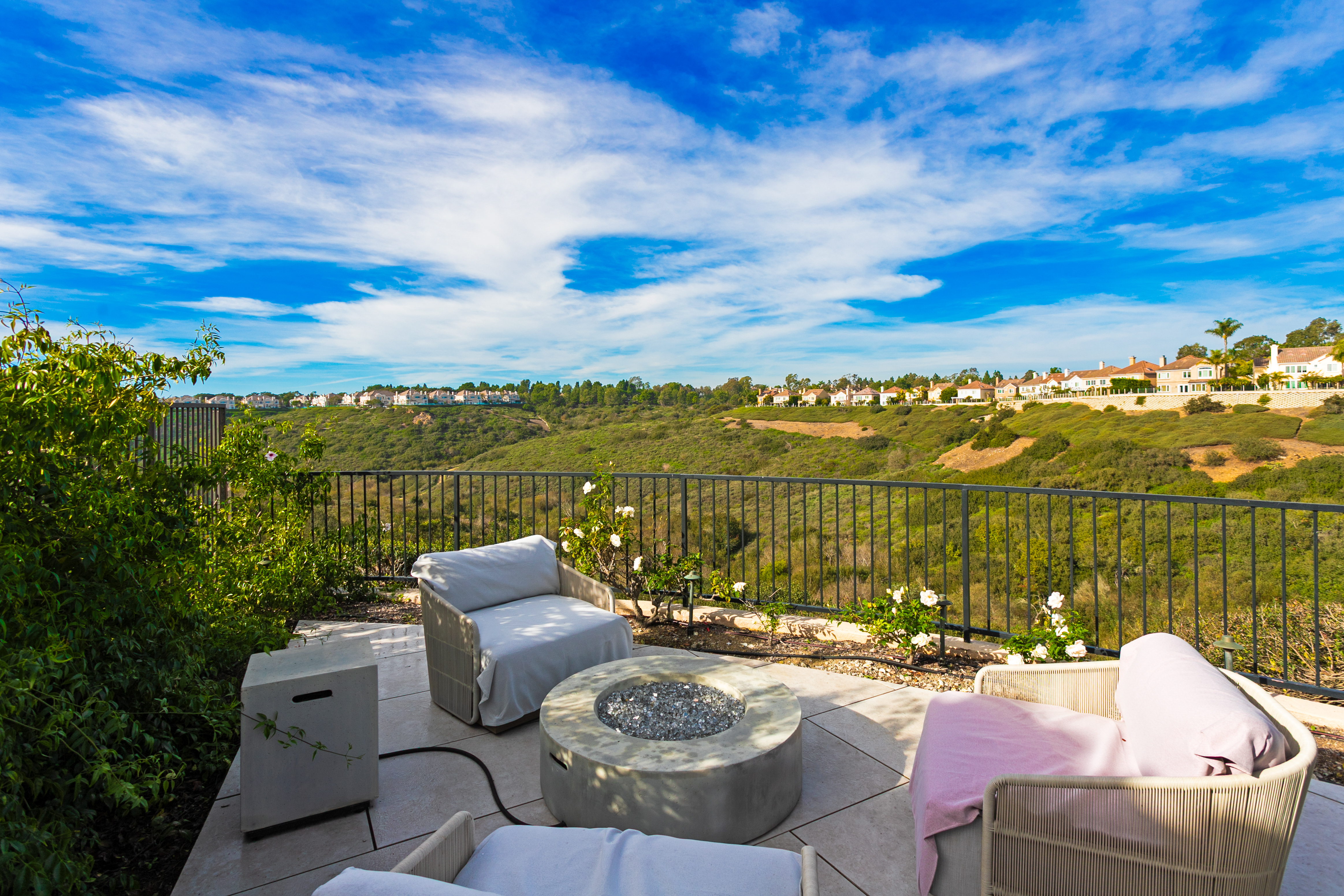 Located at the end of a long private driveway on a premier cul-de-sac lot within the exclusive guard-gated community of Santa Lucia, 1 Monterey Pine Drive offers exceptional privacy, manicured surroundings, and sweeping canyon and ocean-view moments—arguably one of the most desirable sites and locations in Newport Coast. Framed by lush landscaping and generous open space on two sides, this extremely private residence spans approximately 3,649 square feet and features four bedrooms and five bathrooms. A gated entry and glass double doors introduce a dramatic two-story foyer filled with natural light and architectural volume. The main level is defined by walls of glass throughout, formal living and dining rooms, two fireplaces, and an open-concept family room that flows seamlessly into the kitchen. Recently renovated, the gourmet kitchen is anchored by a generous center island and enhanced by new designer appliances and custom cabinetry imported from Italy, blending elevated design with everyday functionality. A breakfast nook opens to the rear grounds, where tranquil canyon views provide a serene backdrop for outdoor dining and entertaining. Also on the main level is an office or guest bedroom with a newly renovated ensuite bath, along with a three-car garage. Upstairs, three spacious bedrooms—each with its own recently updated full bath—offer comfort and privacy. The newly refreshed primary suite is a true retreat, featuring a sitting area, double-sided fireplace, jetted tub, walk-in shower, expansive walk-in closet, and a private terrace capturing beautiful views of Newport Harbor, rolling hillsides, and the distant coastline. Perched above Buck Gully, Santa Lucia is a coveted enclave of 103 detached homes, offering a rare balance of security, tranquility, and proximity to the best of Newport Coast, including Fashion Island, Crystal Cove’s beaches and state park, hiking and biking trails, top-rated schools, and John Wayne Airport. With its exceptional location, spacious floor plan, and thoughtful updates—including a recently updated HVAC system—1 Monterey Pine Drive presents a compelling opportunity in one of Orange County’s most prestigious communities.