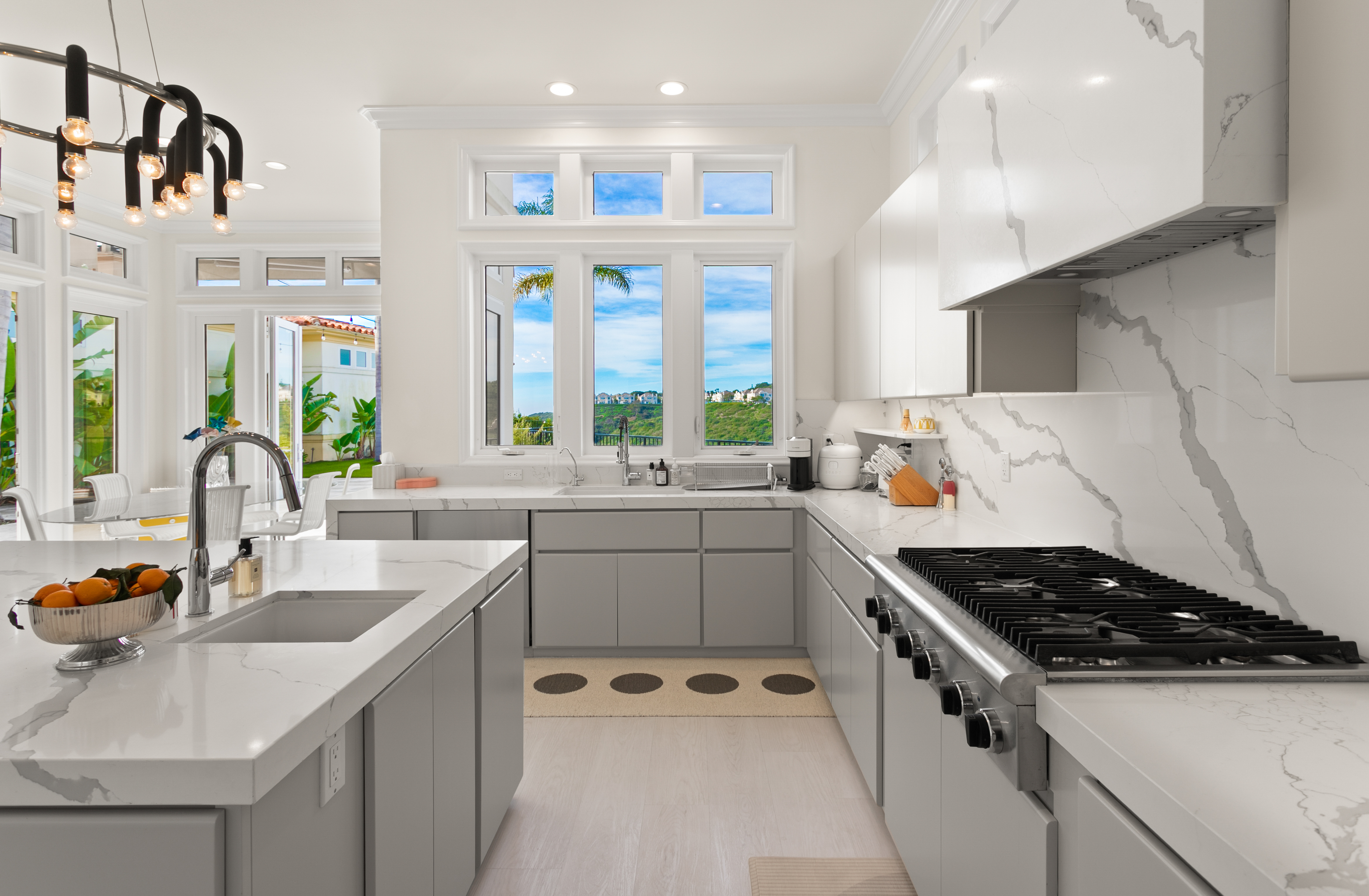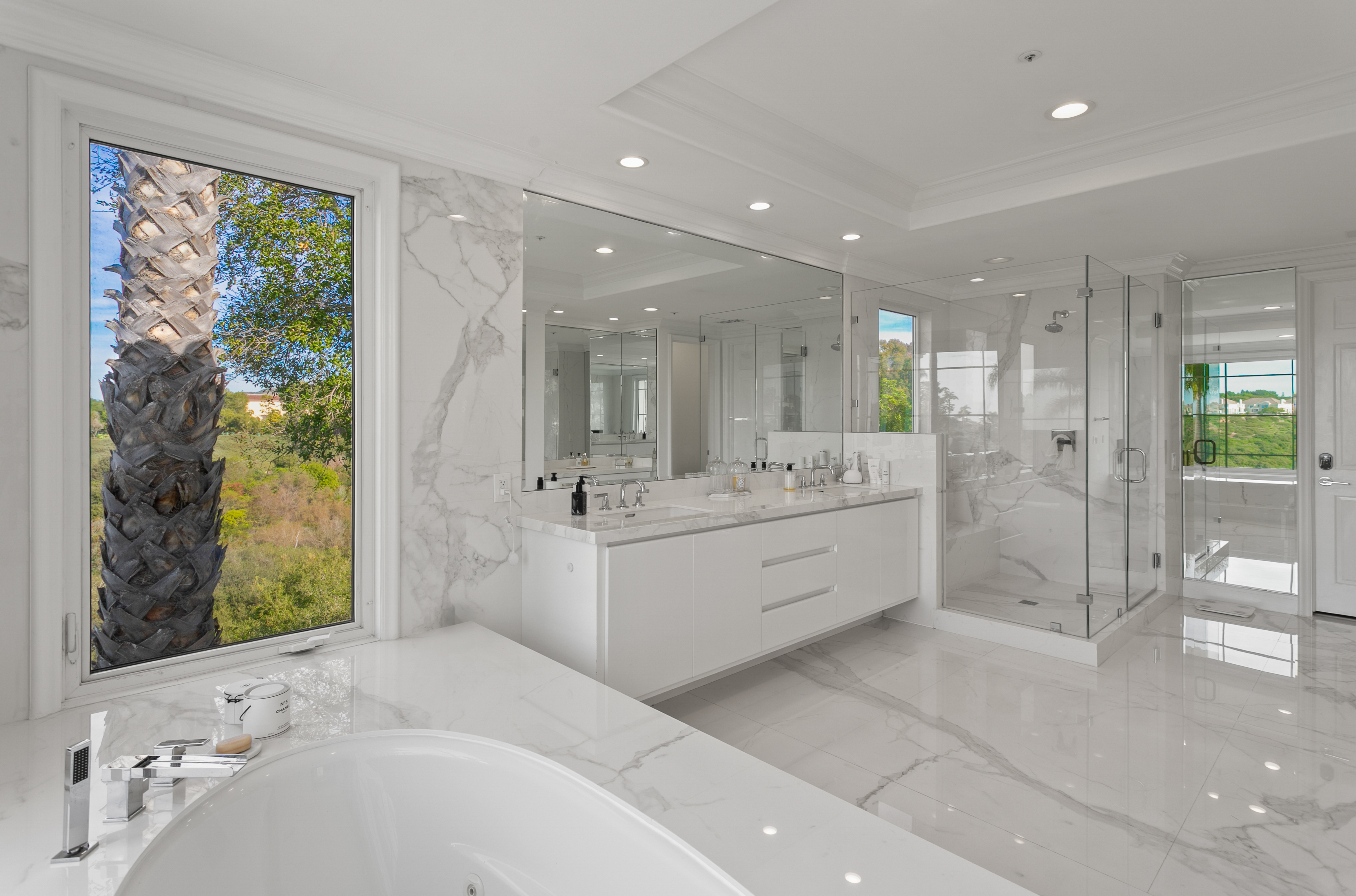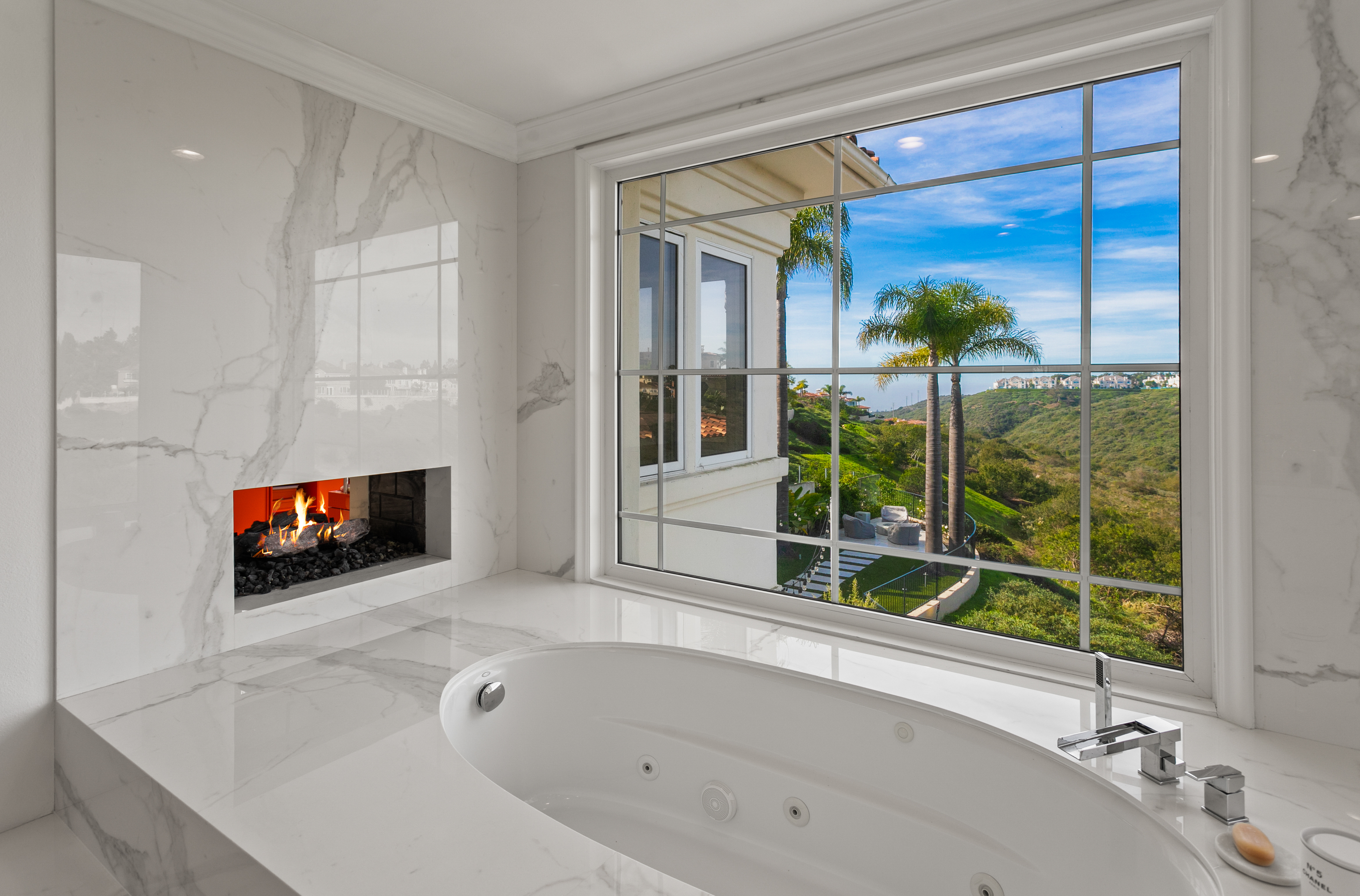 Located at the end of a long private driveway on a premier cul-de-sac lot within the exclusive guard-gated community of Santa Lucia, 1 Monterey Pine Drive offers exceptional privacy, manicured surroundings, and sweeping canyon and ocean-view moments—arguably one of the most desirable sites and locations in Newport Coast. Framed by lush landscaping and generous open space on two sides, this extremely private residence spans approximately 3,649 square feet and features four bedrooms and five bathrooms. A gated entry and glass double doors introduce a dramatic two-story foyer filled with natural light and architectural volume. The main level is defined by walls of glass throughout, formal living and dining rooms, two fireplaces, and an open-concept family room that flows seamlessly into the kitchen. Recently renovated, the gourmet kitchen is anchored by a generous center island and enhanced by new designer appliances and custom cabinetry imported from Italy, blending elevated design with everyday functionality. A breakfast nook opens to the rear grounds, where tranquil canyon views provide a serene backdrop for outdoor dining and entertaining. Also on the main level is an office or guest bedroom with a newly renovated ensuite bath, along with a three-car garage. Upstairs, three spacious bedrooms—each with its own recently updated full bath—offer comfort and privacy. The newly refreshed primary suite is a true retreat, featuring a sitting area, double-sided fireplace, jetted tub, walk-in shower, expansive walk-in closet, and a private terrace capturing beautiful views of Newport Harbor, rolling hillsides, and the distant coastline. Perched above Buck Gully, Santa Lucia is a coveted enclave of 103 detached homes, offering a rare balance of security, tranquility, and proximity to the best of Newport Coast, including Fashion Island, Crystal Cove’s beaches and state park, hiking and biking trails, top-rated schools, and John Wayne Airport. With its exceptional location, spacious floor plan, and thoughtful updates—including a recently updated HVAC system—1 Monterey Pine Drive presents a compelling opportunity in one of Orange County’s most prestigious communities.