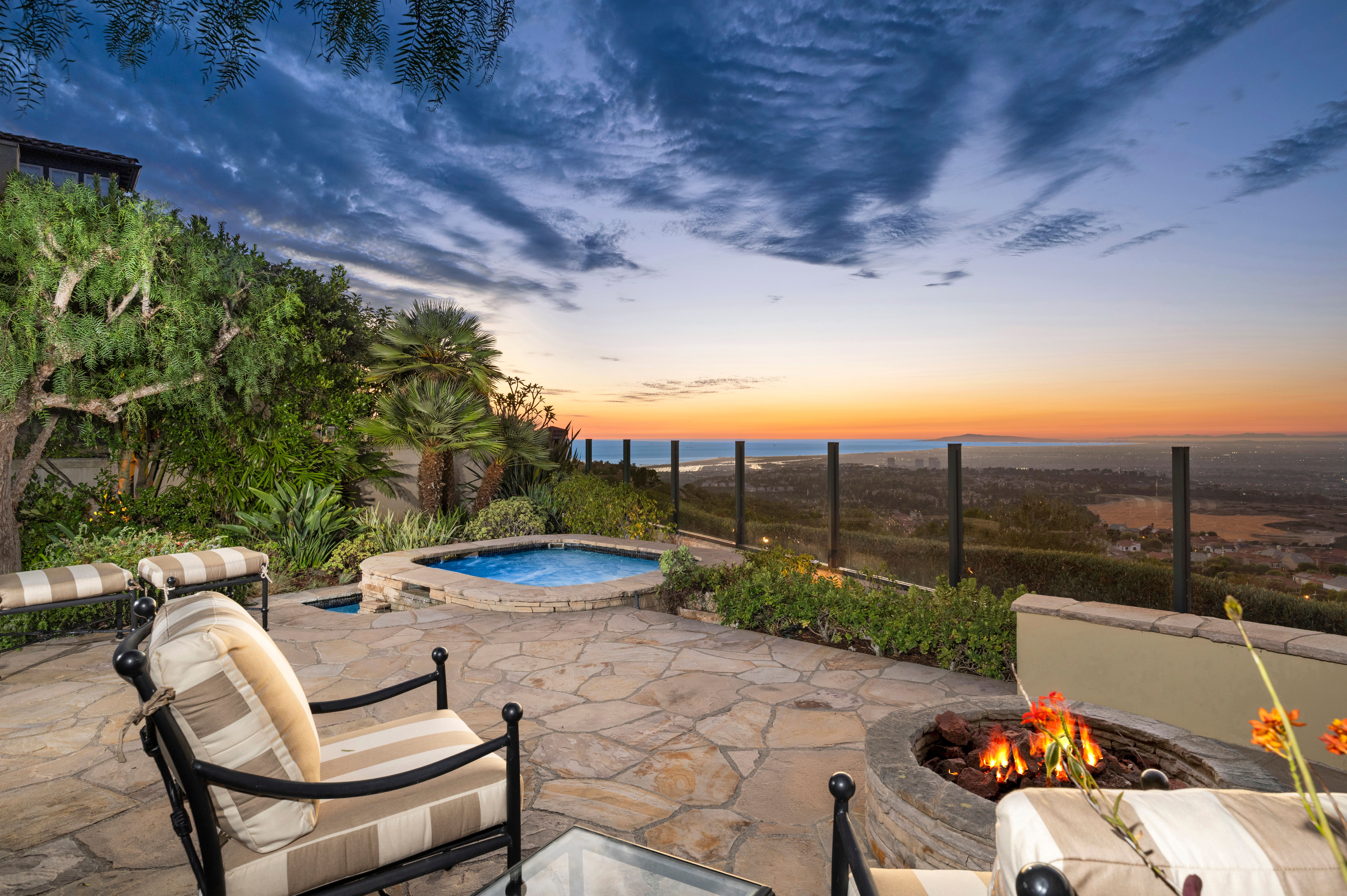 Perched within the prestigious guard-gated community of Ocean Heights, this exquisite estate offers sweeping vistas of the Pacific Ocean, Catalina Island, glittering city lights and mountain views. Thoughtfully designed for privacy and flexibility, the residence features separate entrances to a casita and a guest quarters—perfect for visiting family, extended stays, or a private home office. The upper level of the main house is devoted to a grand primary suite, complete with a cozy fireplace, spacious walk-in closet, and a luxurious bath retreat—all framed by the property’s breathtaking views. A third-floor flex space off the primary suite provides an ideal area for a gym, art studio, or private office. Inside, timeless architectural details—such as exposed wood beams, French doors, and rich hardwood flooring—create a warm, elegant ambiance. A gourmet kitchen with high-end appliances opens to a private inner courtyard with fireplace and a charming fountain, ideal for morning coffee, casual meals, or intimate gatherings. Designed for seamless indoor-outdoor living, the backyard retreat features private terraces, BBQ, a fireplace, a fountain, a fire pit, lush landscaping, and a spa, all overlooking some of the most commanding views in Newport Coast. From sunrise to sunset, every moment is elevated by the dramatic scenery. Living in Ocean Heights offers more than a home—it provides a coveted lifestyle. Residents enjoy 24-hour guard-gated security, meticulously maintained grounds, and proximity to award-winning schools, Crystal Cove State Beach, Pelican Hill Resort, and premier dining and shopping at Fashion Island and South Coast Plaza. This property exemplifies luxury, privacy, and the quintessential coastal California experience.