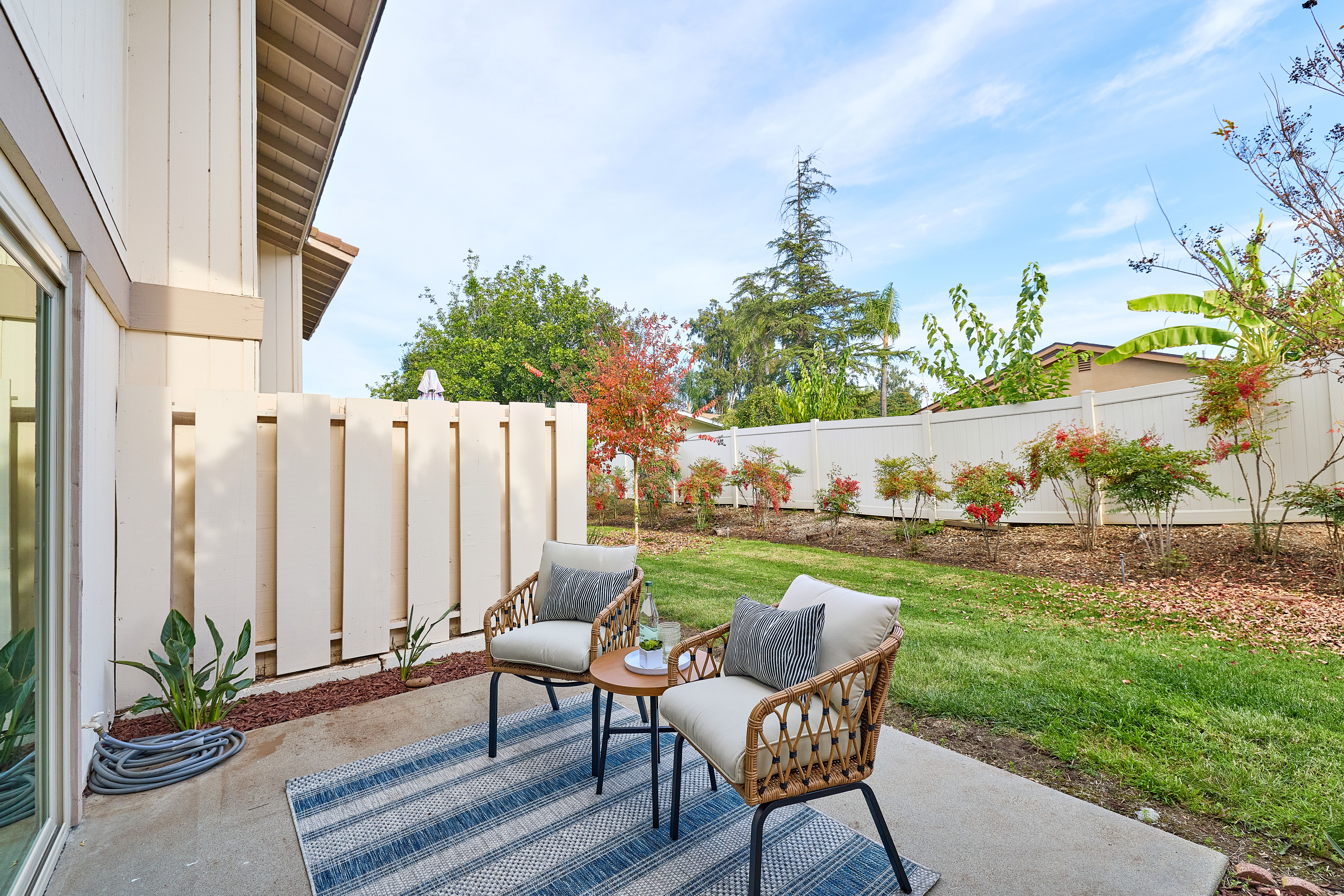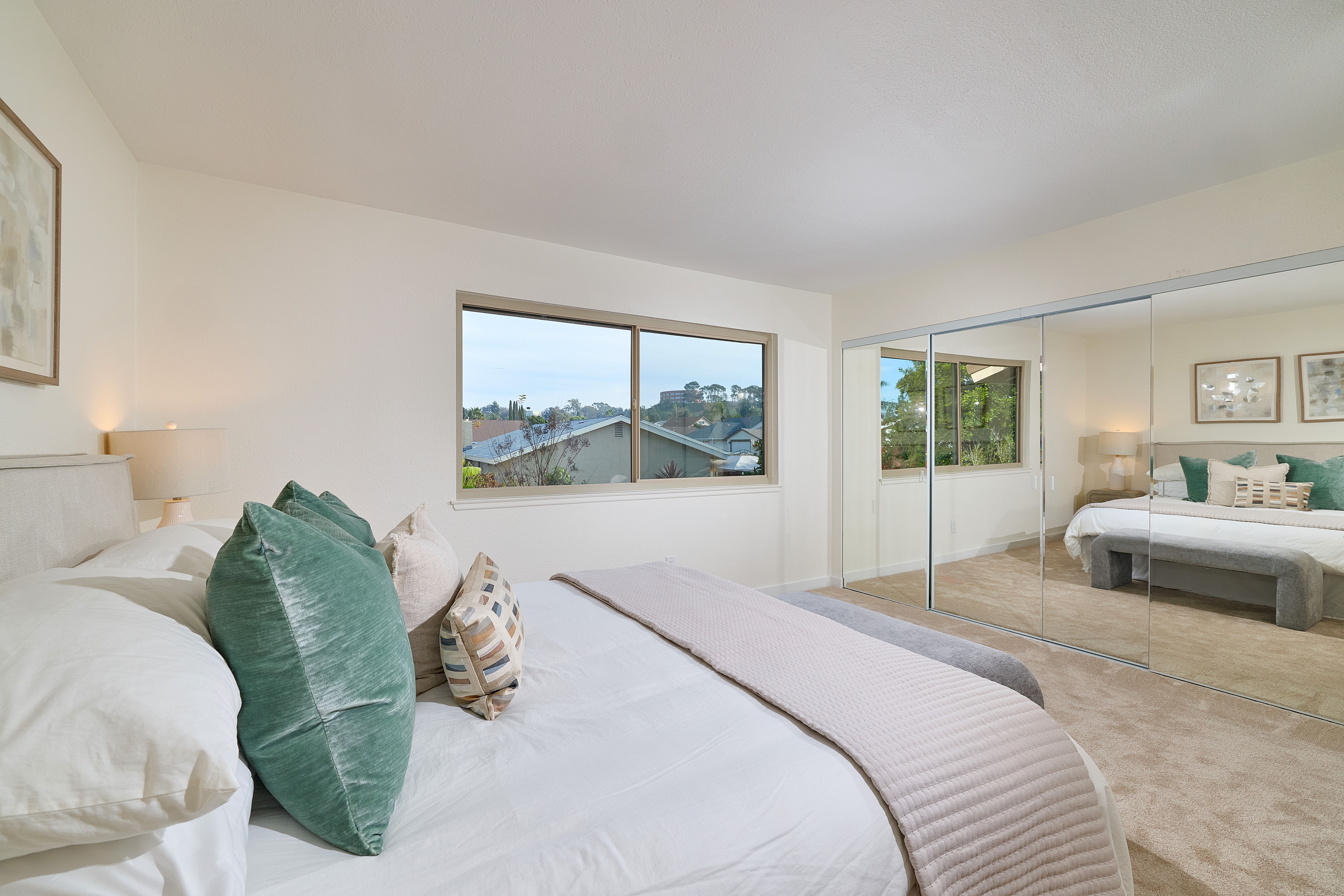 Welcome to this beautiful and completely remodeled Condo in the coveted community of Westwood Townhomes. Perfect for the new homeowner, young couple starting a new or friends who want to share some space. This home offers modern comfort, abundant natural light, and a peaceful greenbelt backdrop. This 2-bedroom, 2-bath home has been transformed with a completely updated kitchen featuring quartz countertops, sleek cabinetry, new appliances: microwave, electric range / hood and dishwasher with upgraded plumbing and electrical. Both bathrooms shine with new fixtures, toilets, lighting, quartz counters, and contemporary finishes. New laminate flooring downstairs, plush carpet upstairs, fresh interior/exterior paint, new vinyl windows, mirrored wardrobe doors, and new heaters in each room create a warm, turn-key feel. Enjoy indoor/outdoor living with a private front courtyard and a large slider that opens to tranquil greenbelt views. Additional highlights include in-unit laundry, a 1-car garage, an extra parking space, and easy street parking. HOA covers exterior maintenance and includes access to the popular Westwood Club with pool, spa, tennis courts, and more. Located close to schools, shops, and major freeways, this move-in-ready home offers exceptional value and convenience in one of Rancho Bernardo’s most established communities.