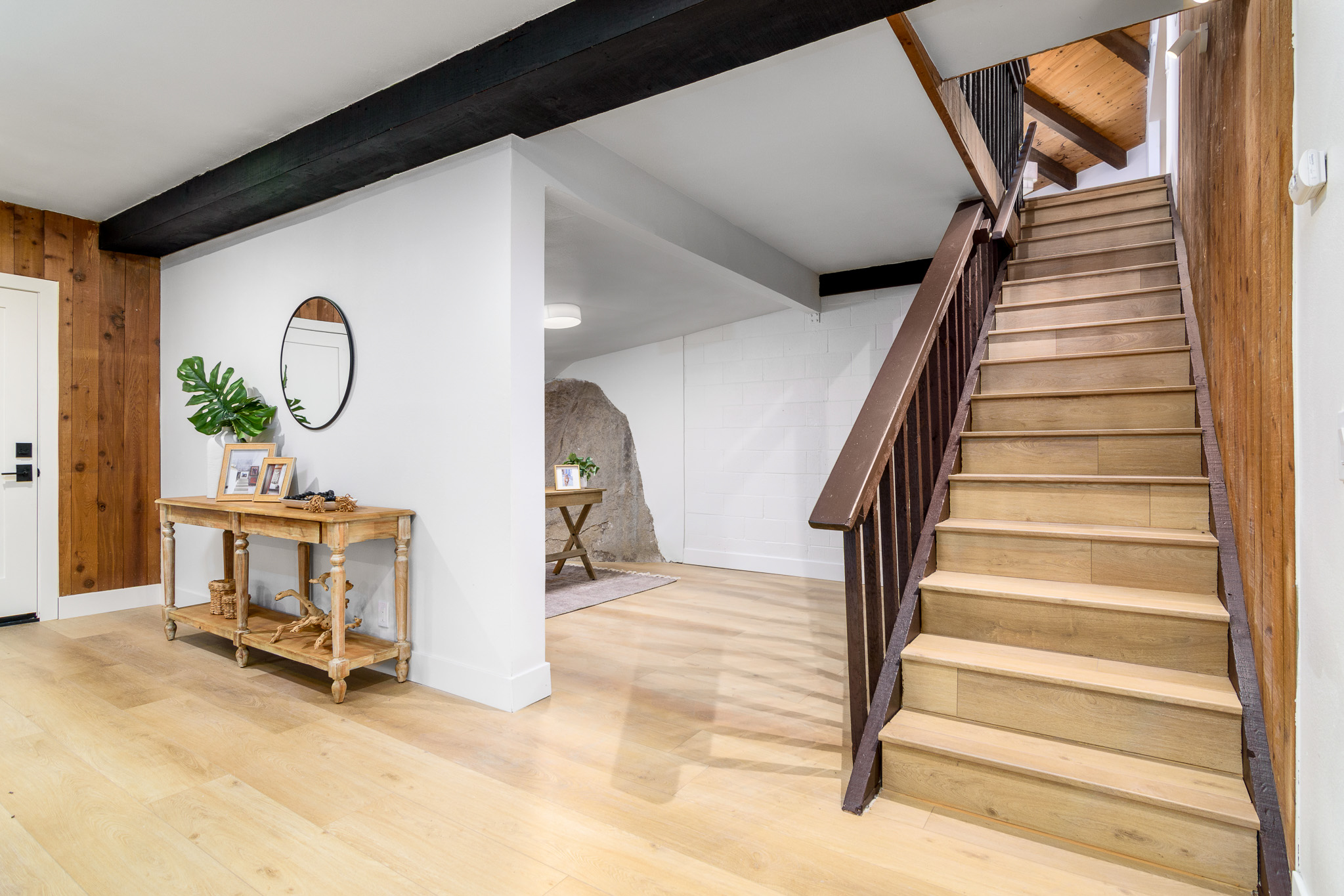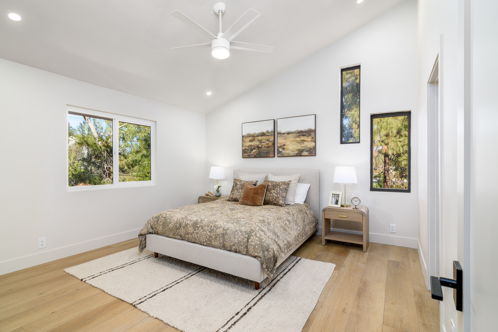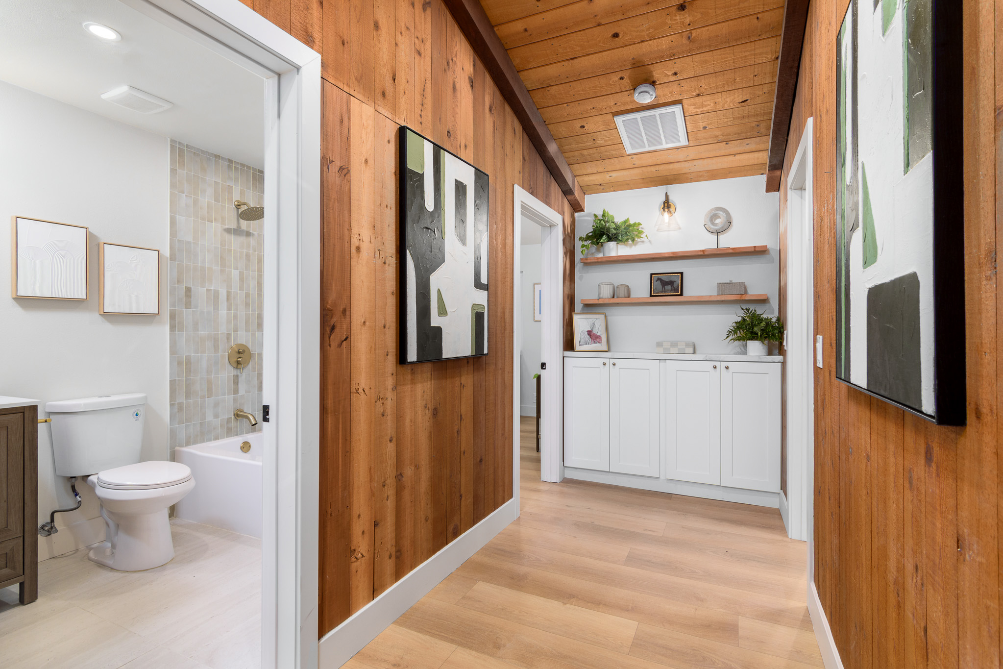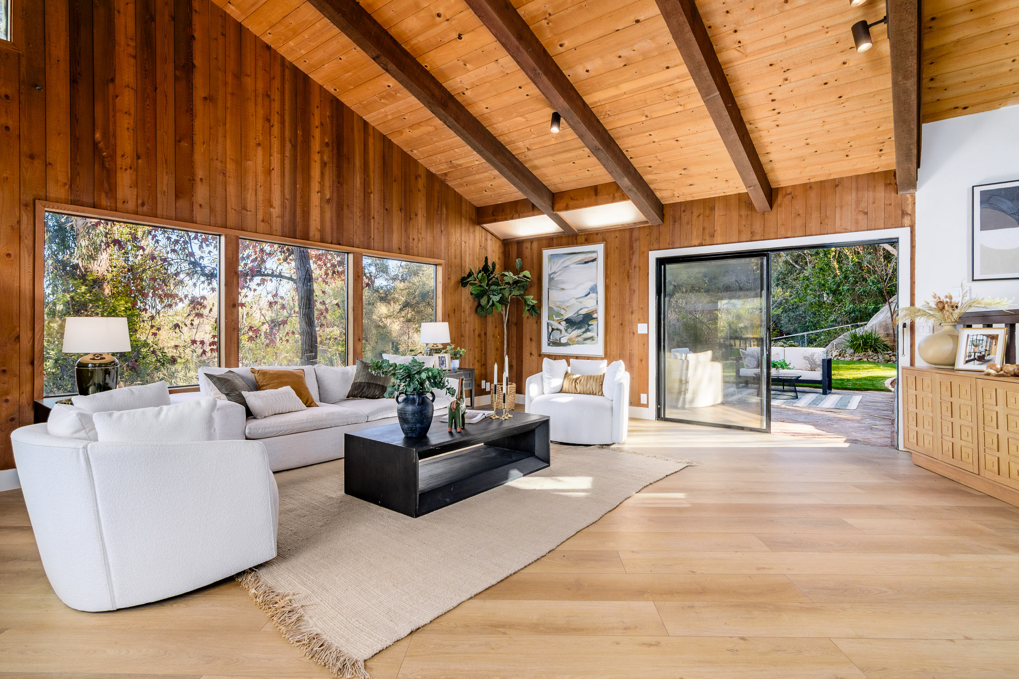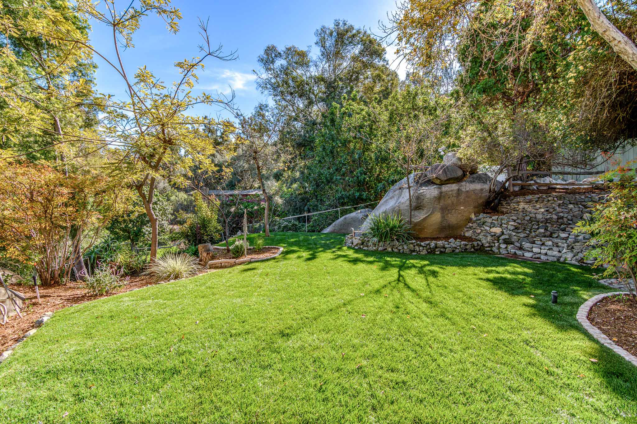 Set among massive granite boulders and mature pines, this thoughtfully renovated residence offers a rare blend of architectural character and modern comfort. Designed for buyers seeking privacy and individuality, the home feels like a mid-century–inspired retreat that lives in harmony with its natural surroundings. Through the double-door entry, you’re welcomed into a light-filled interior defined by vaulted ceilings, exposed wood beams, and a striking split-level layout. The sunken living room centers around a dramatic floor-to-ceiling stone fireplace, creating a warm focal point for the space. Expansive glass sliders open to a wraparound deck, drawing in natural light and showcasing the surrounding rock formations and greenery. The kitchen has been completely reimagined with white shaker cabinetry, quartz countertops, and a contrasting white oak island with bar seating—designed to be both functional and visually refined. Stainless steel appliances, bronze hardware, and a walk-in pantry complete the space. The adjacent dining area overlooks the living room below, offering an ideal setup for entertaining while maintaining an open, connected feel. Downstairs, an additional living area provides flexible space for guests, a media room, or multi-generational living. Tucked just beyond is a bonus room—ideal for a home office, creative studio, or retreat—where a natural granite boulder is seamlessly integrated into the architecture, a striking reminder that the home was designed around the landscape rather than against it. The primary bedroom is a peaceful escape with vaulted ceilings and distinctive architectural windows that frame the outdoors. Outside, the property is naturally landscaped with towering rock formations and mature trees, offering privacy, beauty, and a sense of connection to nature that’s truly hard to replicate. Paid-off solar adds long-term energy efficiency and reduced utility costs, complementing the home’s thoughtful design and connection to its environment. Nestled in the scenic hills of El Cajon, the home offers a serene, rural atmosphere while remaining just minutes from local dining, shopping, and convenient freeway access. A rare opportunity to own a truly one-of-a-kind home—schedule your private showing today.