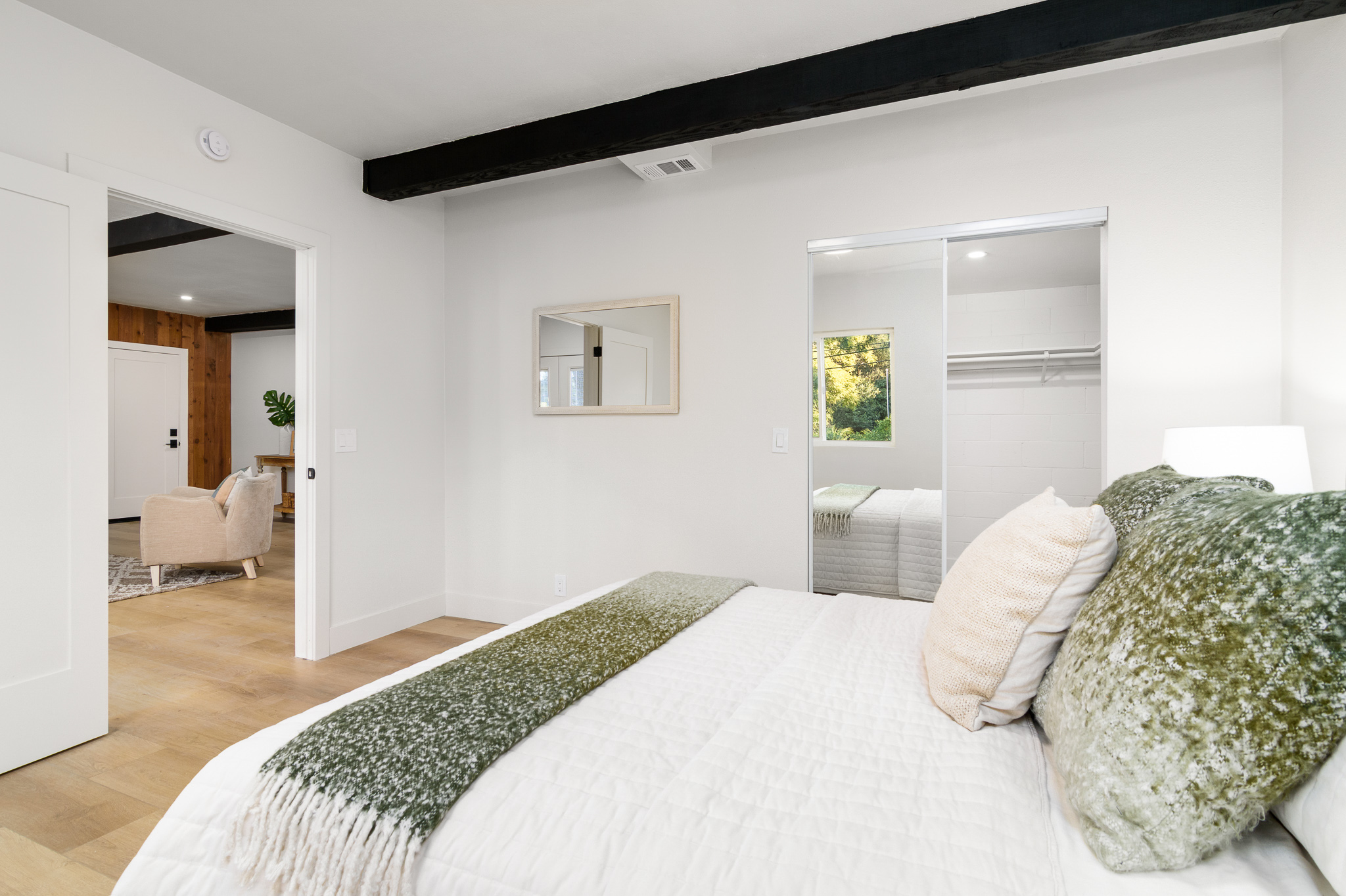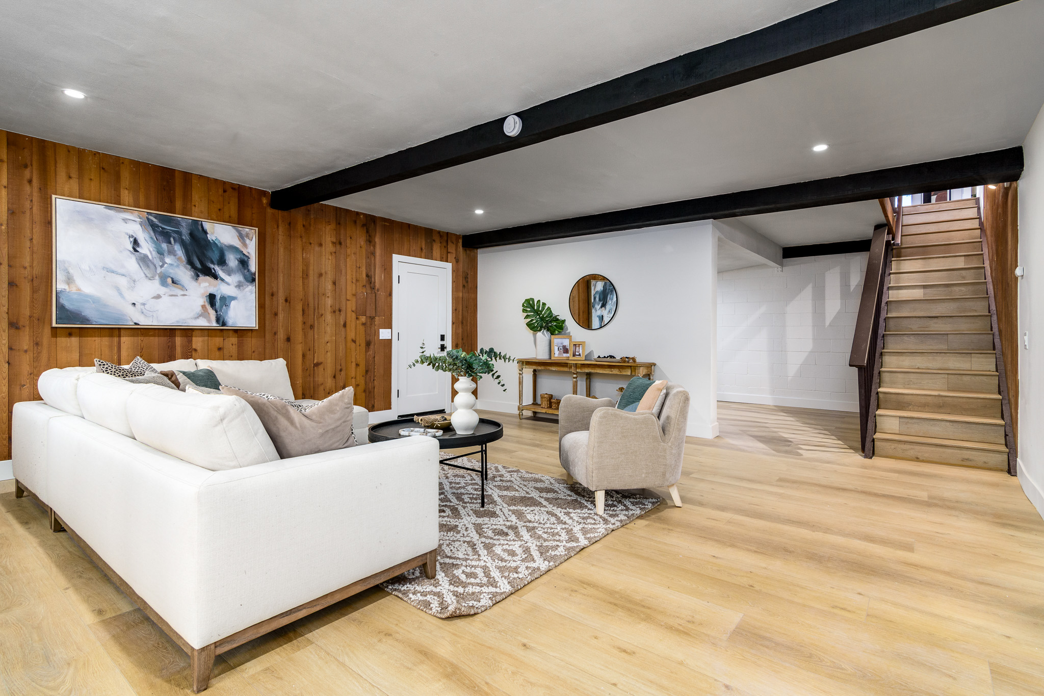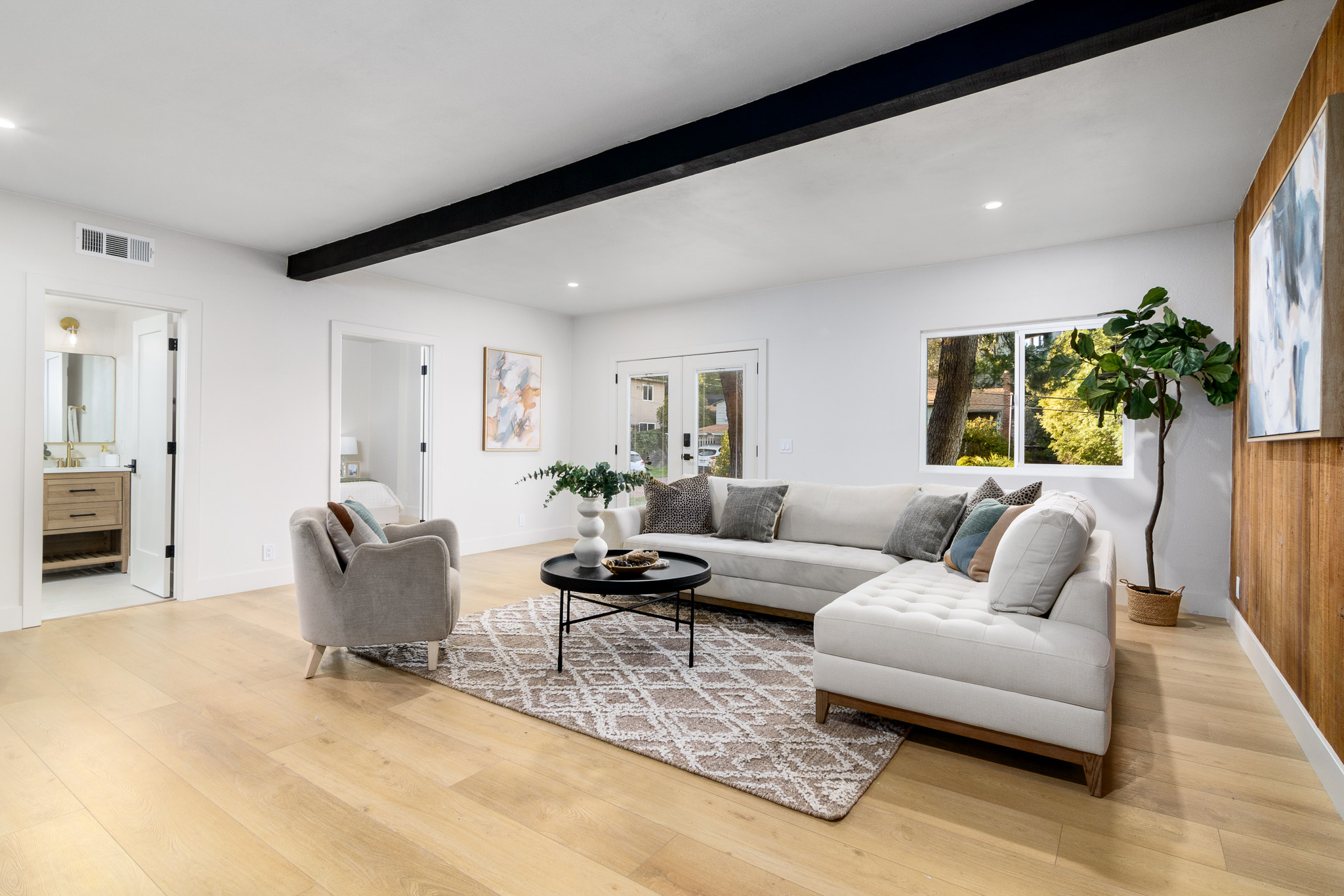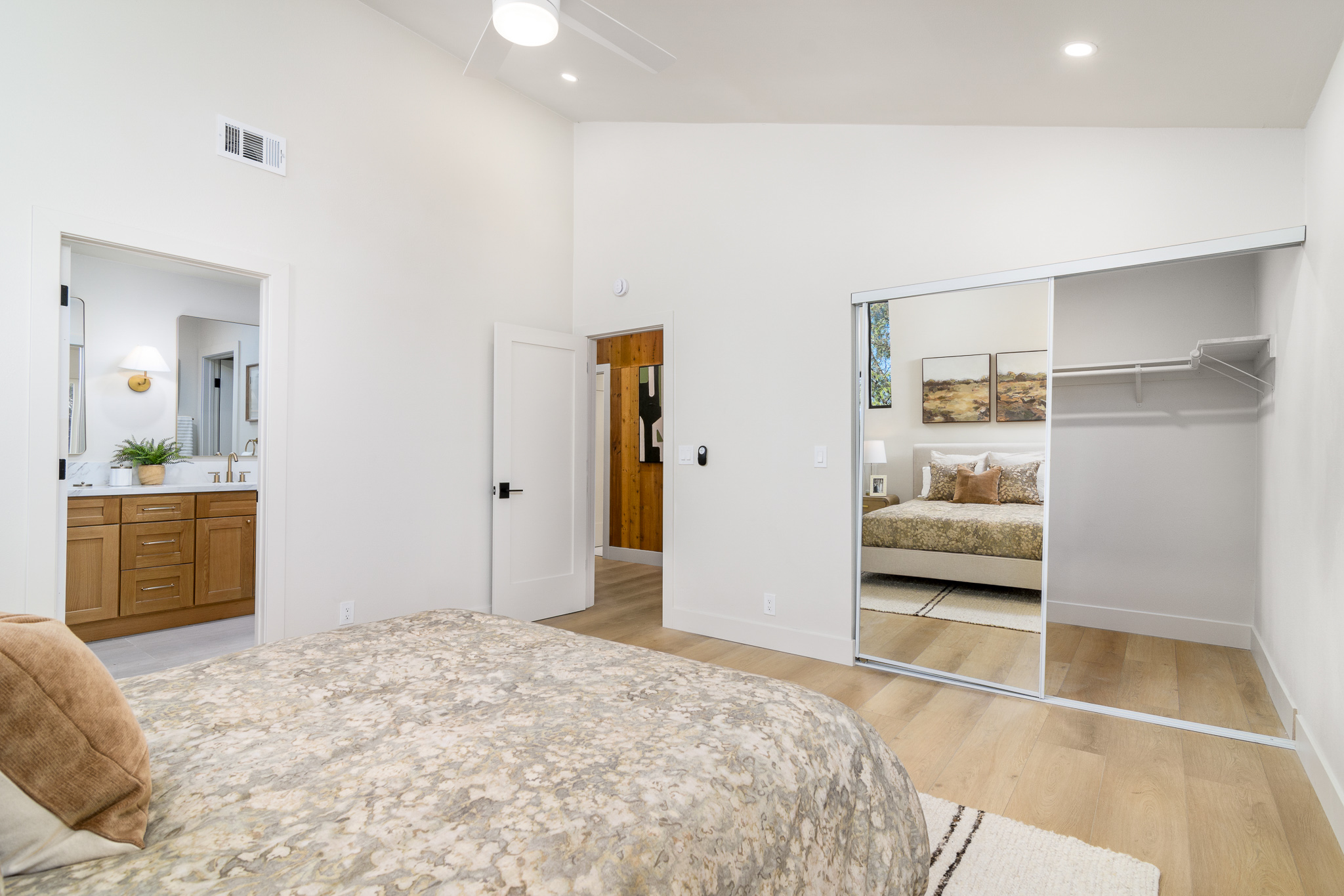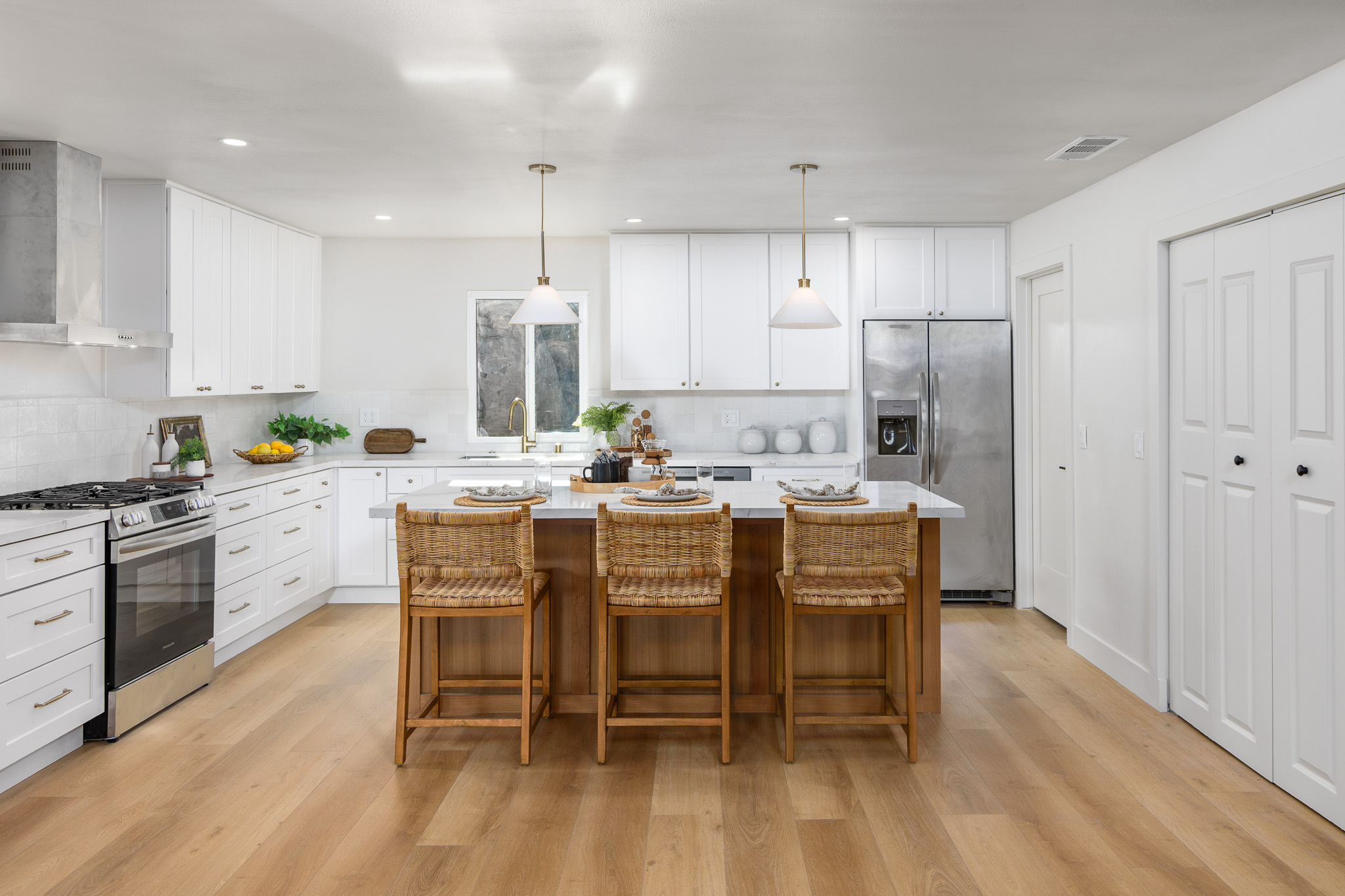 Set among massive granite boulders and mature pines, this thoughtfully renovated residence offers a rare blend of architectural character and modern comfort. Designed for buyers seeking privacy and individuality, the home feels like a mid-century–inspired retreat that lives in harmony with its natural surroundings. Through the double-door entry, you’re welcomed into a light-filled interior defined by vaulted ceilings, exposed wood beams, and a striking split-level layout. The sunken living room centers around a dramatic floor-to-ceiling stone fireplace, creating a warm focal point for the space. Expansive glass sliders open to a wraparound deck, drawing in natural light and showcasing the surrounding rock formations and greenery. The kitchen has been completely reimagined with white shaker cabinetry, quartz countertops, and a contrasting white oak island with bar seating—designed to be both functional and visually refined. Stainless steel appliances, bronze hardware, and a walk-in pantry complete the space. The adjacent dining area overlooks the living room below, offering an ideal setup for entertaining while maintaining an open, connected feel. Downstairs, an additional living area provides flexible space for guests, a media room, or multi-generational living. Tucked just beyond is a bonus room—ideal for a home office, creative studio, or retreat—where a natural granite boulder is seamlessly integrated into the architecture, a striking reminder that the home was designed around the landscape rather than against it. The primary bedroom is a peaceful escape with vaulted ceilings and distinctive architectural windows that frame the outdoors. Outside, the property is naturally landscaped with towering rock formations and mature trees, offering privacy, beauty, and a sense of connection to nature that’s truly hard to replicate. Paid-off solar adds long-term energy efficiency and reduced utility costs, complementing the home’s thoughtful design and connection to its environment. Nestled in the scenic hills of El Cajon, the home offers a serene, rural atmosphere while remaining just minutes from local dining, shopping, and convenient freeway access. A rare opportunity to own a truly one-of-a-kind home—schedule your private showing today.
