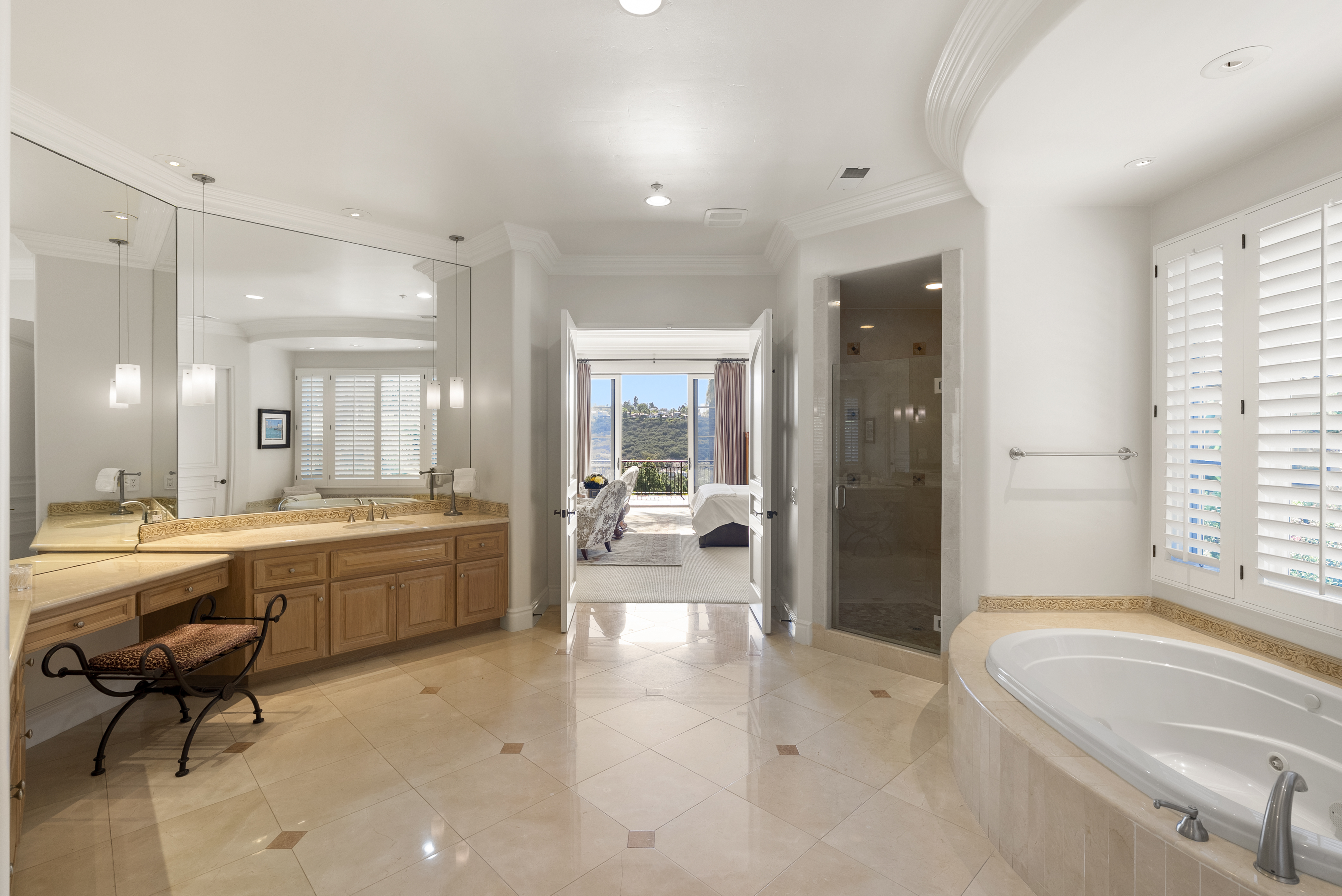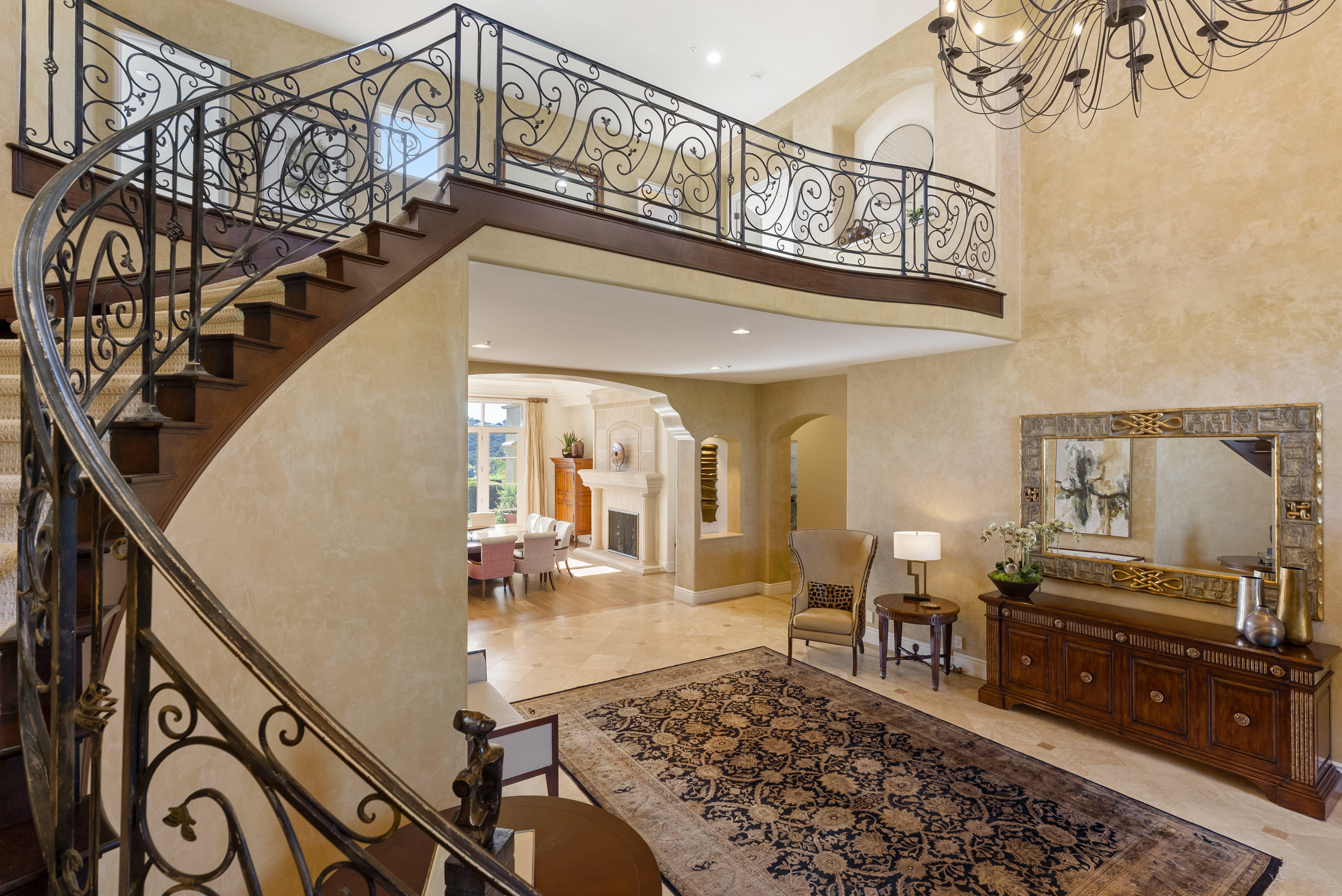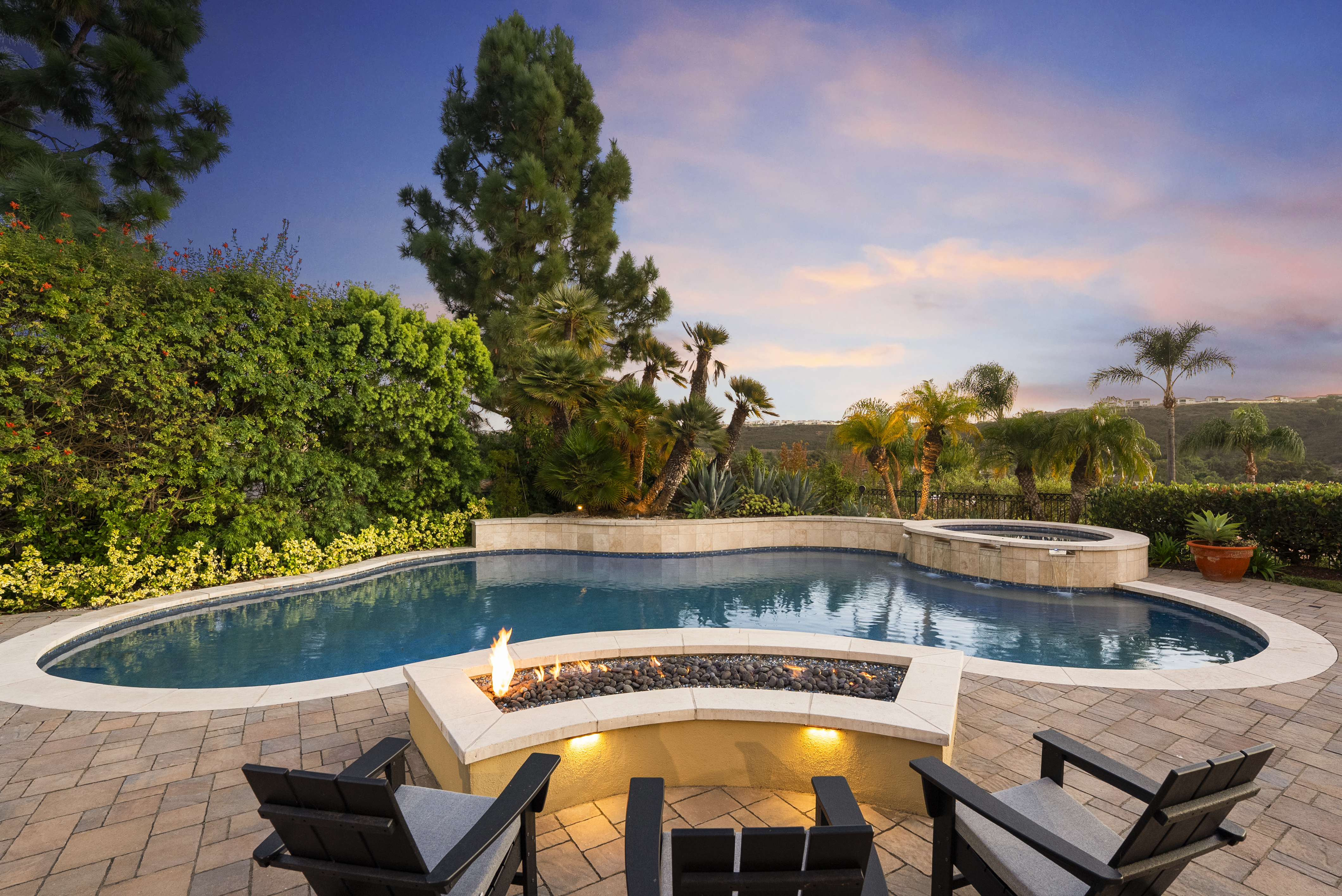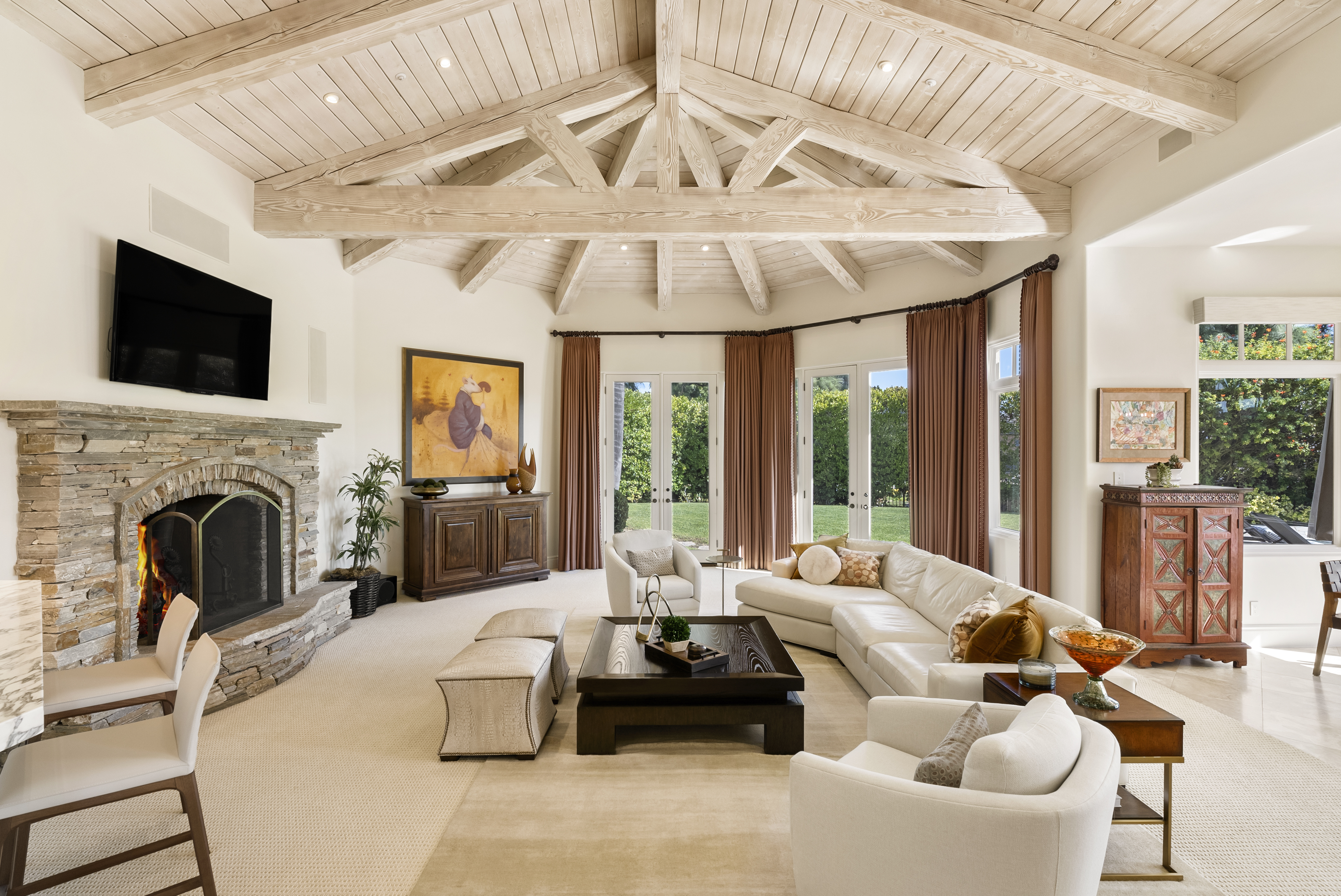 Set within the prestigious, guard-gated Del Mar Country Club, 14480 Bellvista is a refined estate offering timeless elegance, panoramic golf course and ocean views, and an elevated Rancho-coastal aesthetic in the heart of Rancho Santa Fe. Nestled in the scenic San Dieguito River Valley, this expansive 7,376-square-foot residence enjoys a coveted southwest orientation, capturing golden light and unforgettable sunset ocean and fairway vistas. Recently enhanced with thoughtful updates, the home showcases a remodeled chef’s kitchen and a beautifully reimagined family great room, ideal for both grand entertaining and everyday living. Vaulted, beamed ceilings and walls of glass create a light-filled, airy ambiance, while elevated finishes throughout reflect a sophisticated blend of Rancho heritage and coastal refinement. The residence offers five spacious en-suite bedrooms, including a luxurious primary suite complete with a fireplace and private balcony overlooking the golf course. An additional wood-paneled executive office with fireplace provides a distinguished work-from-home retreat. Outdoors, a private pool with fire table sets the stage for resort-style living and evening gatherings beneath the San Diego sky. Residents who choose to become Members of Del Mar Country Club enjoy world-class amenities including championship golf, tennis and pickleball courts, an Olympic sized pool, and an active social calendar, all within a secure, gated enclave. Access to top-rated public and private schools and a premier North County San Diego location!