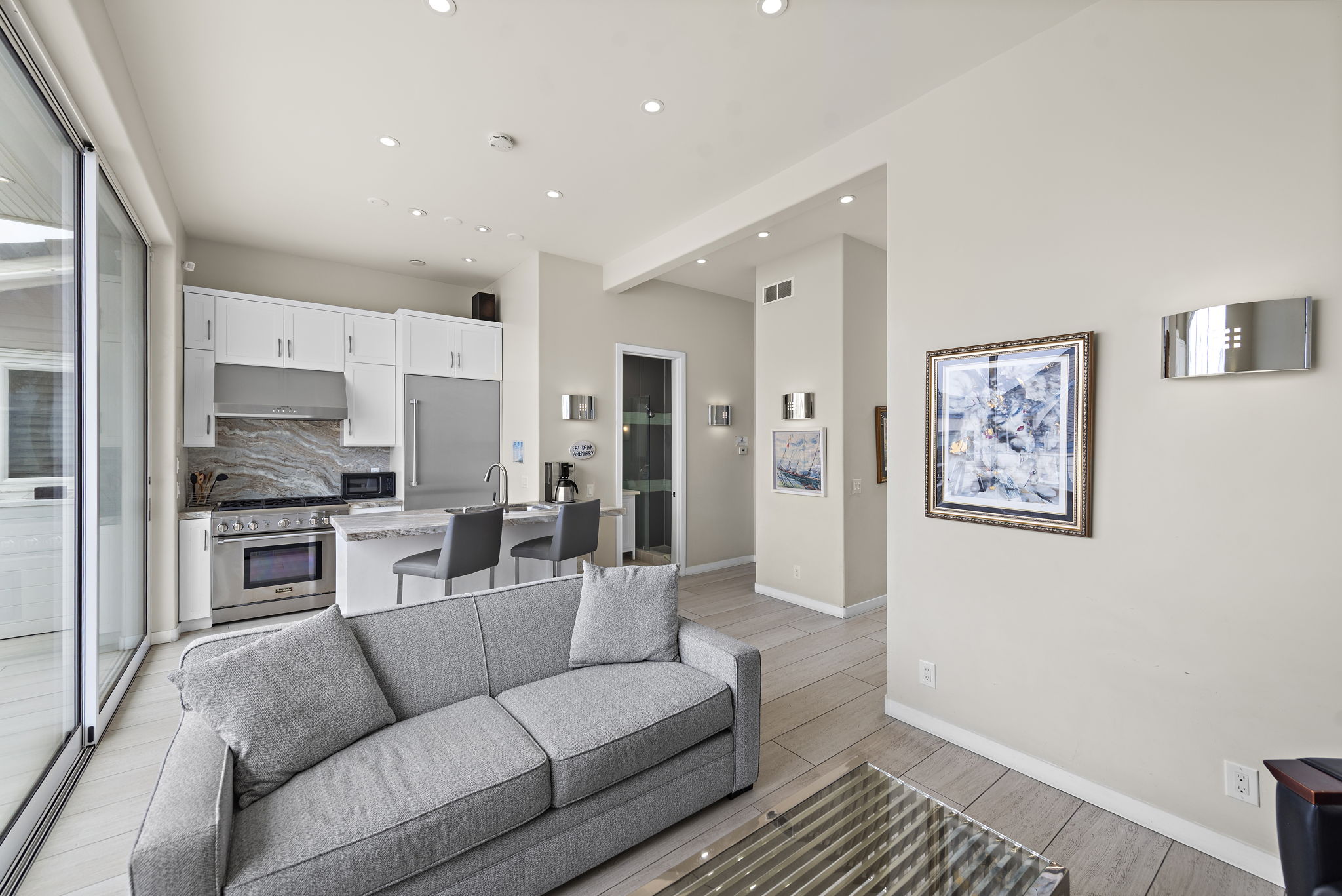 Experience luxury beach front living and investment potential with 1504 W Oceanfront, a one-of-a-kind mixed-use property in Newport Beach on the Balboa Peninsula. This premier property spans approximately 7,609 square feet on a 5,000-square-foot corner lot with 100 feet of ocean frontage and breathtaking panoramic views from Newport Pier to Balboa Pier and beyond. Three residential units with three short-term lodging permits and two commercial spaces, this exceptional five-unit offering blends coastal charm with modern luxury. The commercial spaces include the iconic “15th Street Surf Shop” retail store and an oceanfront restaurant currently under renovation, formerly known as “The Stuft Surfer”. The three separate residential units consist of a three bedroom residence, a newly built two bedroom residence with an office/bonus room, in addition to a newly constructed one bedroom unit. All three units hold short-term rental permits (SLPs), a rare and valuable asset in Newport Beach. This property is primed for exceptional income generation, with pro forma projections estimating $920,608 in annual gross revenue combined from short-term rentals and commercial leasing. A standout feature of this estate is its expansive 50x50-foot rooftop deck, one of the largest oceanfront decks on the Balboa Peninsula, offering unparalleled ocean and bay views with endless opportunities for entertainment and relaxation. 1504 W Oceanfront is not just a five-in-one compound; it’s a legacy property that delivers both immediate value and long-term returns in the highly coveted Newport Beach market.