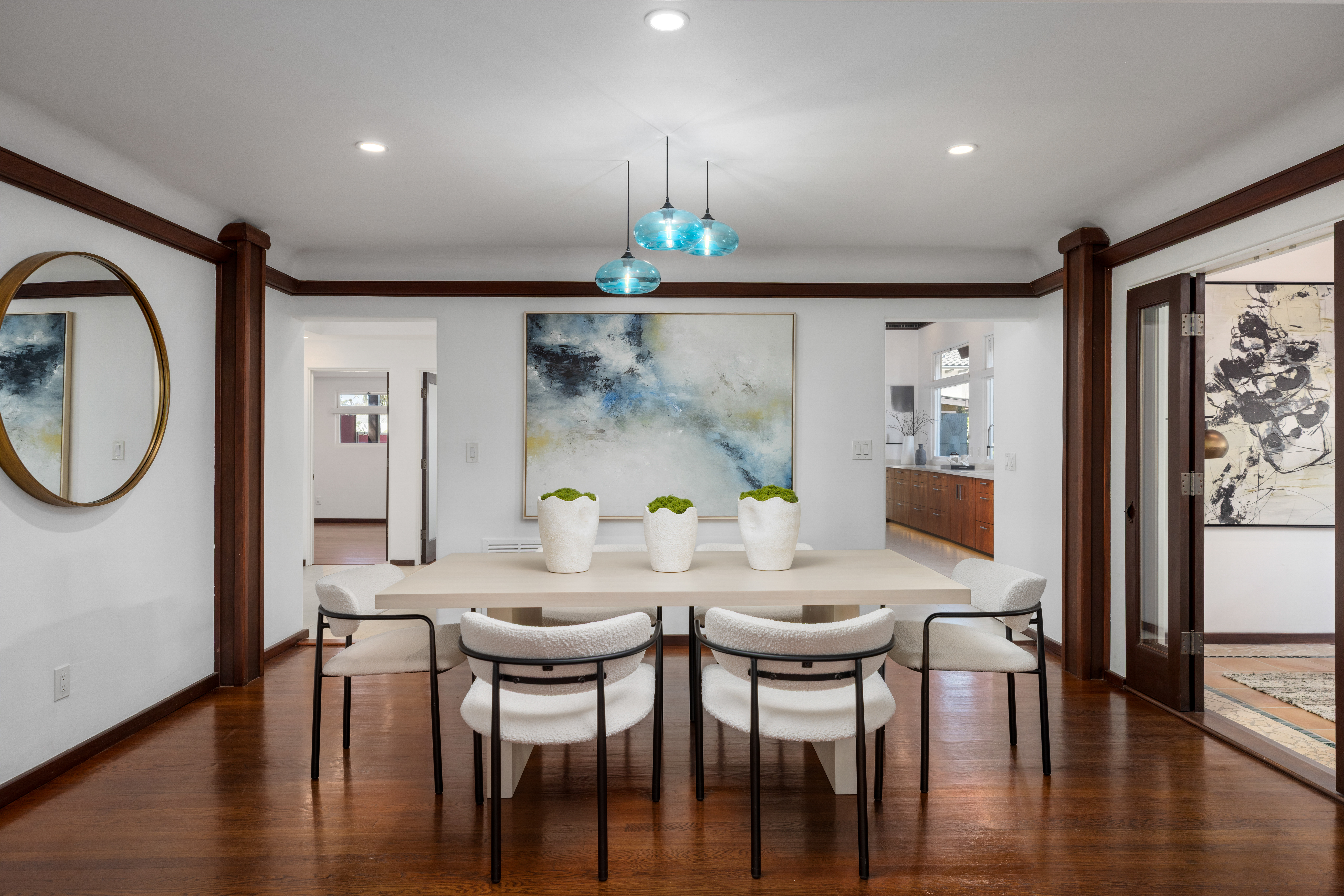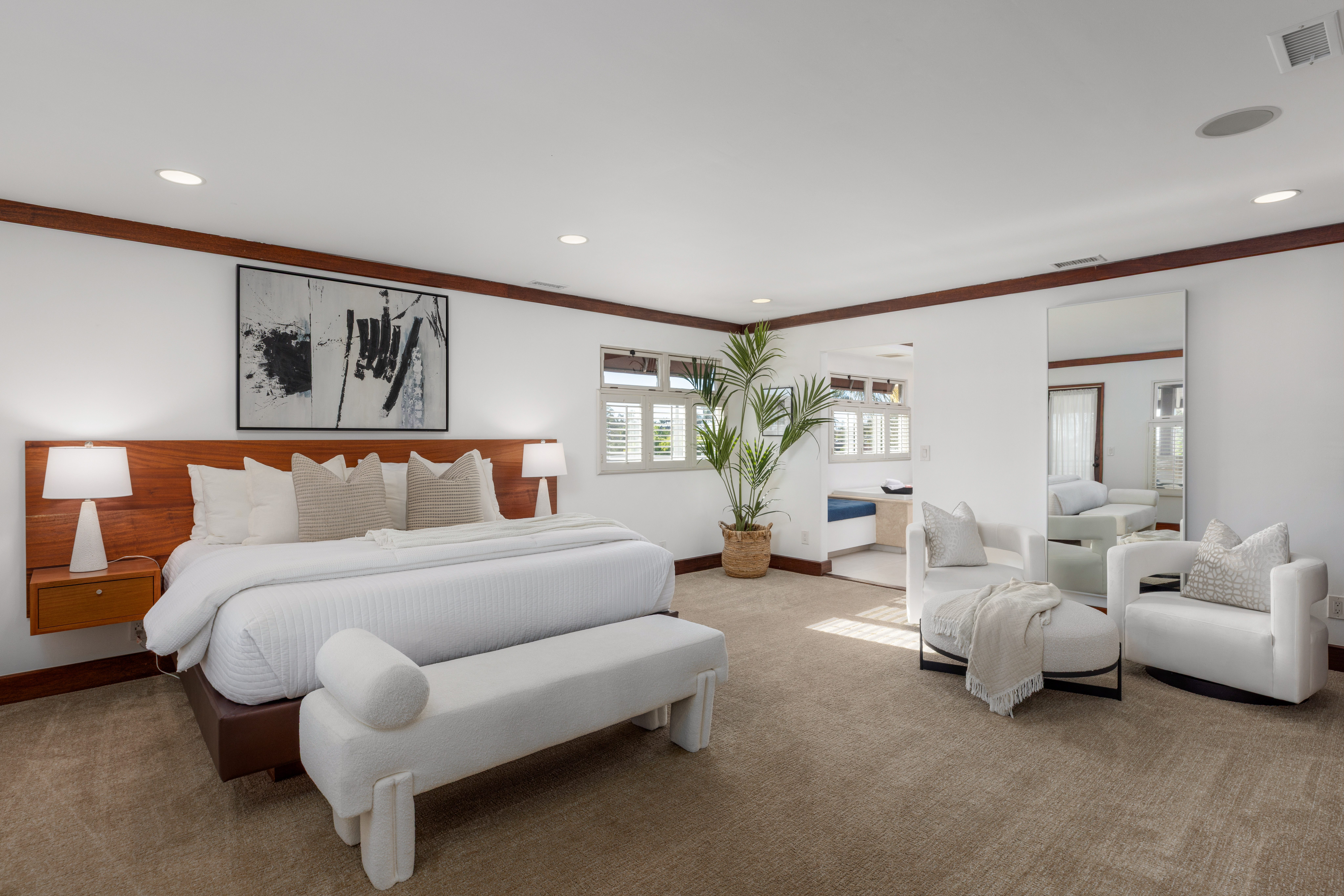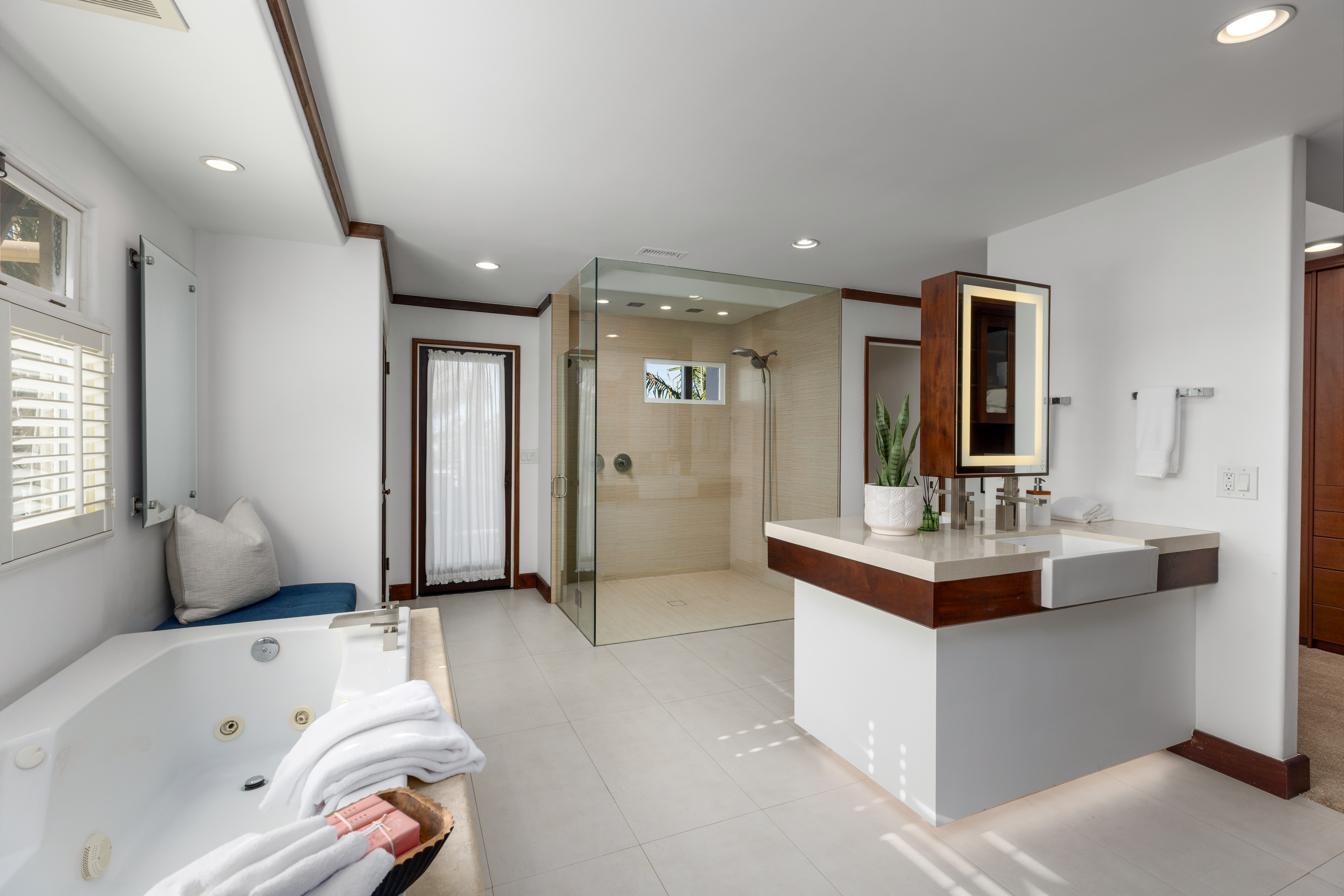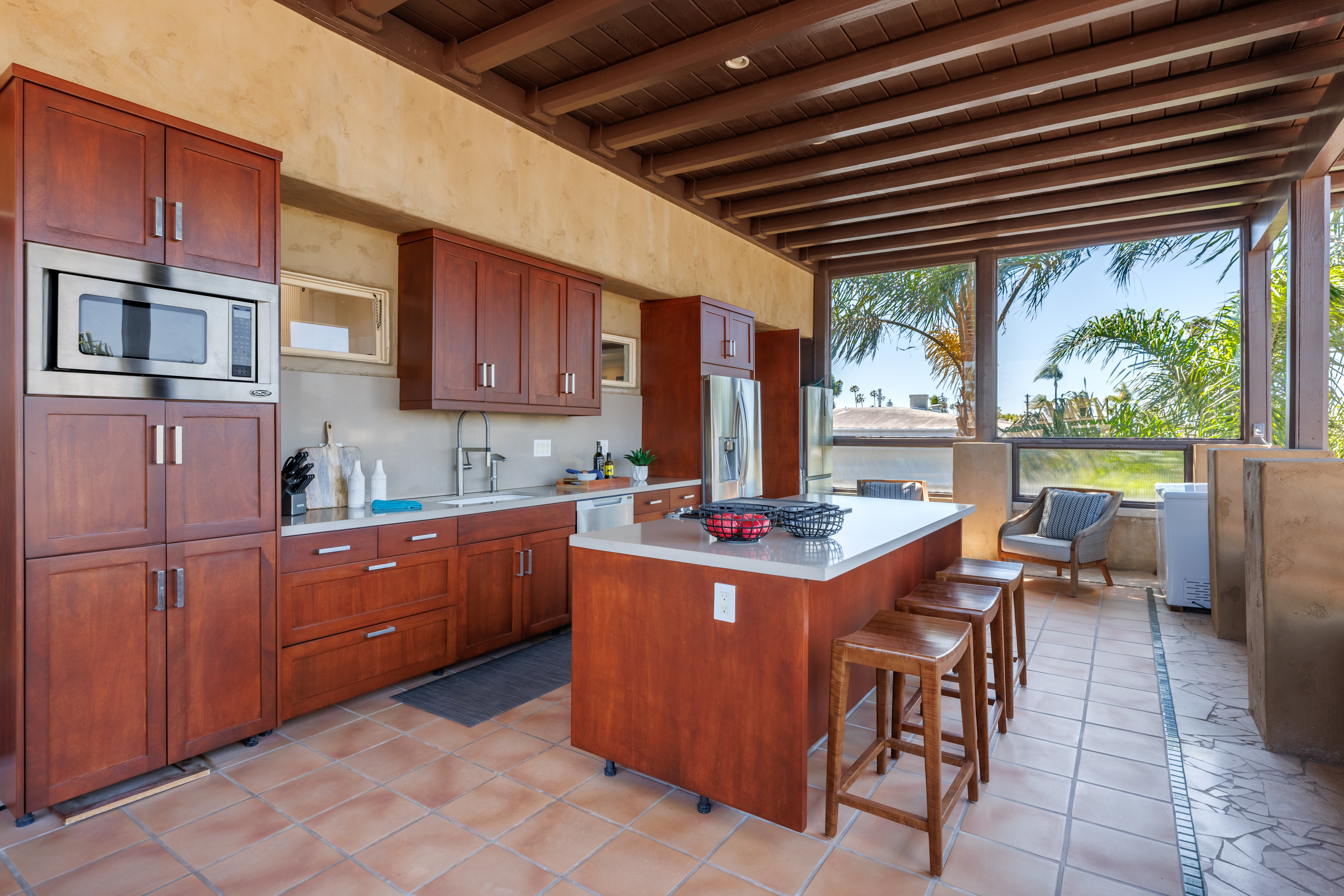 Turnkey and thoughtfully curated, this coastal-inspired residence blends timeless materials with modern sensibility. Designed for both effortless relaxation and elevated entertaining, this urban retreat is anchored by a resort-style backyard with lounge areas, covered outdoor kitchen, and seamless indoor-outdoor flow. Inviting interior features refined living spaces with fireplaces and multiple ensuite bedrooms, each with balconies that enhance a relaxed yet sophisticated atmosphere. Well-appointed chef’s kitchen showcases warm wood cabinetry and sleek countertops, opening effortlessly to the outdoors. Sculptural pool, built-in BBQ, and bar create ideal setting for gatherings and everyday enjoyment. Functional floor plan includes three entry-level bedrooms and two additional ensuite bedrooms upstairs, offering flexibility and privacy. Additional amenities include an alley-access garage and owned solar.