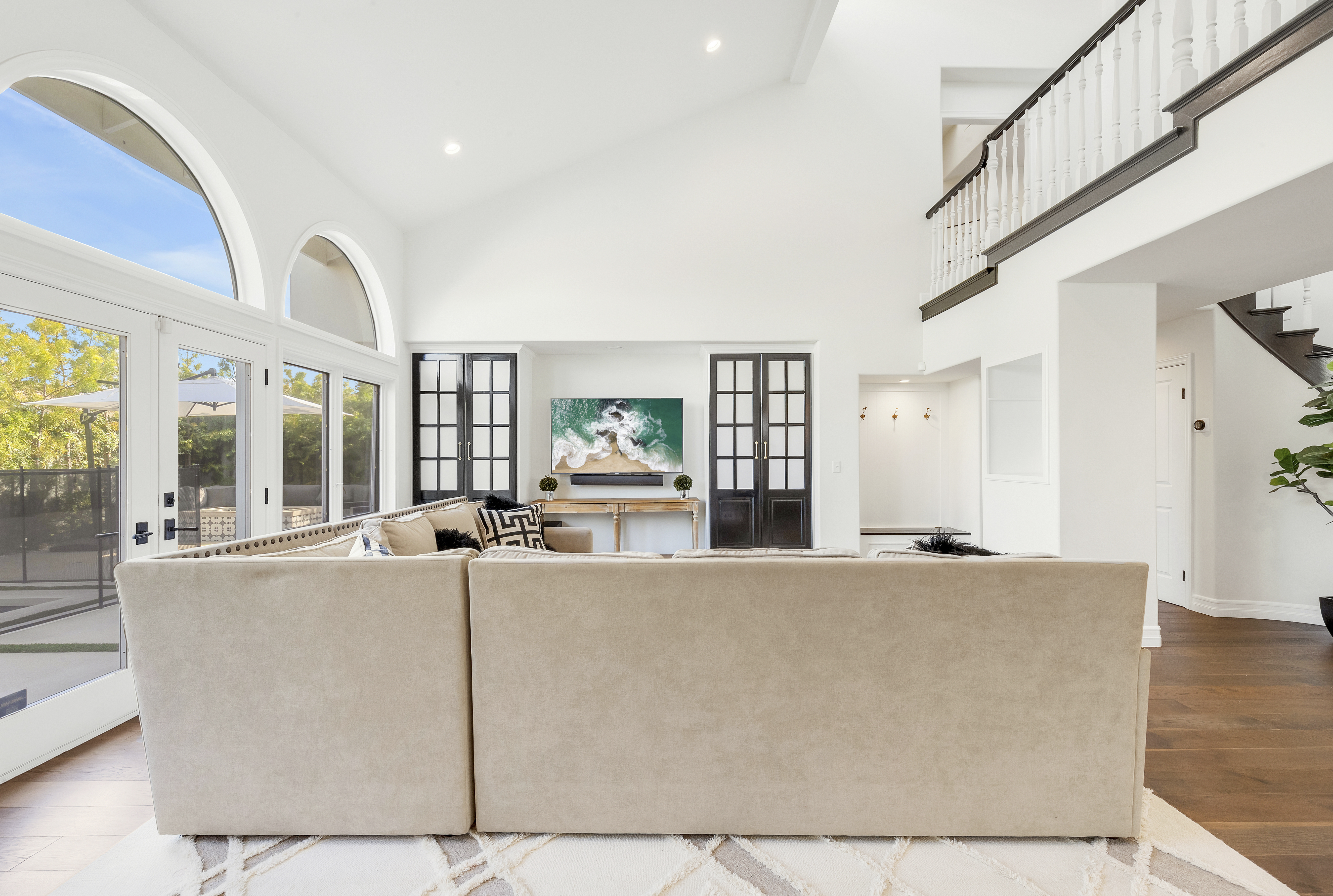 Located on the highly desirable inner loop of the Port Streets and within Phase 1 of the community, this custom residence offers close proximity to the greenbelt and a well-positioned setting within one of Newport Beach’s most sought-after neighborhoods. The home features light-filled interiors with vaulted ceilings, skylights, and wide-plank oak flooring throughout. A formal living room with fireplace and a separate dining area provide defined entertaining spaces, while the open-concept kitchen and family room serve as the central gathering area of the home. The kitchen includes porcelain countertops, a large center island, upgraded appliances, and custom cabinetry. French doors open to the backyard, creating a seamless indoor-outdoor flow. The private outdoor space includes a spool with waterfall feature, fire pit, and a generous grassy area suitable for a variety of uses. The floor plan includes a main-level bedroom with an oversized full bath, offering flexible use for guests or additional living space. All bedrooms are generously sized. Upstairs, the primary suite is situated on its own wing of the home and includes dual walk-in closets and a spa-style bathroom. Two additional bedrooms feature built-in desks and storage, and a spacious bonus room offers the potential to be converted into a fifth bedroom. A dedicated laundry room completes the upper level. Additional features include surround sound and a three-car garage with epoxy flooring. Port Street residents have access to community pools, clubhouses, sports courts, parks, and walking trails, along with convenient proximity to Andersen Elementary School, Fashion Island, local beaches, and John Wayne Airport.