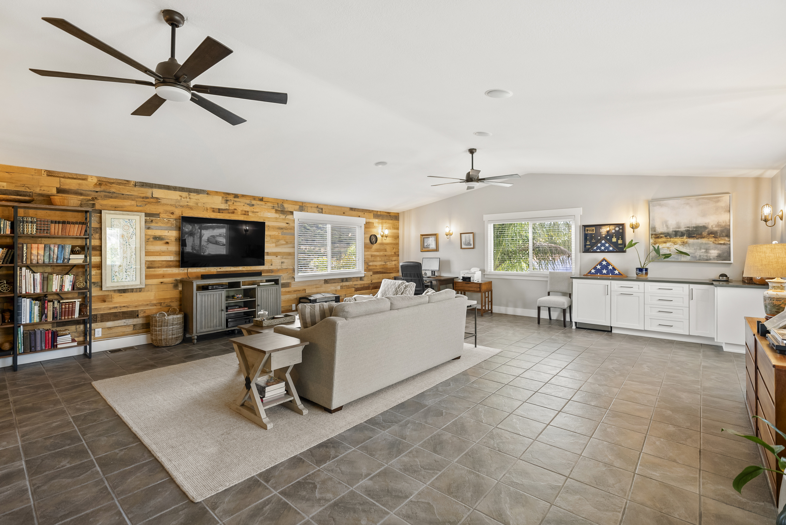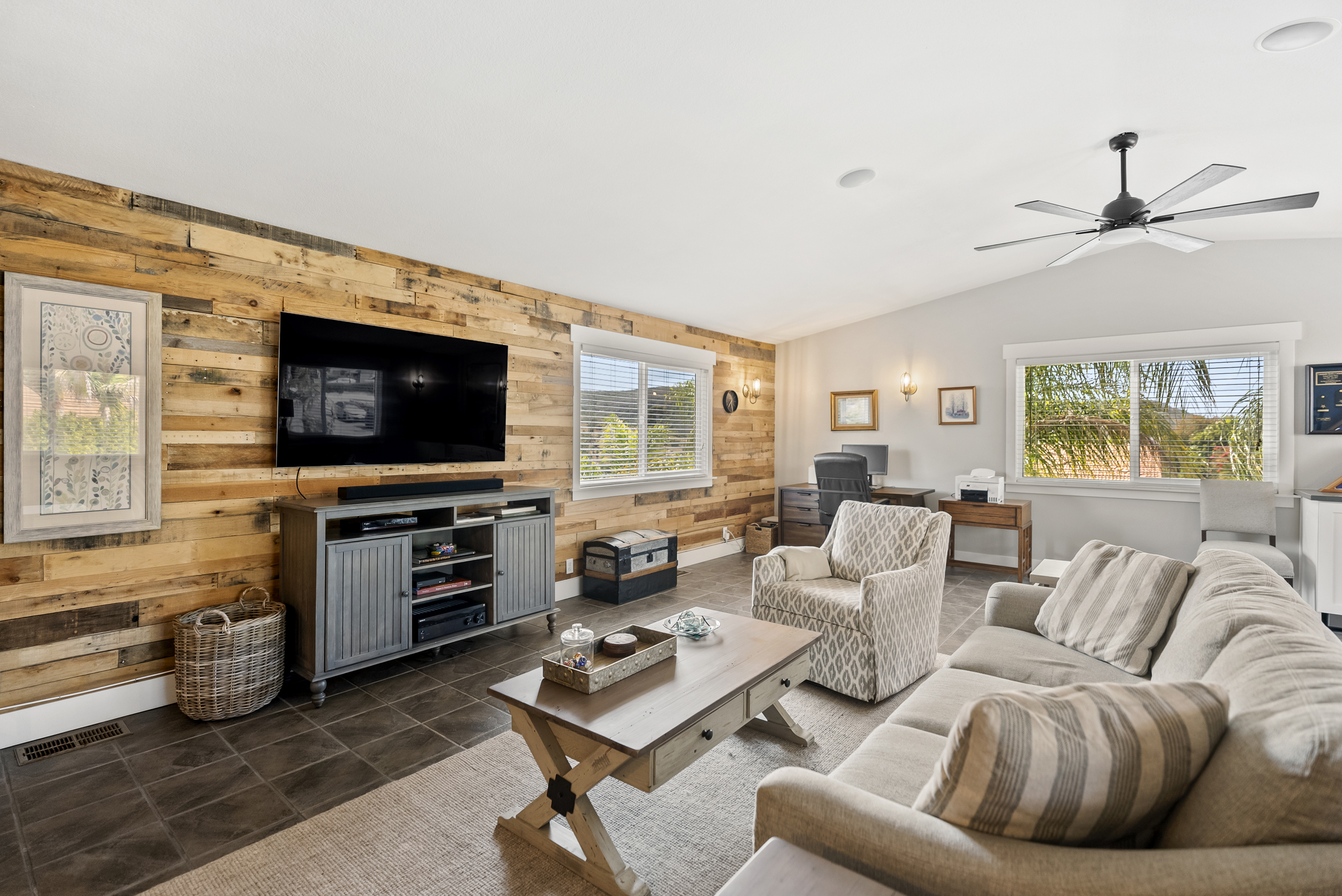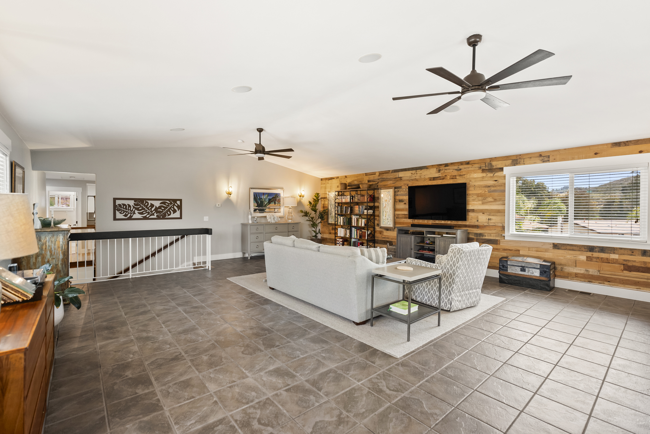 Welcome to this exquisitely updated 4-bedroom, 2.5-bath home with a large bonus room, offering 2,852 square feet of thoughtfully designed living space in the sought-after Fletcher Hills neighborhood. This stunning residence has been remodeled to seamlessly blend modern updates with understated elegance, creating a home that is both stylish and inviting. Upon entry, luxury waterproof vinyl flooring flows throughout, combining durability with contemporary appeal. The beautifully remodeled kitchen is a true centerpiece, featuring elegant cabinetry, high-end quartzite countertops, a Viking range, and a full suite of stainless steel appliances—ideal for both everyday living and entertaining. A permitted bonus room addition with vaulted ceilings provides flexible space for a family room, home office, gym, or guest retreat. Step outside to a low-maintenance, pool-sized backyard complete with lush turf and a drip irrigation system, perfect for relaxing or hosting gatherings with minimal upkeep. Additional highlights include a spacious 3-car garage with ample storage, generous boat or RV parking, a newer roof, and fully paid solar, offering long-term energy savings. Outdoor enthusiasts will appreciate the close proximity to biking and hiking traiis, making it easy to enjoy an active lifestyle. Meticulously maintained and thoughtfully upgraded, this home delivers timeless design, modern comfort, and exceptional functionality—all while preserving warmth and charm. Close proximity to Grossmont College, Gillespie Field and minutes from San Diego State University.