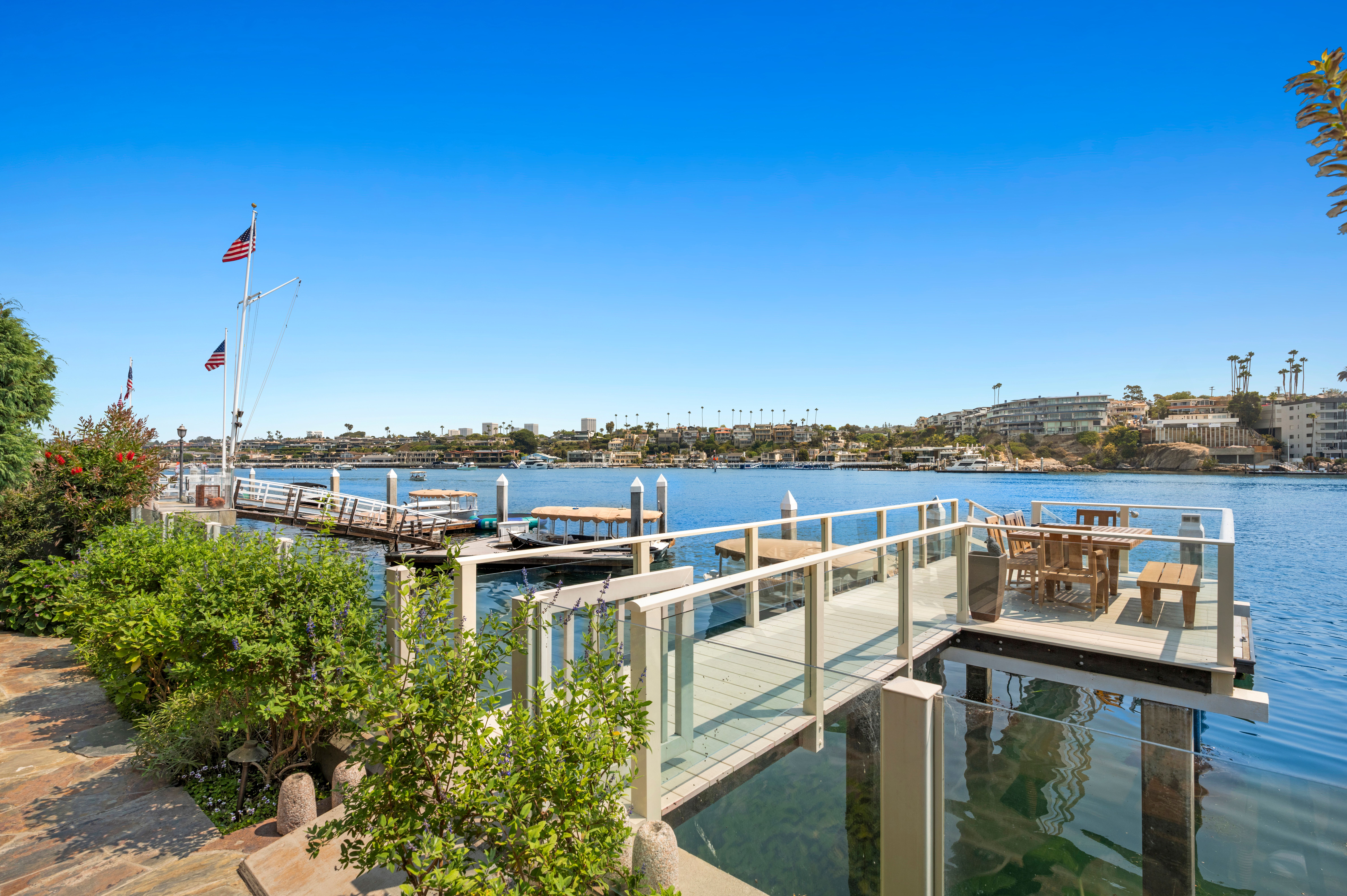 Paradise on the sought after Peninsula Point bayfront! Spanning 45 feet on the bay, this beautifully detailed Craftsman influenced home offers approximately 4400 sq ft of living area plus a 3 car garage. You enter through a private entry path that is lushly landscaped and features a soothing water feature. Hardwood floors, natural stone, granite, Walker Zanger & Ann Sacks tile are just some of the quality finishes. A cook’s kitchen is open to the great room and features Viking appliances and a walk in pantry. 5 bedrooms total with 1 bedroom on the first level plus a media room. Each bedroom features a private bathroom. The primary suite includes an adjoining retreat/office, fireplace, luxurious bath and walk in closet. The pier and bayfront terrace is the perfect setting for dining al fresco or taking in the stunning expansive views of yachting activity near the entrance to Newport Harbor. A brand new dock completed in July is awaiting your vessel.
