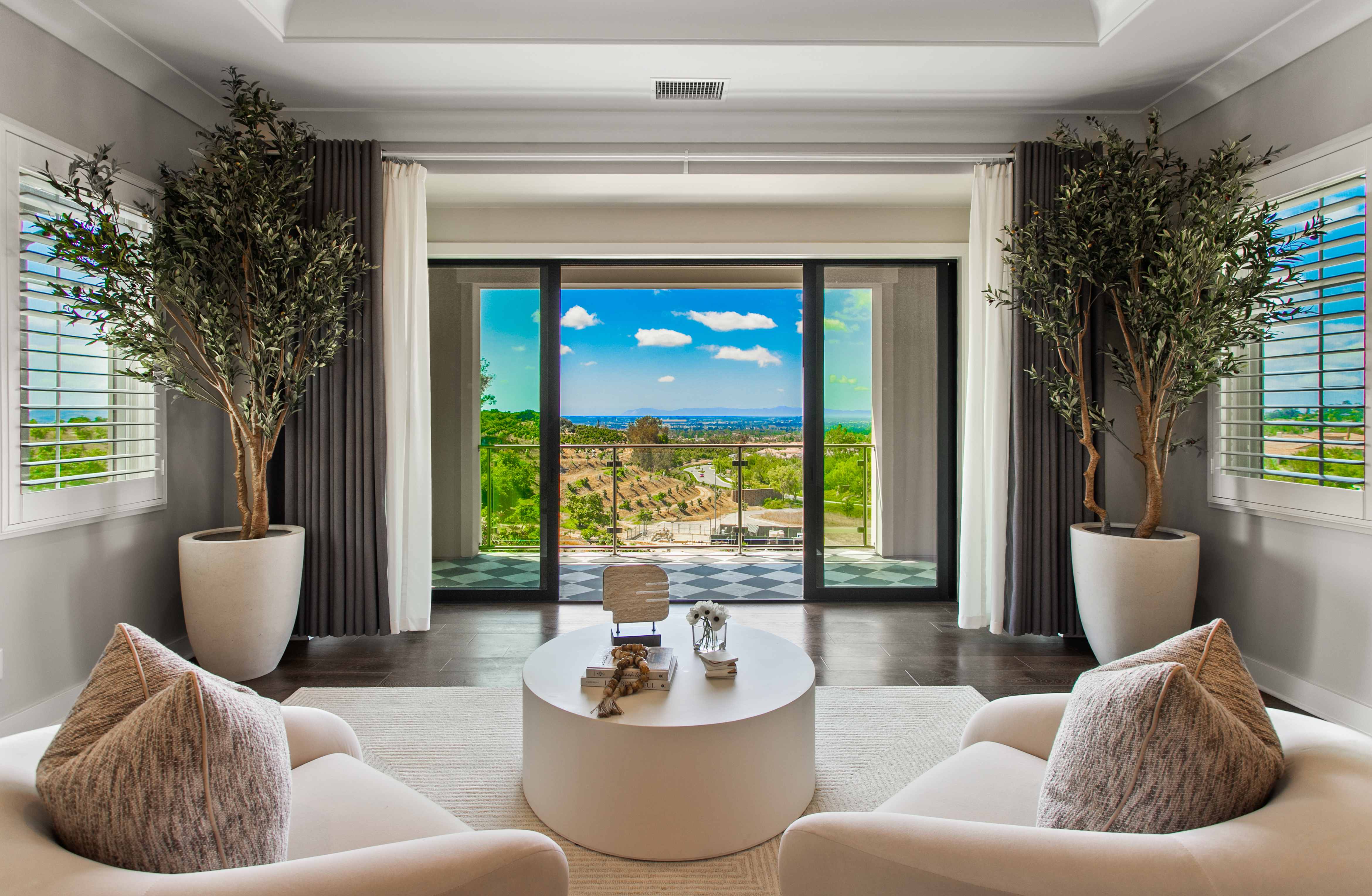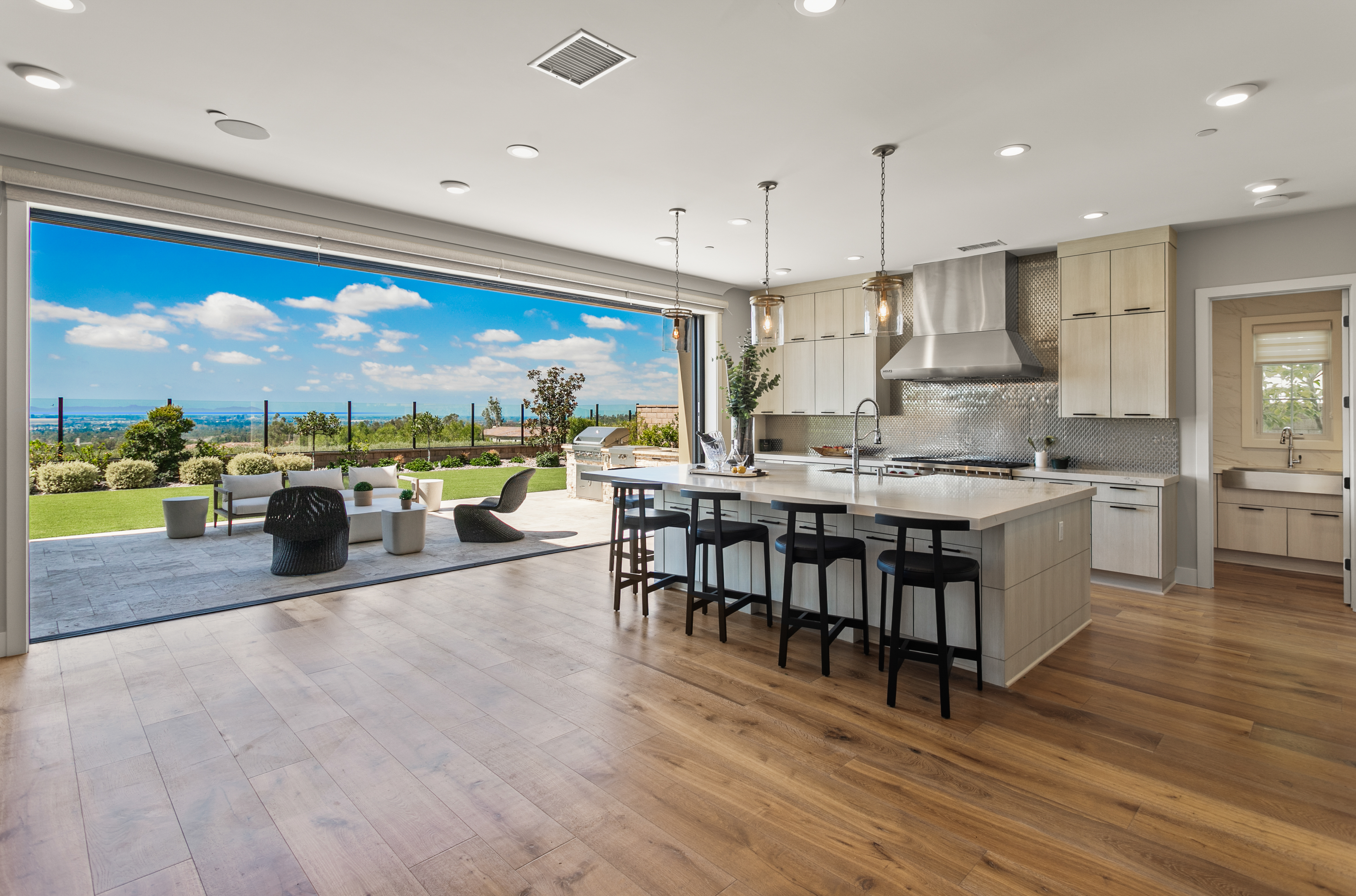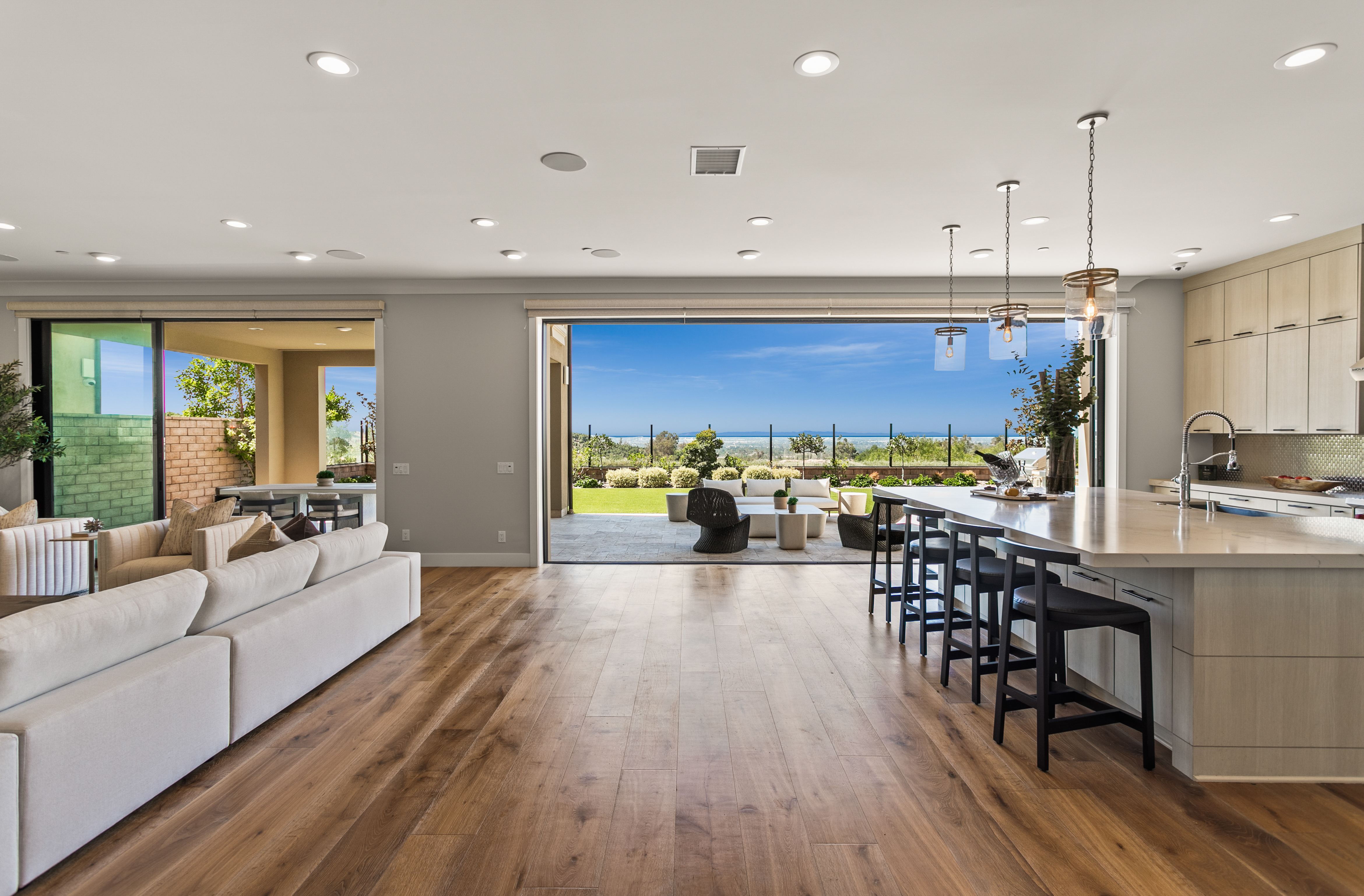 On one of the most sought-after streets in Orchard Hills’ Bella Vista enclave, 224 Clear Falls rises with distinction, offering a vantage few homes in the community can claim, rare views of the ocean, Catalina, and surrounding hills. Framed by the guard-gated serenity of Orchard Hills Estates and surrounded by lush avocado groves, this residence is a masterful balance of elegance, comfort, and enduring quality. Inside, a soaring two-story foyer and sweeping staircase create an unforgettable first impression, leading to a great room designed for both grand entertaining and everyday living. Glass doors open to an expansive covered outdoor lounge, where the extraordinary views become a natural extension of the home. The gourmet kitchen dazzles with its center island and wrap-around breakfast bar, bright dining nook, walk-in pantry, and the coveted secondary kitchen that makes hosting effortless. The primary suite is a sanctuary of its own, boasting a private view deck, dual walk-in closets, and a spa-inspired bath with Roman tub and luxe shower. Complementing the primary suite are four secondary bedrooms, each with ensuite baths, including one conveniently located on the main level for guests or multi-generational living. A spacious bonus room connects to a covered deck, while a refined home office and welcoming drop zone add versatility to the thoughtful floor plan. Meticulously maintained and enhanced with a rare four-car garage, this home is a jewel within one of Irvine’s most prestigious guard-gated communities. Just minutes from Irvine Spectrum, Tustin Marketplace, and major freeways, 224 Clear Falls embodies a lifestyle defined by prestige, serenity, and views unlike any other in Orchard Hills.