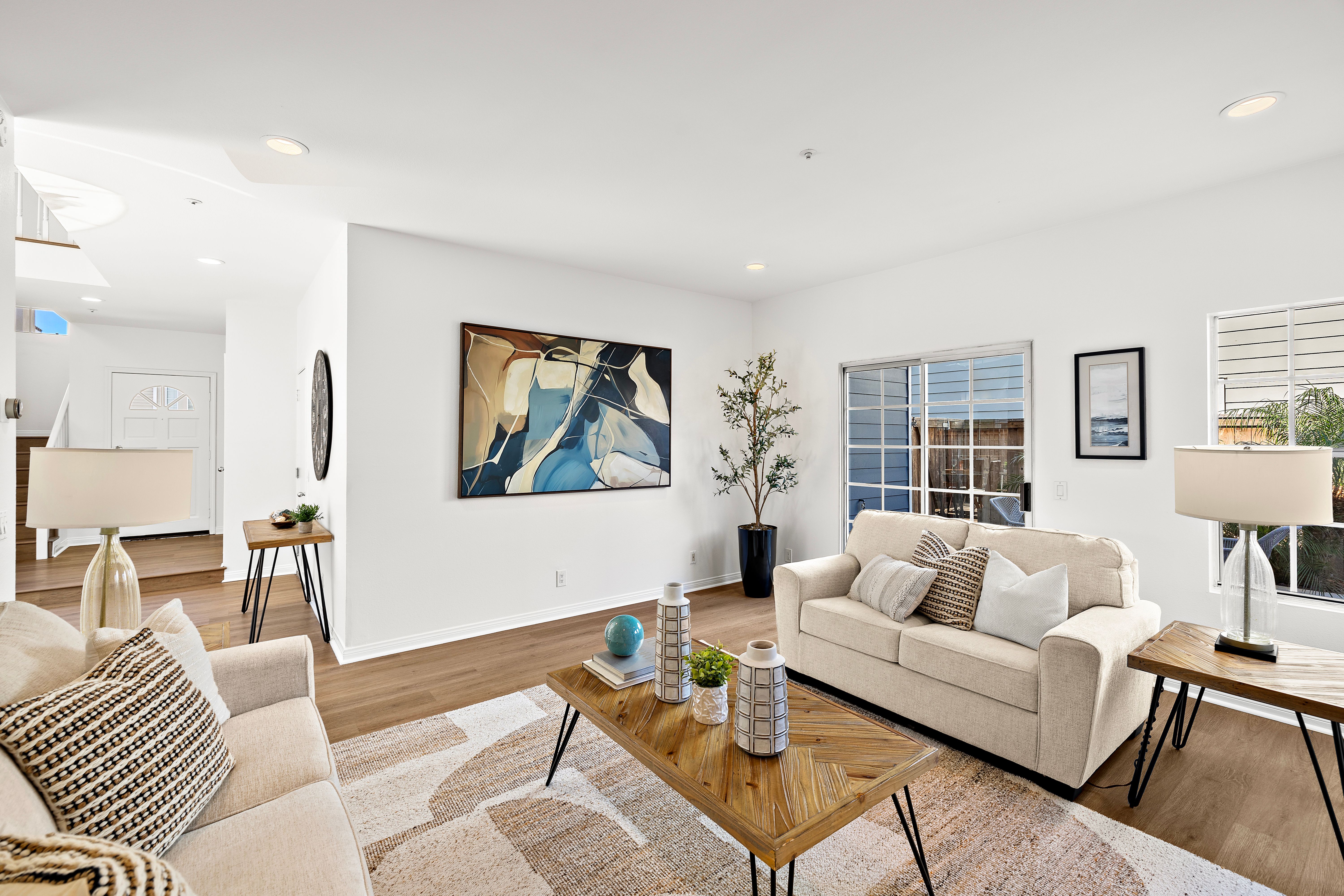Fully detached single-family townhouse located in the highly desirable Eastside Costa Mesa, welcome to 2563 Orange Ave Unit #C. This 3 bedroom, 2.5 bathroom home offers a layout that simply works, with all bedrooms located upstairs. Two secondary bedrooms are connected by a Jack & Jill bathroom with both a shower and tub. The primary suite is set apart with a double door entry, high-ceilings, walk-in closet, fireplace, and a spacious ensuite featuring an extended vanity, soaking tub, and separate shower, creating a comfortable and private retreat. The main level is open and functional, with connected living, dining, and kitchen spaces filled with natural light. A fireplace anchors the living room, and direct access to the attached two-car garage adds everyday convenience. Outdoor space is both usable and well laid out. The wrap-around yard includes a built-in seating bench and fire pit on one side, with additional space off the kitchen that works well for dining or relaxing. The home has been thoughtfully refreshed inside and out with new interior and exterior paint, new carpeting in the bedrooms, and updated landscaping. Luxury vinyl flooring runs throughout the main living areas, giving the home a clean, well-cared-for, and move-in ready feel.