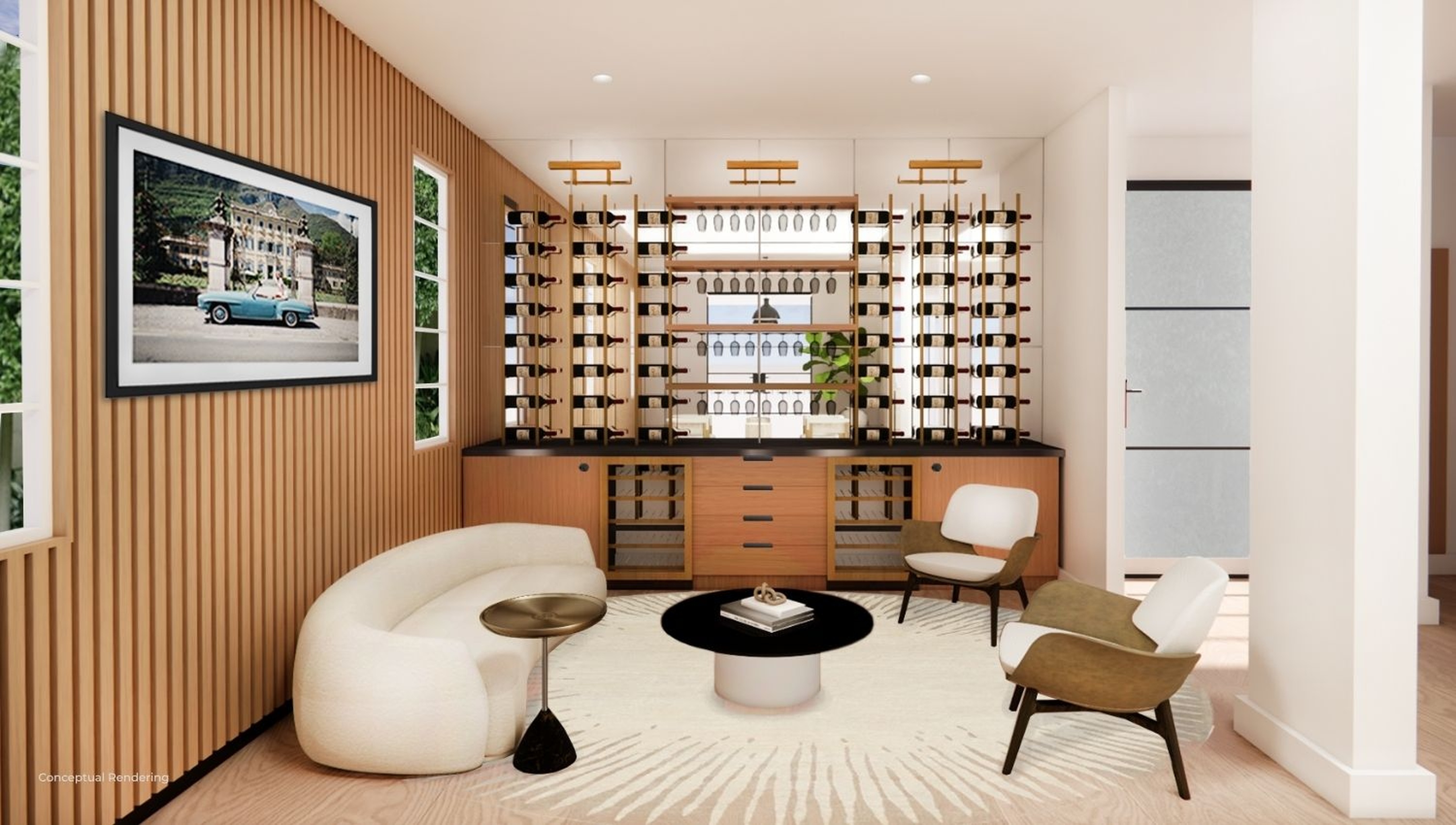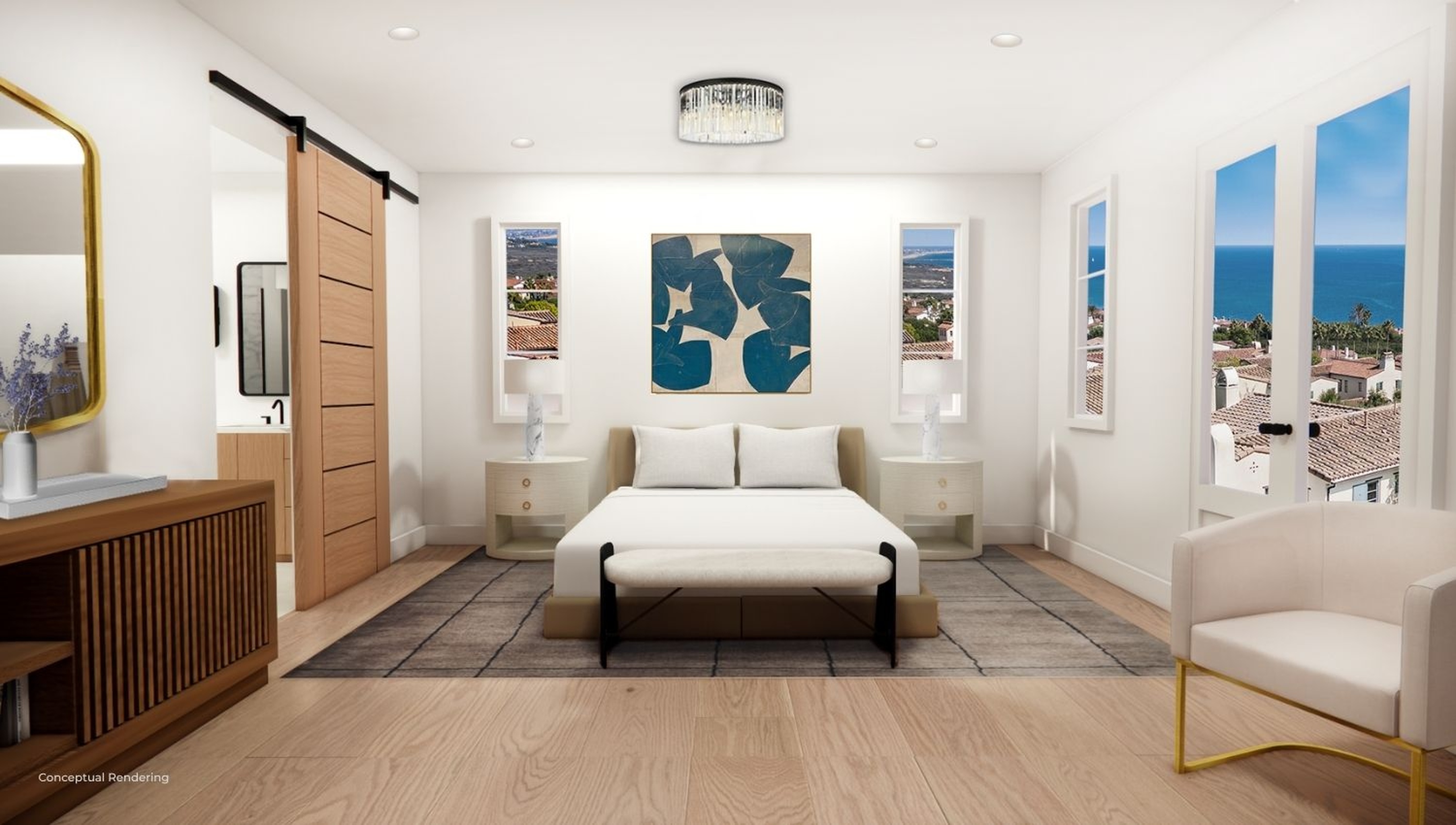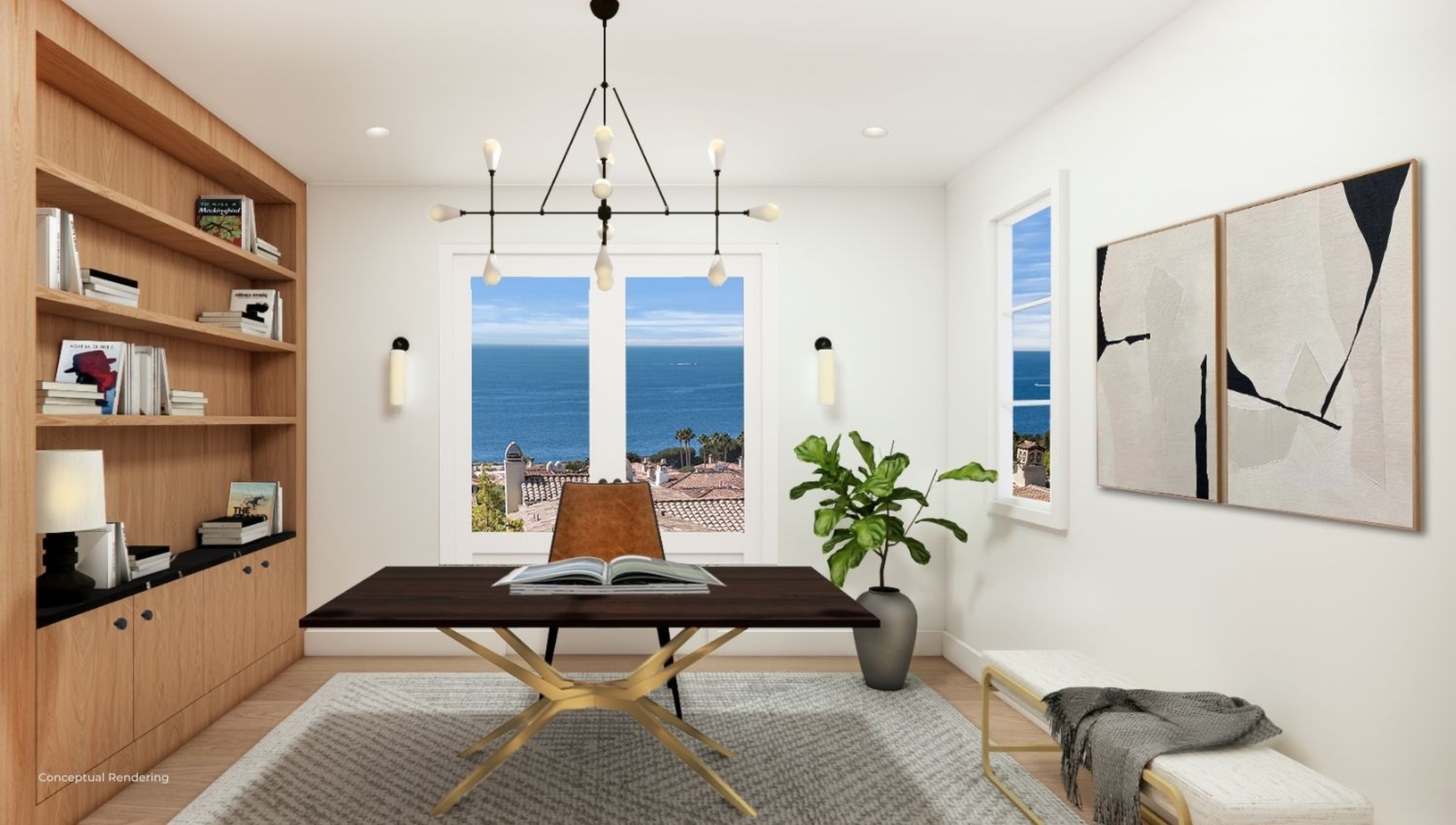 Welcome to 28 Surfspray Bluff, an architectural retreat nestled within the coveted Nautilus enclave of Crystal Cove. Here, timeless Santa Barbara-inspired design meets a newly envisioned modern coastal aesthetic, where every space captures the rhythm of the sea and the art of sophisticated living. A brand-new front drive, crafted with sleek concrete and turf, sets the tone for what lies beyond; a home reimagined with meticulous detail and refined materials. Step through the private gated entry and follow the walkway past a lushly landscaped courtyard and tranquil fountain, where serenity introduces sophistication. Inside, a series of glass-paneled French doors open to light-filled spaces with sweeping sit-down ocean and Catalina views from both levels. The reimagined interiors — as captured in the stunning renderings — celebrate natural textures and modern warmth: wide-plank oak floors, vertical slat accent walls, and soft neutral palettes play in harmony with the coastal horizon beyond. The chef’s kitchen is a centerpiece of artistry and function, featuring an island wrapped in waterfall Calacatta quartz, custom white oak cabinetry, and professional-grade appliances by Viking and Sub-Zero. Pendant lighting and seamless flow into the living and dining areas create a feeling of effortless connection; ideal for hosting sunset gatherings framed by the Pacific. The family room reveals a custom black marble fireplace wall flanked by rich oak built-ins, leading to the expansive patio where indoor-outdoor living unfolds. A bespoke wine room, designed with mirrored display racks and architectural lighting, evokes the feel of a private tasting lounge. Upstairs, the primary suite is a serene sanctuary, offering panoramic ocean views, a spa-inspired bath wrapped in marble, and a boutique-style dressing room. The private office/media room showcases endless blue vistas — a perfect space to work, dream, or unwind. Every bedroom offers its own en-suite bath, while the detached casita provides a luxurious retreat for guests. The outdoor living space, complete with a BBQ island, and dining area, is designed for evenings beneath the stars. Within the 24-hour guard-gated Crystal Cove community, residents enjoy access to the Canyon Club amenities and scenic trails; all moments from Crystal Cove State Beach and the boutiques and dining of Crystal Cove Promenade.