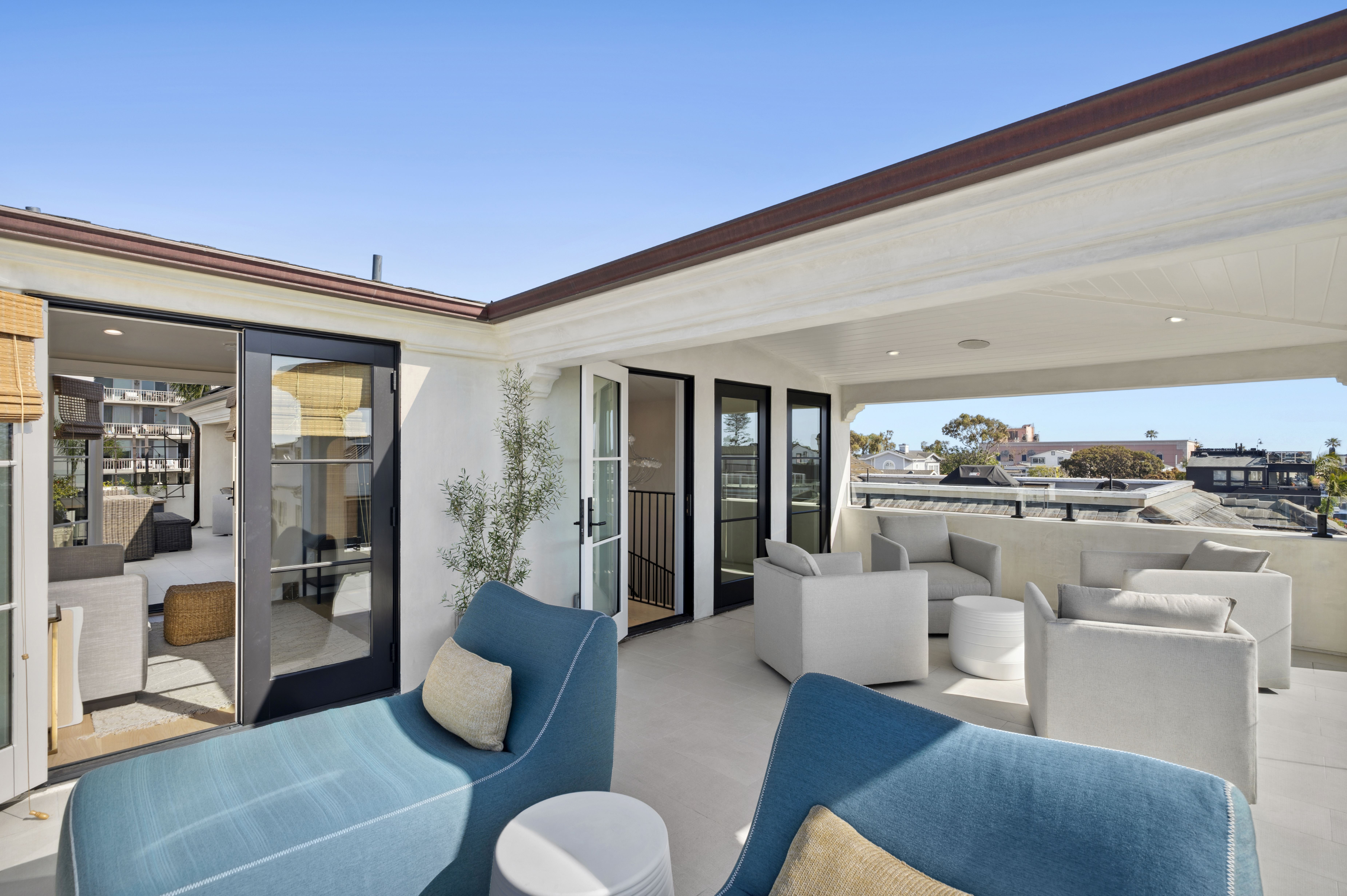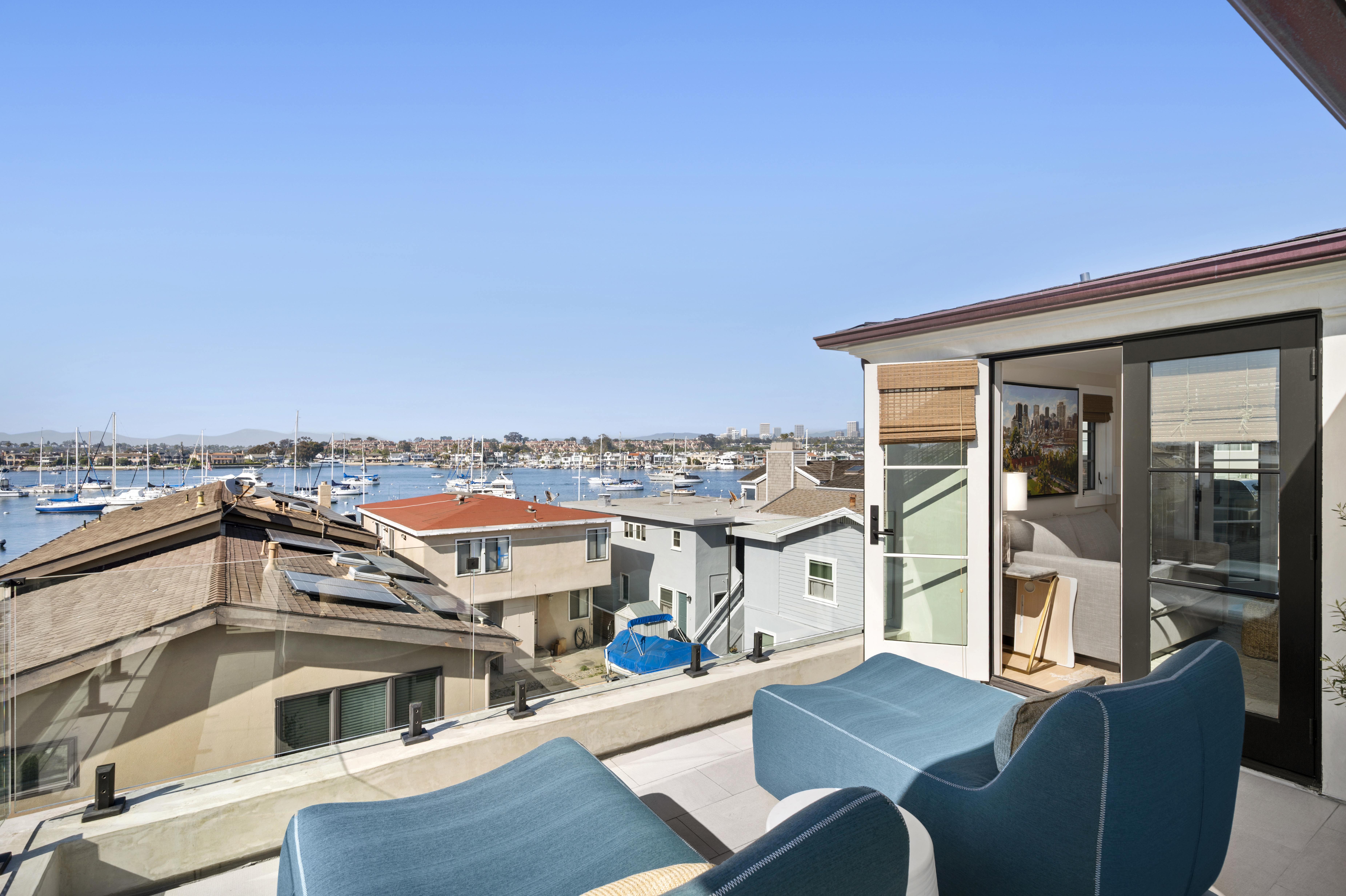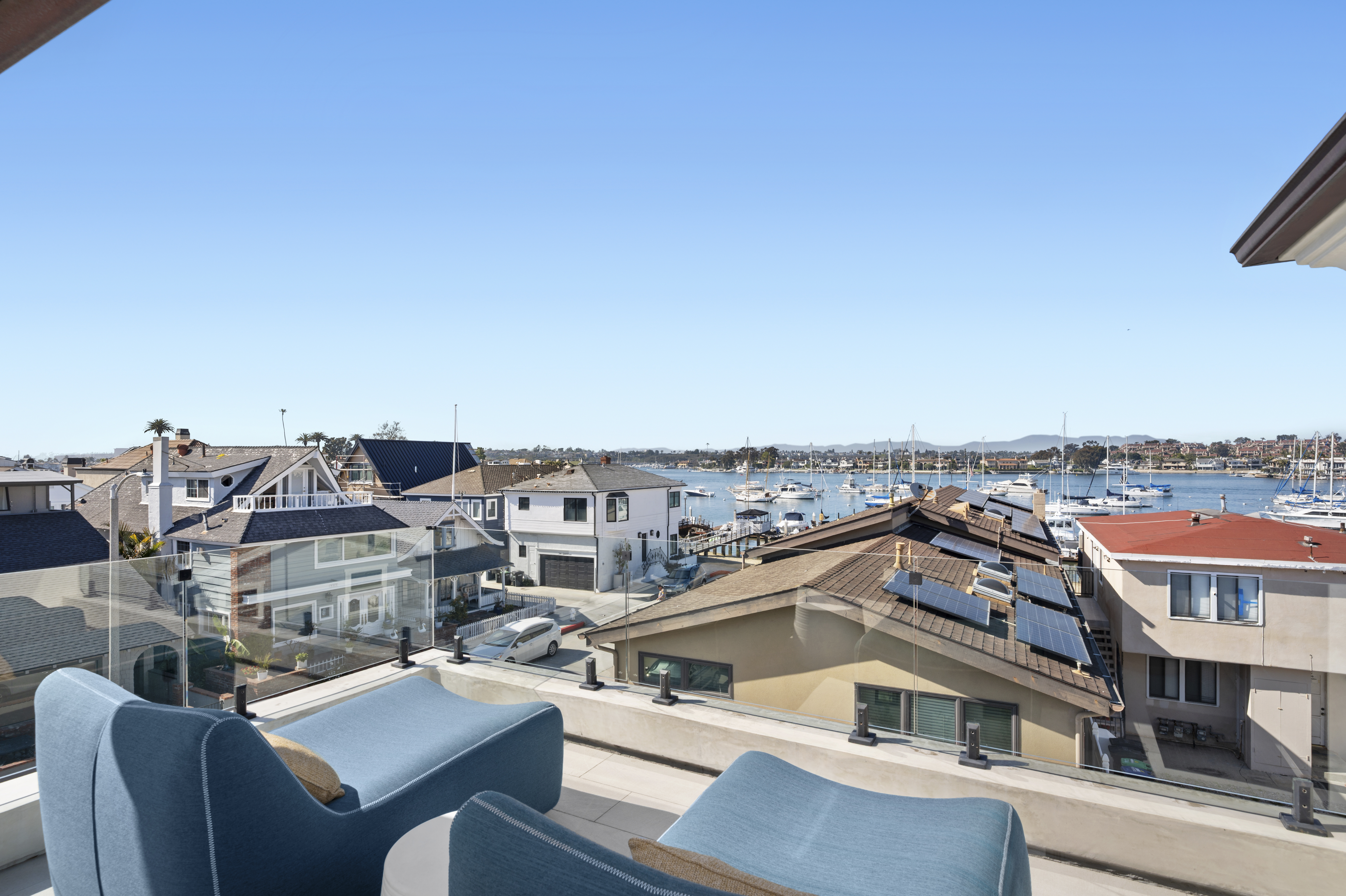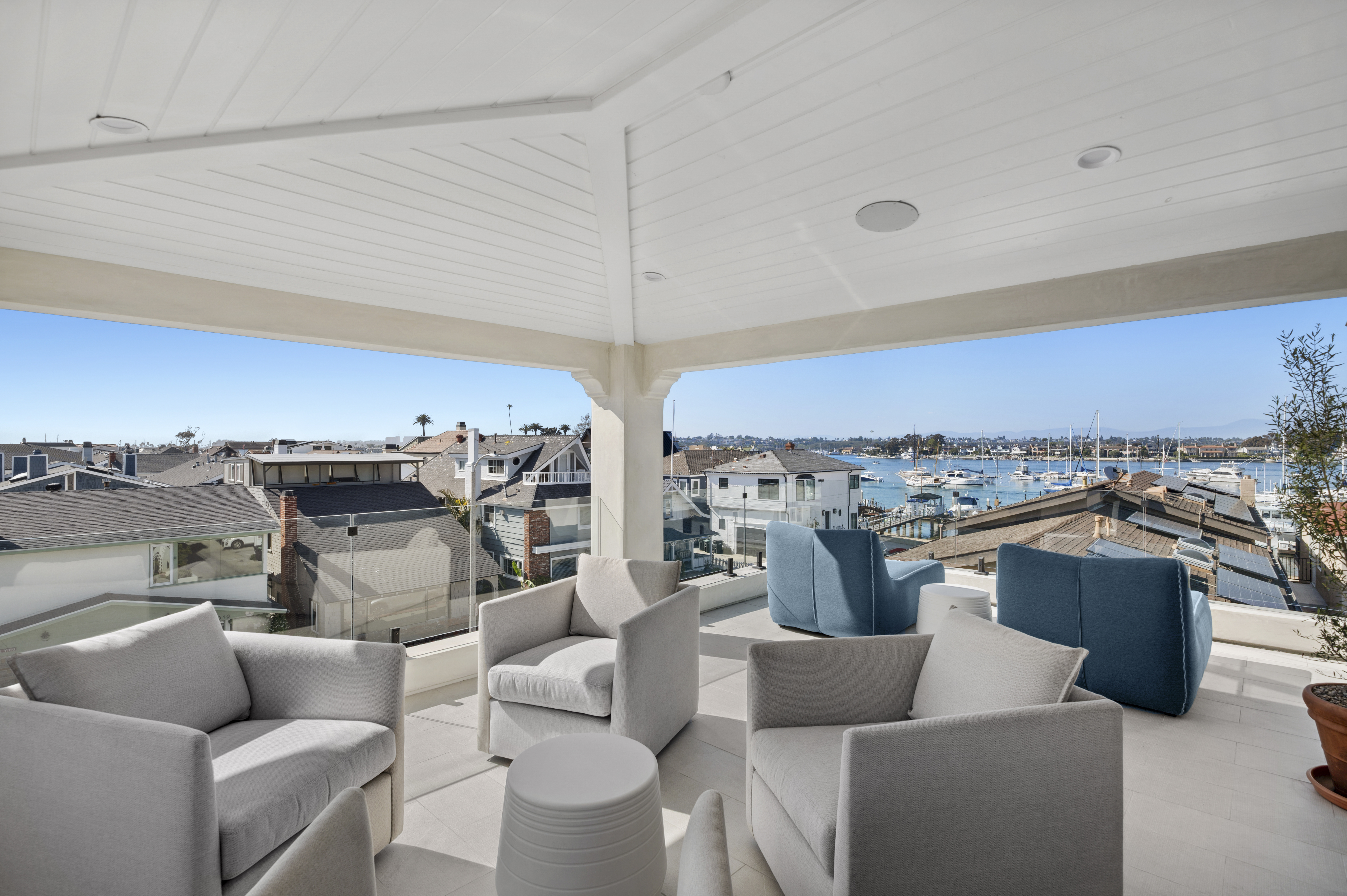 Welcome to 318 Coronado Street, a stunning custom-built 3-bedroom, 5-bathroom home located just two doors from the bay on the coveted Balboa Peninsula. This elevated corner residence offers panoramic views of the Newport Harbor, abundant indoor/outdoor living space, three-car parking (two-car garage plus an oversized carport), and a private elevator serving all three levels. The main level features a gourmet kitchen with a large island and high-end appliances, and a large great room that flows seamlessly out to a spacious front patio with bay views. A custom metal spiral staircase—paired with the elevator—leads to the second level with two guest suites, a laundry room, and a luxurious primary suite which includes a private balcony, dual vanities, soaking tub inside a walk-in shower, and a large walk-in closet. The show-stopping rooftop deck on the third floor spans two outdoor living areas: one with covered seating, a fireplace, TV, and wet bar, and the other with open-air lounging and views stretching from the ocean to Fashion Island - all perfect for al fresco dining and entertaining. This thoughtfully designed home blends refined craftsmanship with effortless beach living in one of Newport Beach’s most desirable locations.