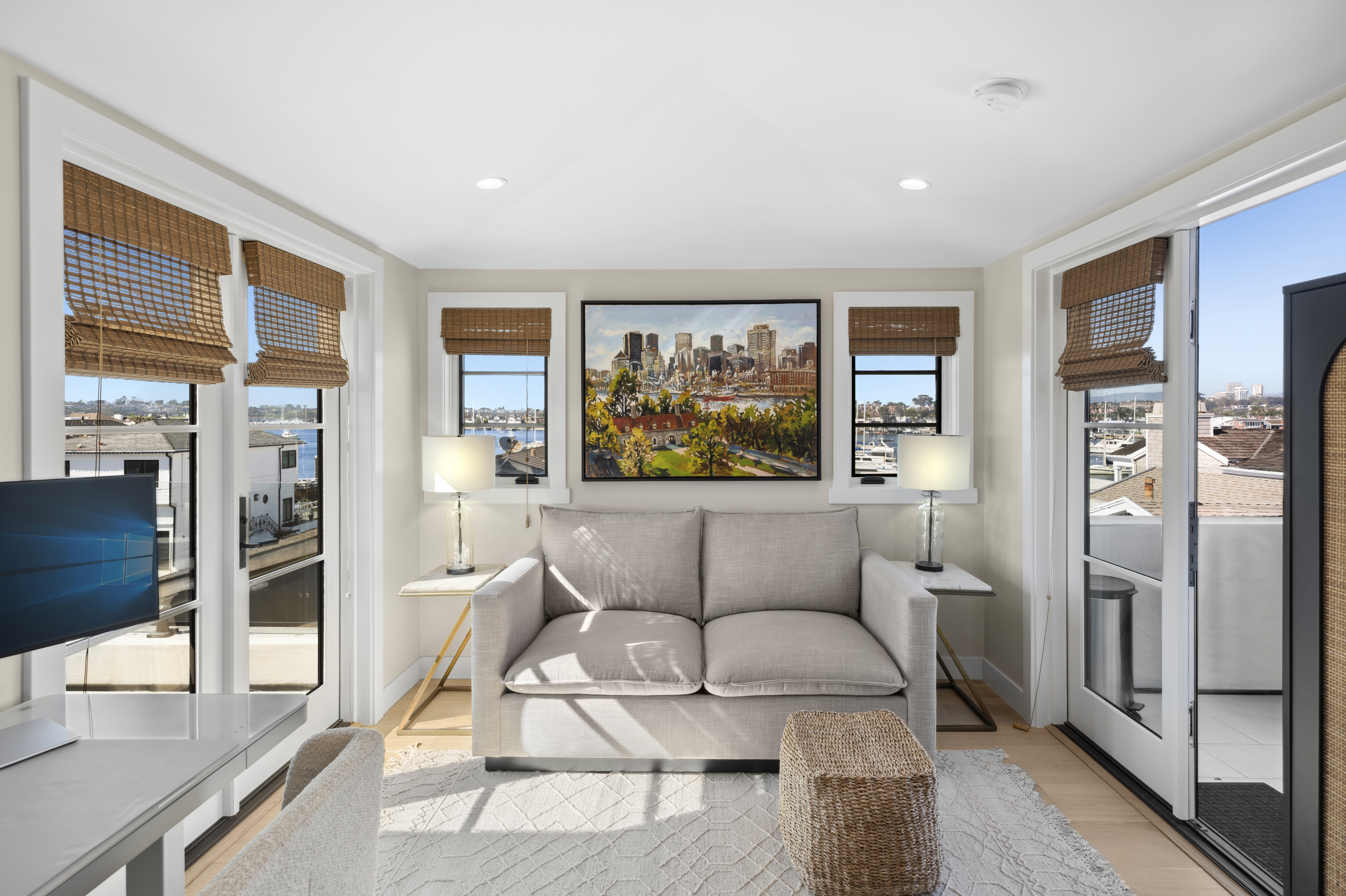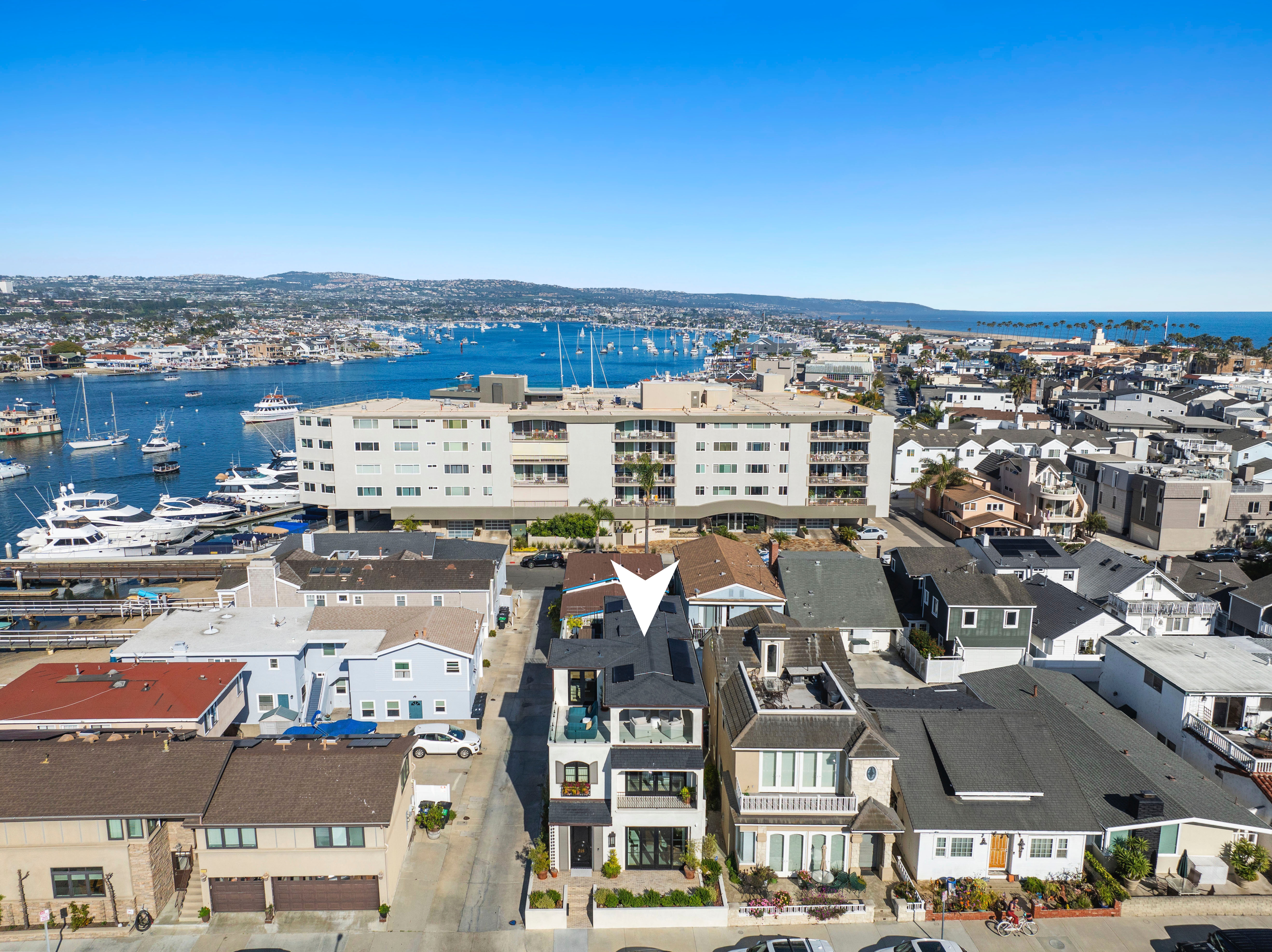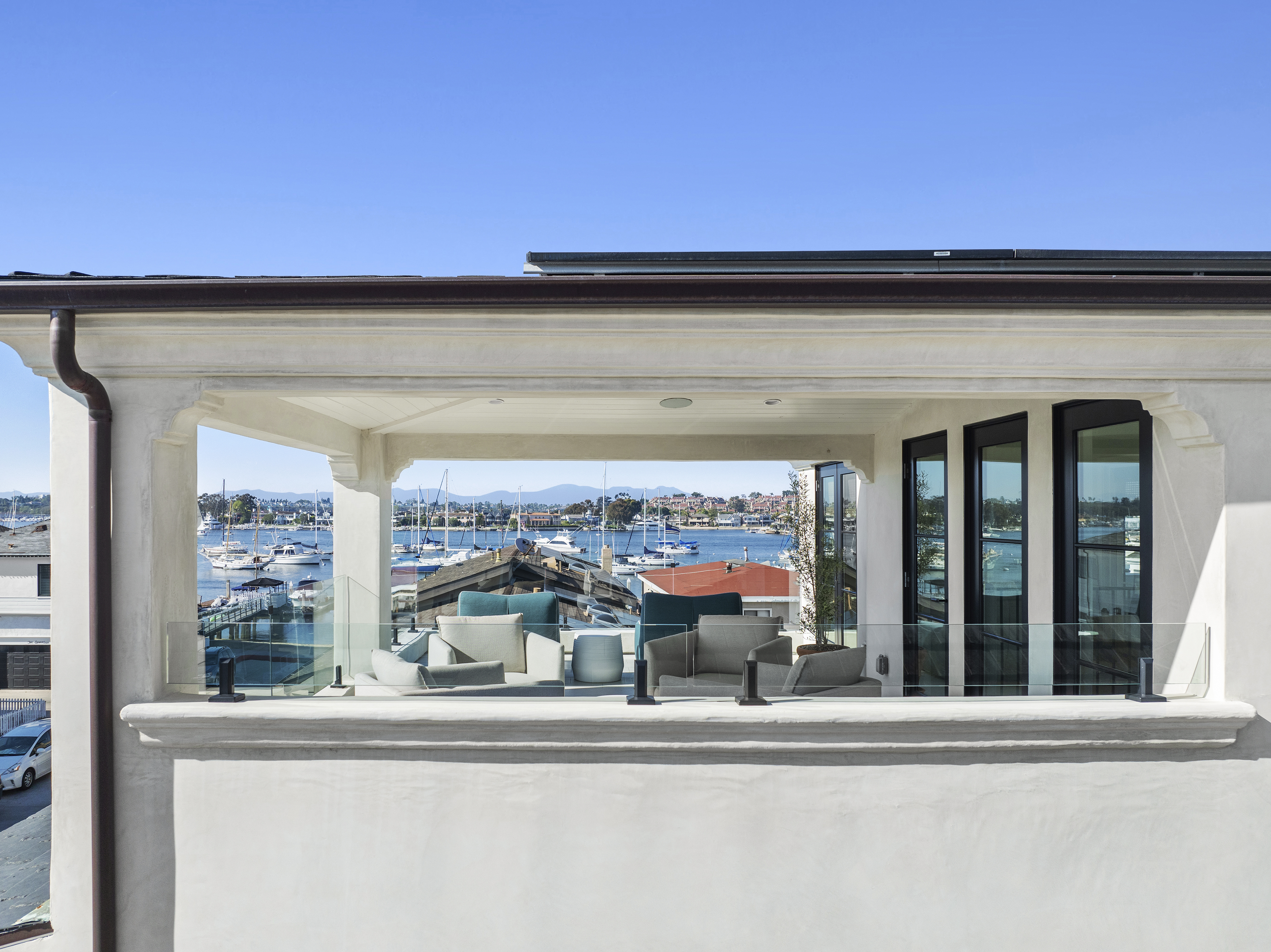 Welcome to 318 Coronado Street, a stunning custom-built 3-bedroom, 5-bathroom home located just two doors from the bay on the coveted Balboa Peninsula. This elevated corner residence offers panoramic views of the Newport Harbor, abundant indoor/outdoor living space, three-car parking (two-car garage plus an oversized carport), and a private elevator serving all three levels. The main level features a gourmet kitchen with a large island and high-end appliances, and a large great room that flows seamlessly out to a spacious front patio with bay views. A custom metal spiral staircase—paired with the elevator—leads to the second level with two guest suites, a laundry room, and a luxurious primary suite which includes a private balcony, dual vanities, soaking tub inside a walk-in shower, and a large walk-in closet. The show-stopping rooftop deck on the third floor spans two outdoor living areas: one with covered seating, a fireplace, TV, and wet bar, and the other with open-air lounging and views stretching from the ocean to Fashion Island - all perfect for al fresco dining and entertaining. This thoughtfully designed home blends refined craftsmanship with effortless beach living in one of Newport Beach’s most desirable locations.