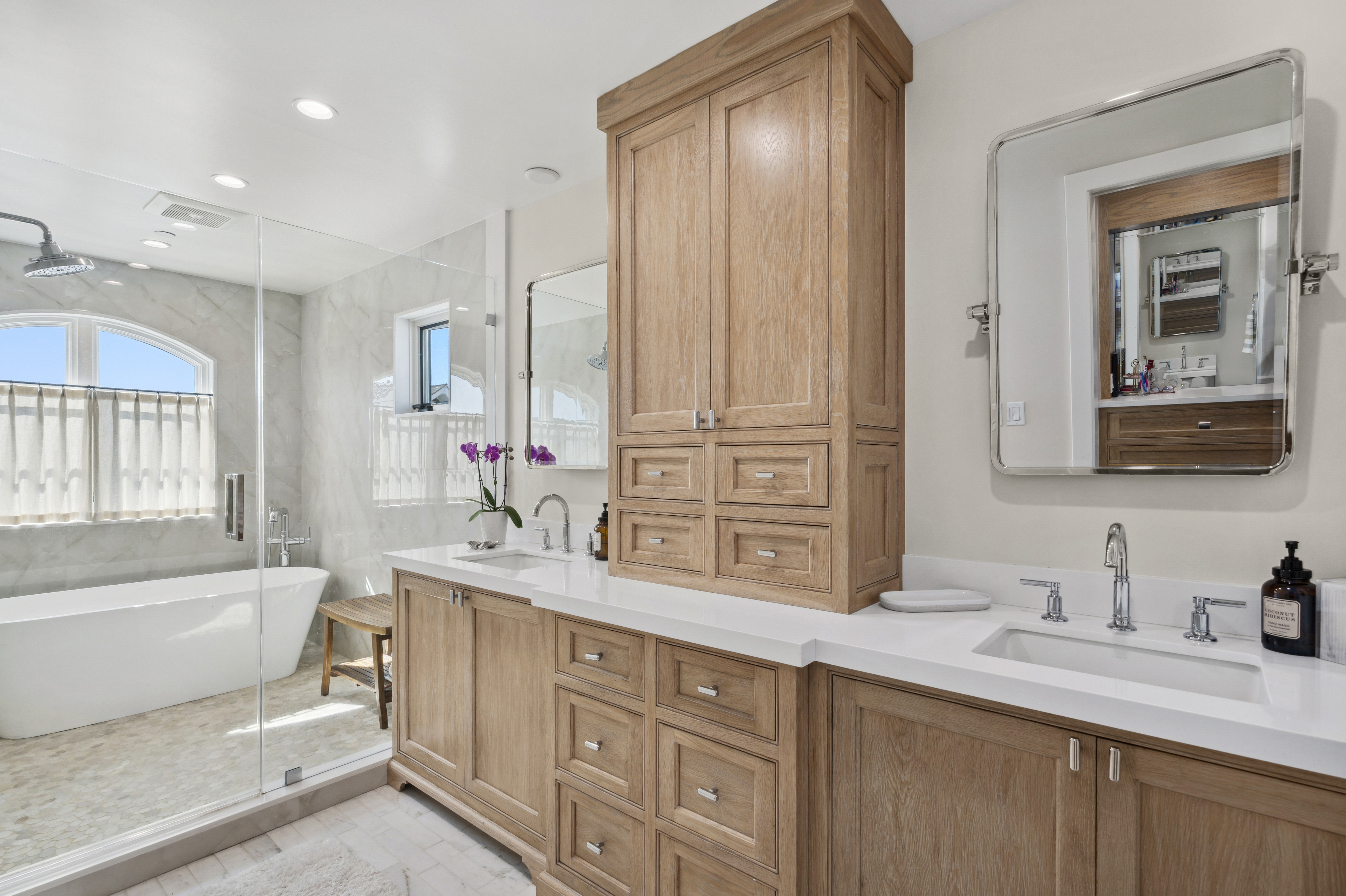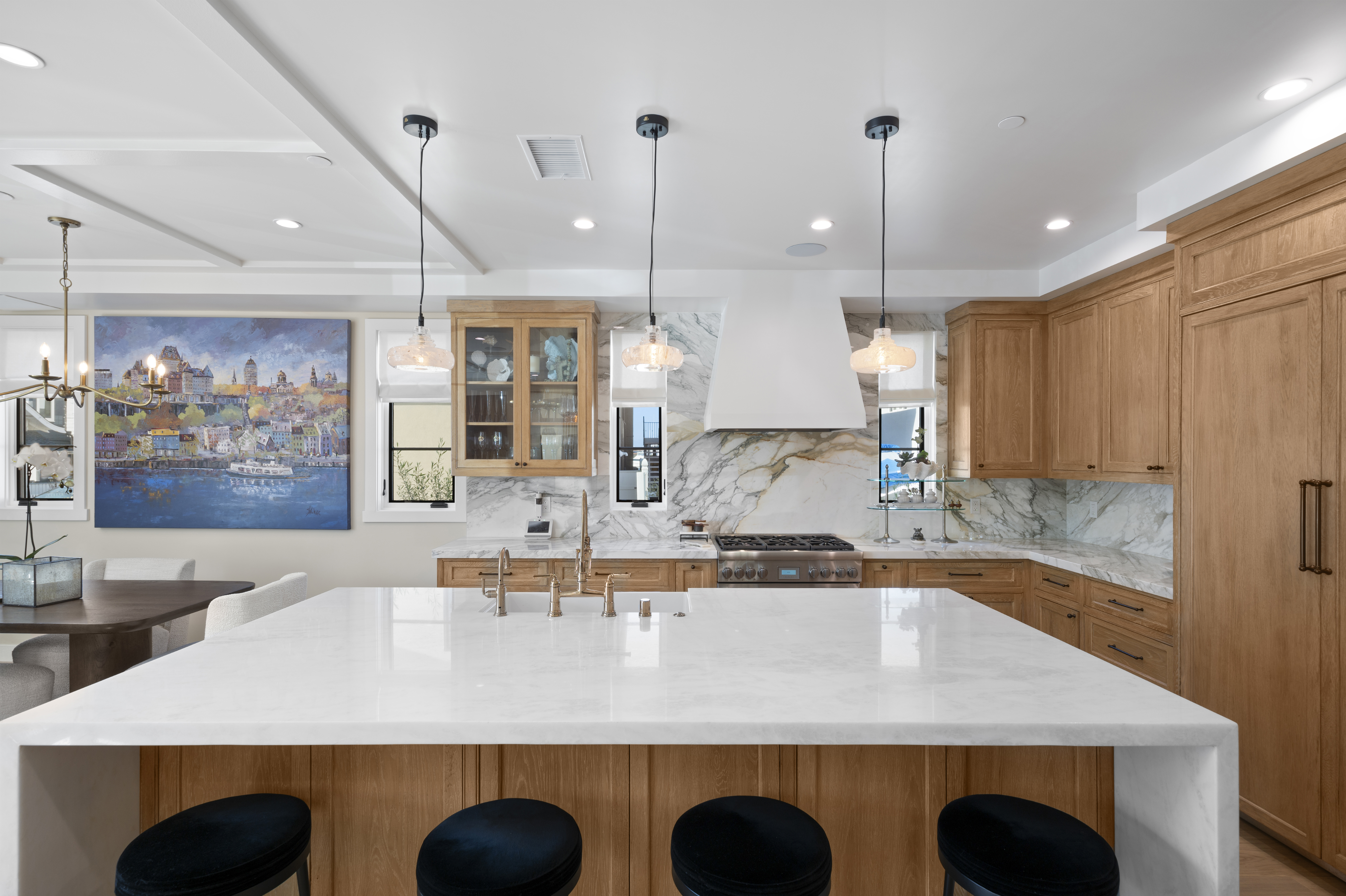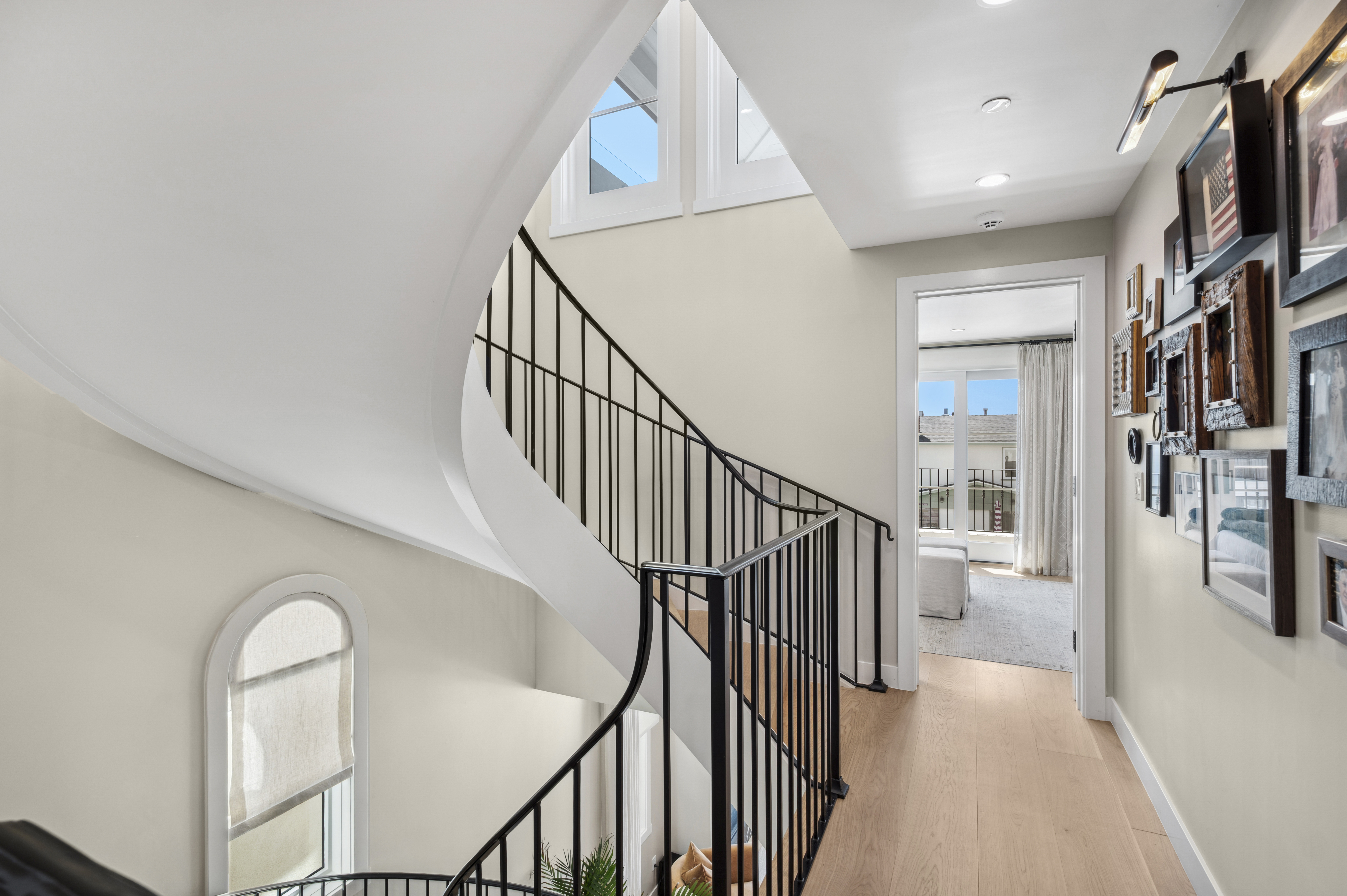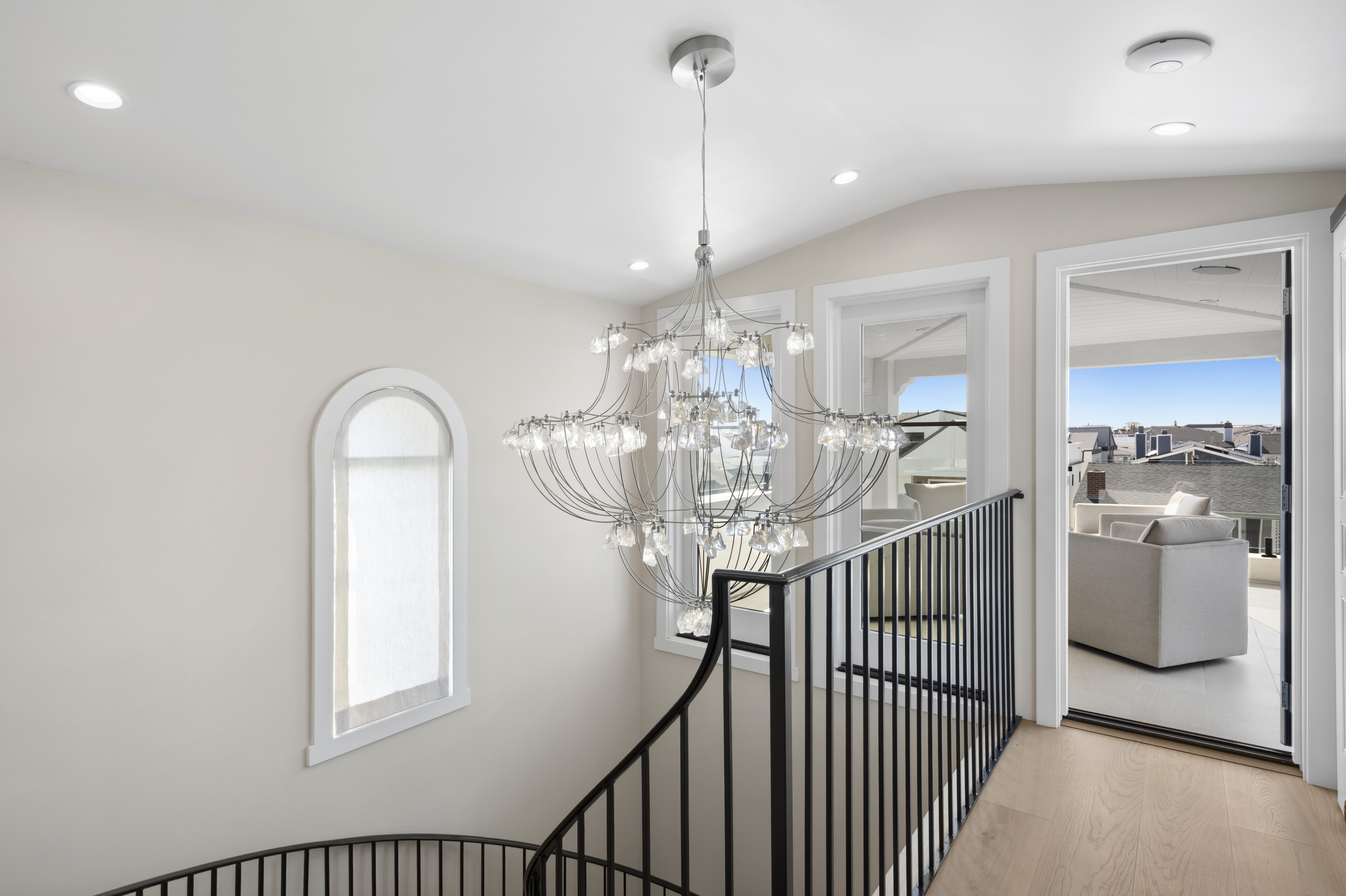 Welcome to 318 Coronado Street, a stunning custom-built 3-bedroom, 5-bathroom home located just two doors from the bay on the coveted Balboa Peninsula. This elevated corner residence offers panoramic views of the Newport Harbor, abundant indoor/outdoor living space, three-car parking (two-car garage plus an oversized carport), and a private elevator serving all three levels. The main level features a gourmet kitchen with a large island and high-end appliances, and a large great room that flows seamlessly out to a spacious front patio with bay views. A custom metal spiral staircase—paired with the elevator—leads to the second level with two guest suites, a laundry room, and a luxurious primary suite which includes a private balcony, dual vanities, soaking tub inside a walk-in shower, and a large walk-in closet. The show-stopping rooftop deck on the third floor spans two outdoor living areas: one with covered seating, a fireplace, TV, and wet bar, and the other with open-air lounging and views stretching from the ocean to Fashion Island - all perfect for al fresco dining and entertaining. This thoughtfully designed home blends refined craftsmanship with effortless beach living in one of Newport Beach’s most desirable locations.