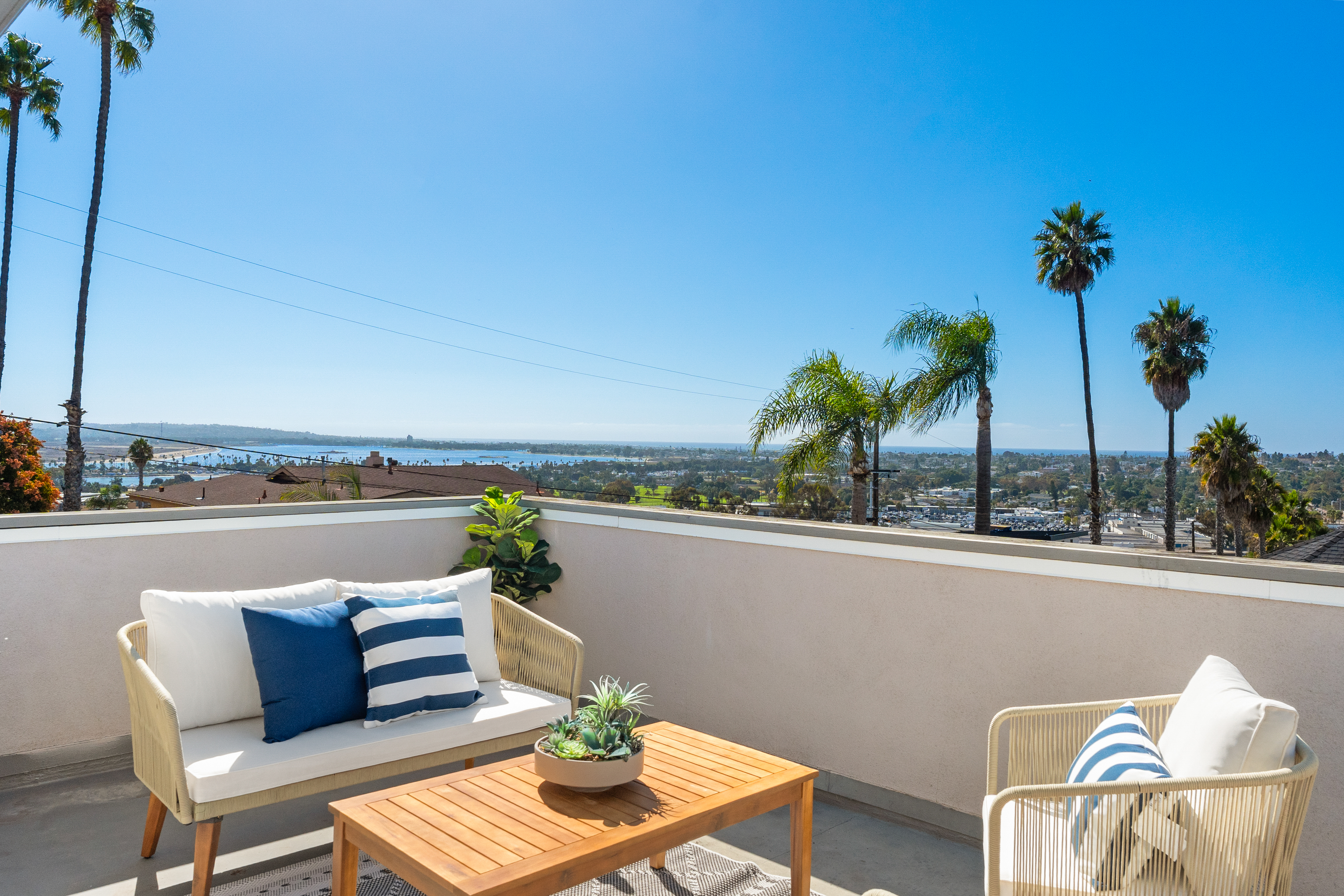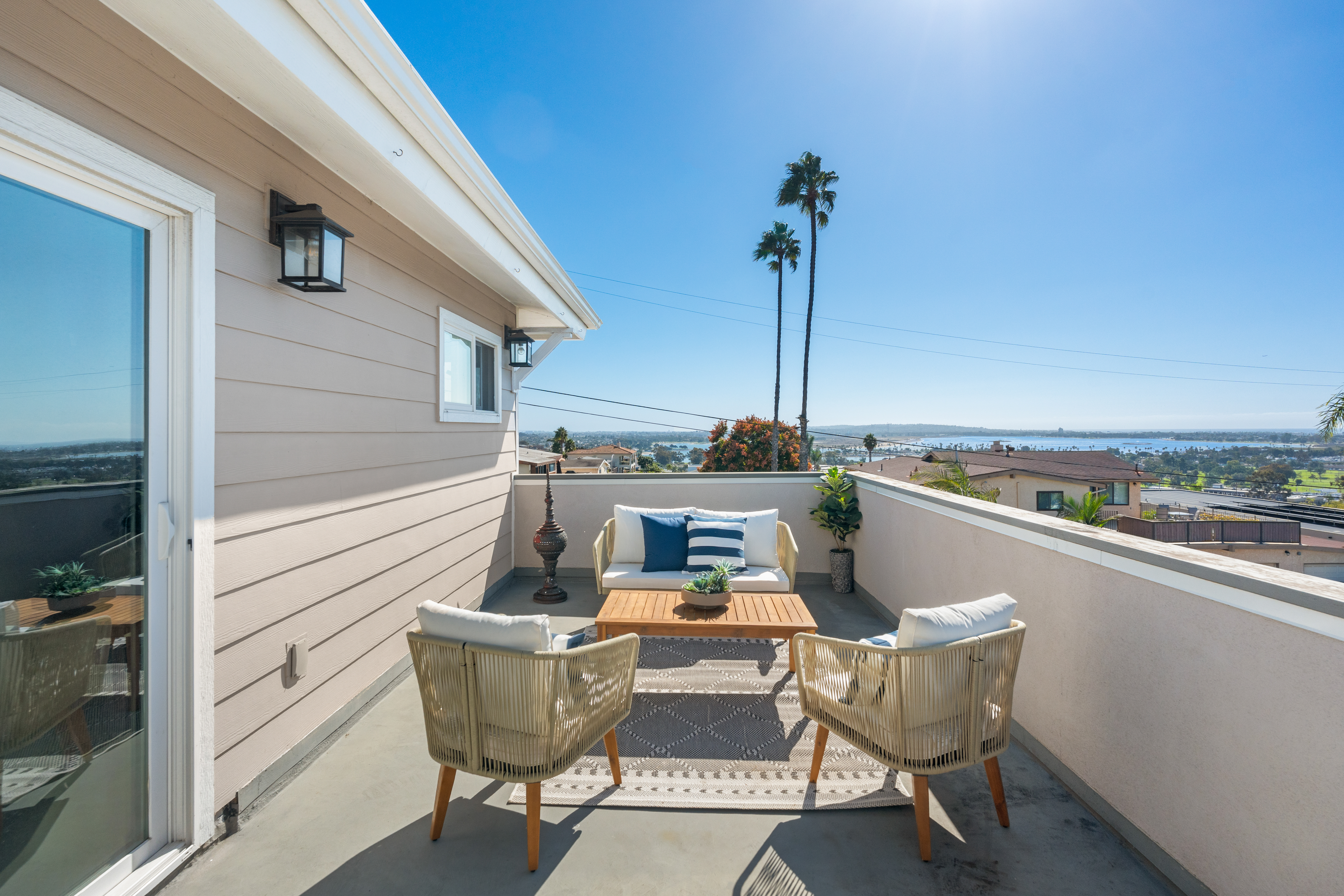 Sophisticated Contemporary Luxury Home with Panoramic Mission Bay & Ocean Views. Privately nestled in a premier hillside location overlooking Mission Bay and the Pacific, this fully remodeled 4-bedroom, 3-bath contemporary masterpiece embodies the essence of elevated coastal living. Thoughtfully designed and impeccably finished, this custom residence offers refined elegance, effortless functionality, and breathtaking views from nearly every room. An ideal family home, it features a beautifully designed family room set apart from the expansive open-concept living areas, which flow effortlessly through generous dining and entertaining spaces to a spacious outdoor patio. The exterior opens to a beautifully landscaped backyard, and built-in BBQ — perfect for stylish gatherings and relaxed coastal living. At the heart of the home is a stunning, sleek kitchen with a breakfast bar, designer finishes, and state-of-the-art appliances that elevate every detail. Retreat to the grand master suite, featuring a generous walk-in closet, luxurious en-suite bathroom, and a private deck capturing sweeping views of Mission Bay & the ocean beyond. A double lock-up garage with internal access, side driveway for additional parking, large front turf area & ample storage add convenience to this home’s modern luxury. The property also includes fully paid solar, providing energy efficiency and long-term savings without compromise. Spacious 9,979 Sqft lot. Ideally situated near schools, restaurants, coffee shops, and the beach. This private residence defines contemporary coastal living at its finest.