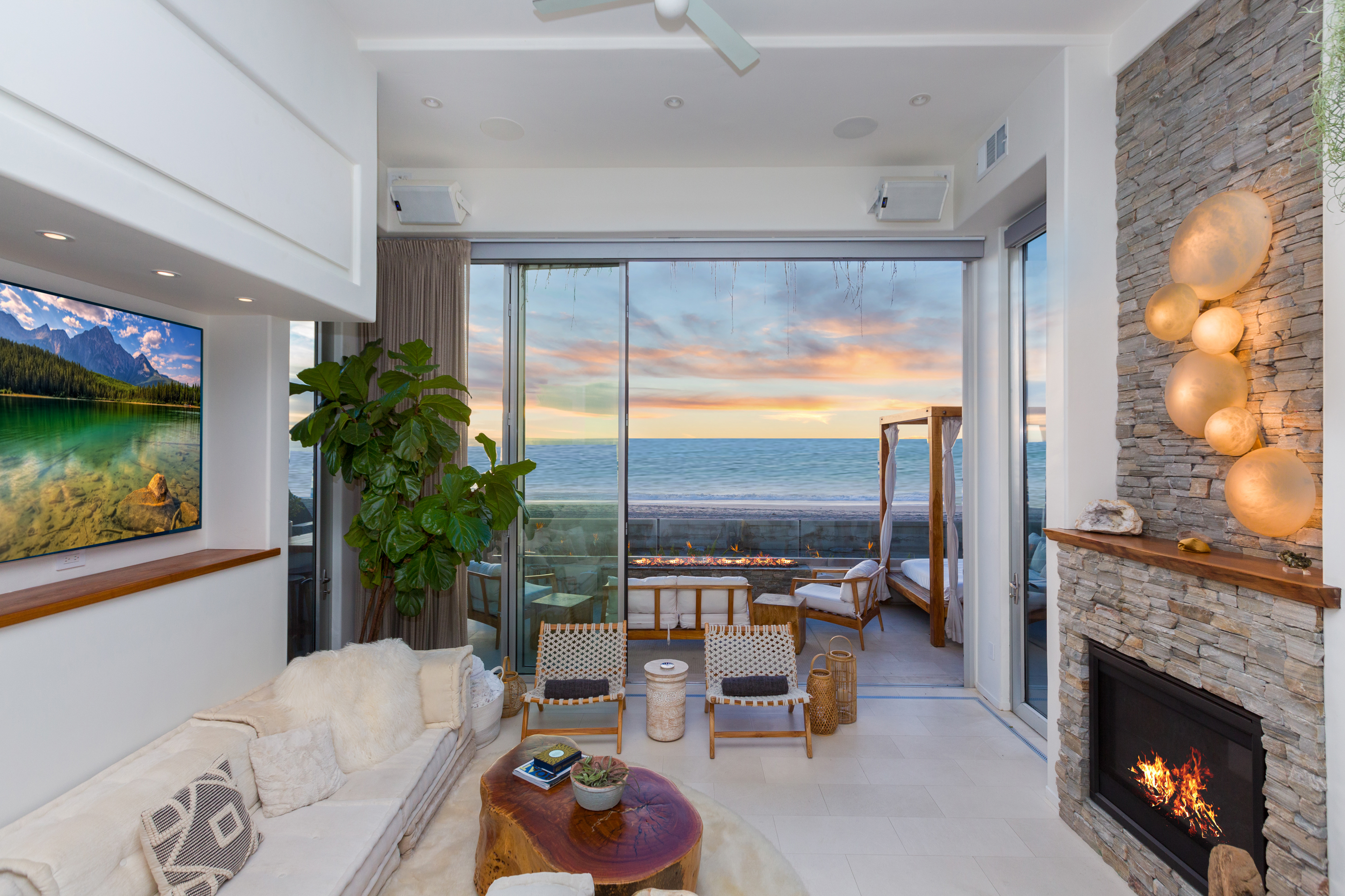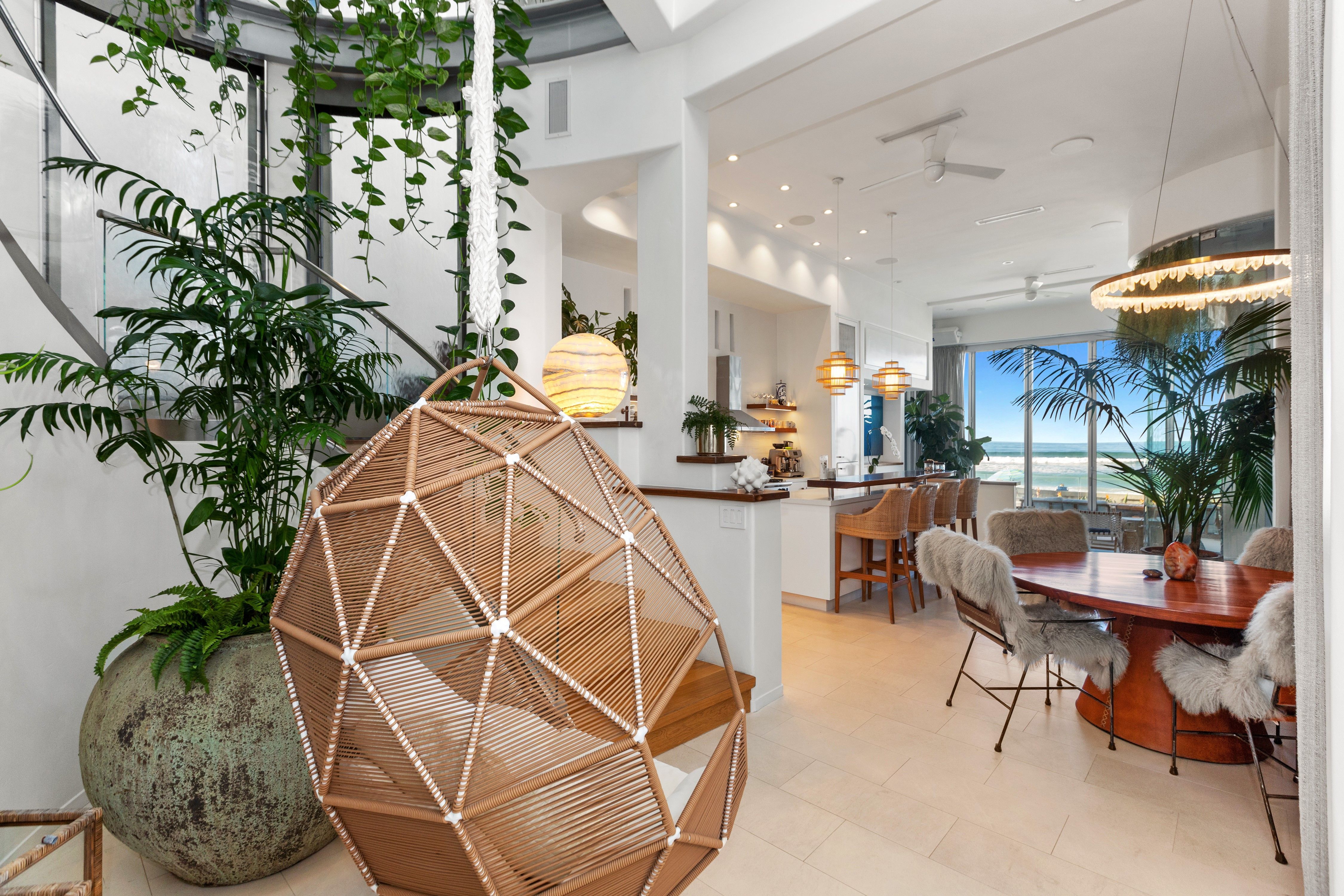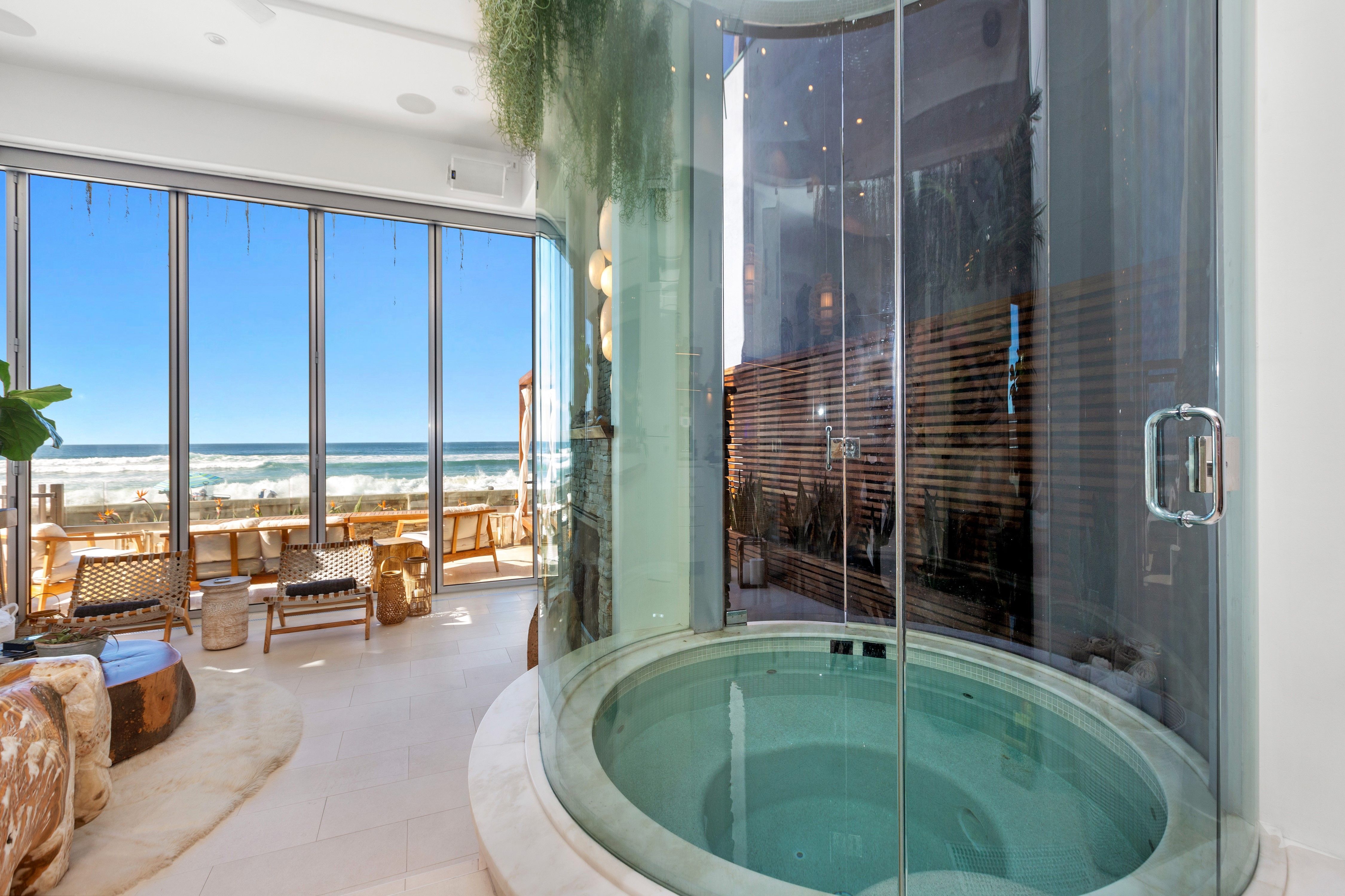 Superbly appointed and intimately customized this rare ocean front property is a unique opportunity to live the Southern California lifestyle in elegance and style. Completely remodeled to blend seamlessly with sand, sky and sea, it evokes tranquility and luxury without sacrificing direct access to some of the world’s most stunning beaches. An open concept kitchen and living area featuring an indoor spa open seamlessly to your own boardwalk patio, and an endless stretch of golden sand and clear blue water. Featuring elegant design by Alexandra Angle and custom furniture by Peter Hansen, every space is crafted for both comfort and aesthetic appeal. The primary suite opens to a balcony directly above the iconic Mission Beach boardwalk, balancing excitement with privacy and showcasing breathtaking sunsets year-round. Every detail was considered and no expense was spared to create a whole home integrated system of controls for ease and comfort. Featuring Miele appliances, Wolf stove, Sonos sound system, a Lutron light and shade system, individual Nest thermostats in every room, EV charging and a hardwired alarm and camera system to provide peace of mind. As you enter the main living area, an incredible array of plants hang directly through the middle of a transparent staircase and an indoor window water feature transport you to a tropical paradise. A transformed bedroom now features a full working bar, and up to 12 person home theatre perfect for entertaining or relaxing. Whether you're biking, surfing, or simply enjoying a sunset barbecue with loved ones, this property presents an unparalleled opportunity to directly experience a piece of California's treasured beachside living.