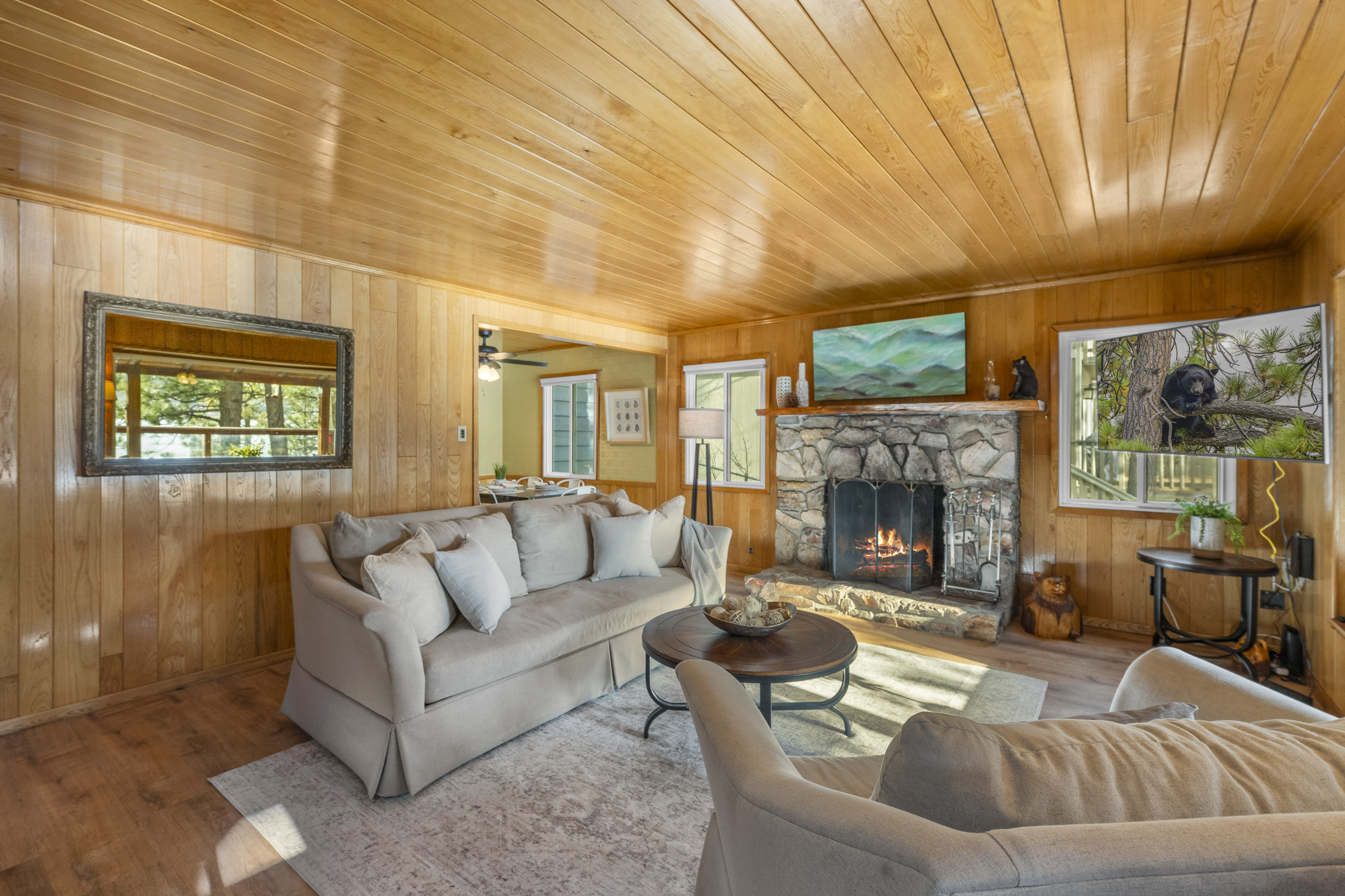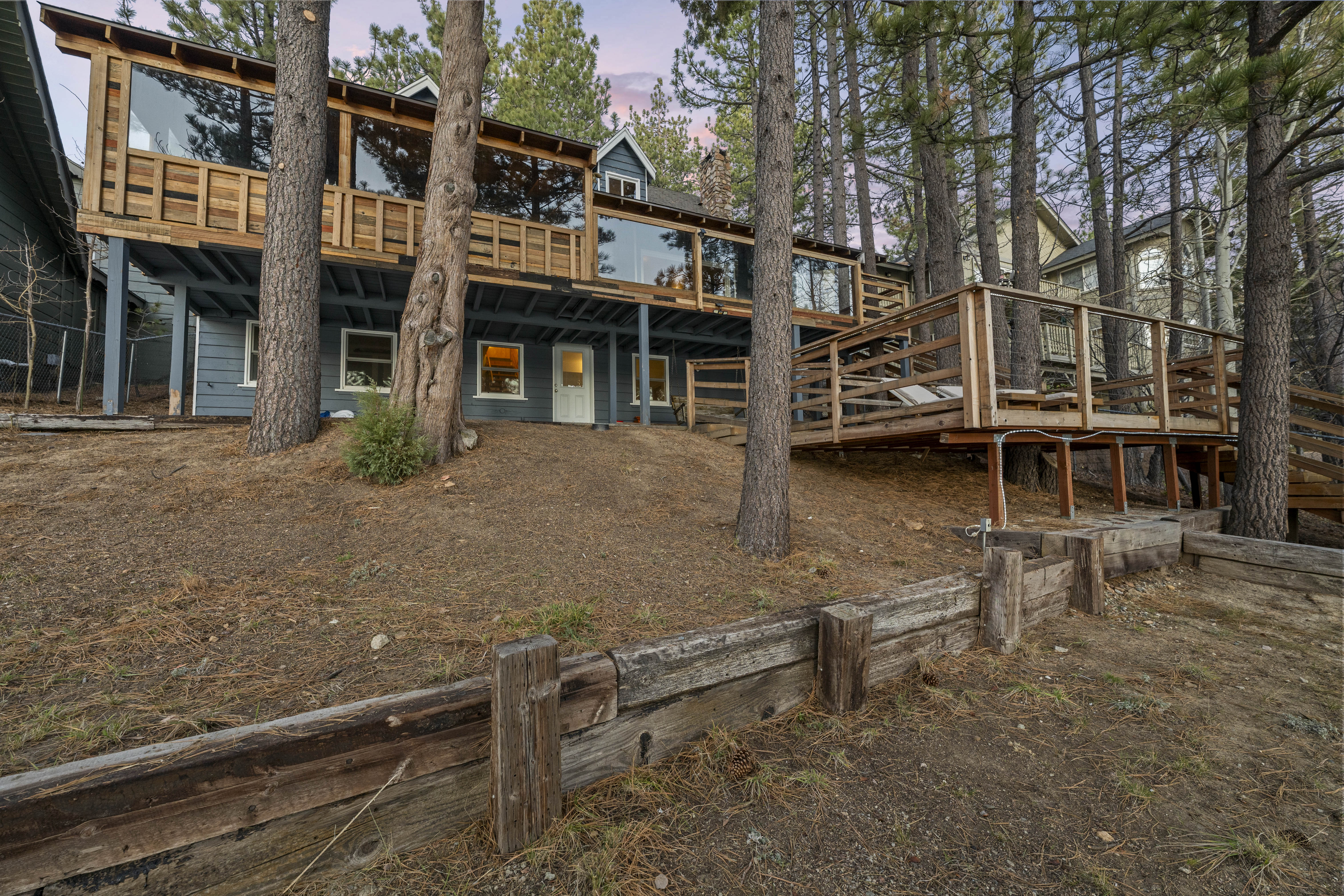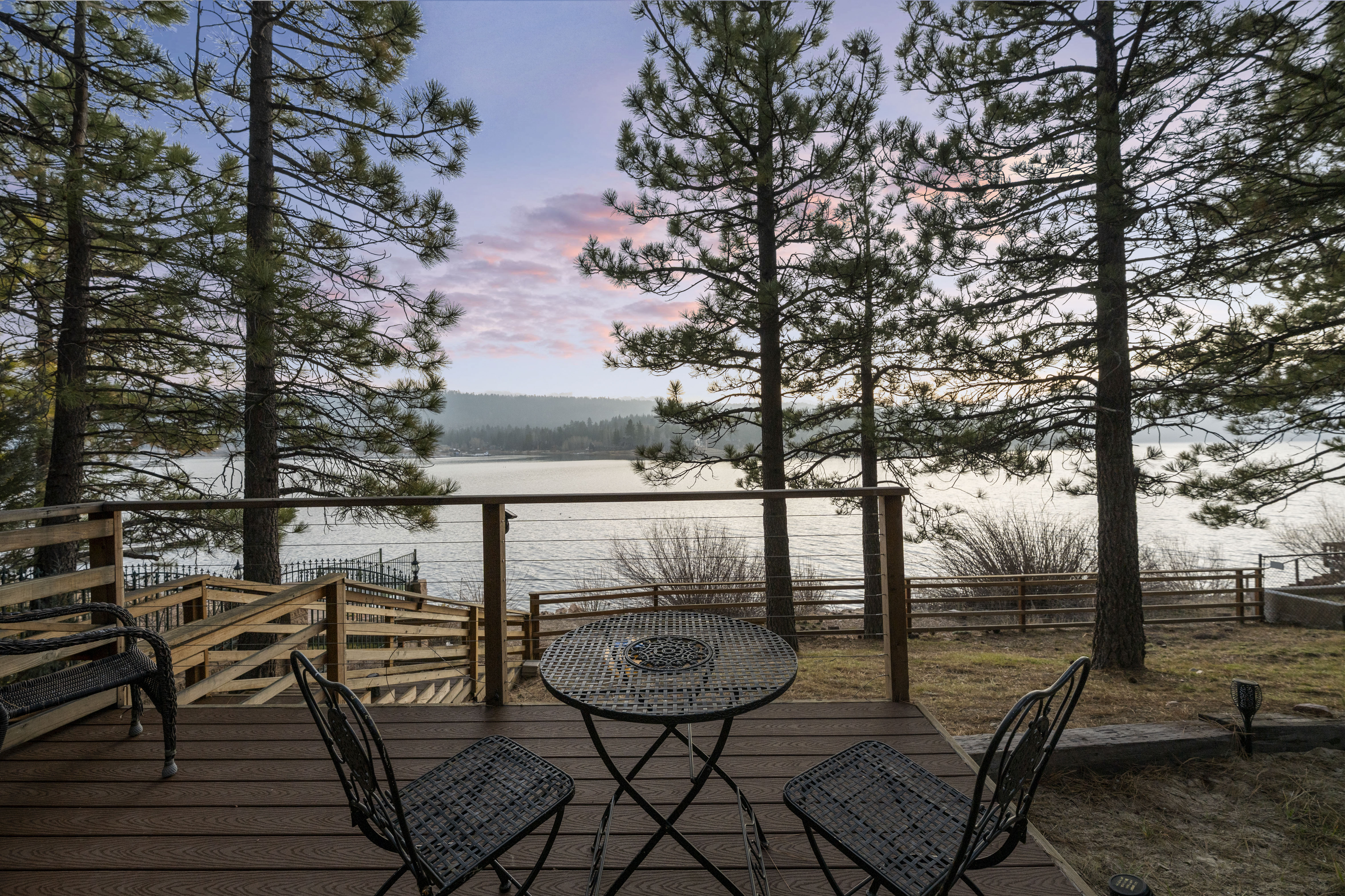 Rare Gilner Point Gem - Expansive 4BR/2BA Lakeside Retreat! Discover the ultimate mountain escape and privacy on Lake Drive - perfectly located with 60 feet of prime lake frontage in the exclusive Gilner Point peninsula community of Big Bear Lake. This 2,170 SF home blends classic 1950s lakefront charm on a large wooded lot featuring 4 bedrooms and 2 bathrooms - making it a premier choice for a multi-family getaway and a highly desirable income property. It is time for a new owner to create your own lasting memories. Step inside to a welcoming living space centered around a warm fireplace, perfect for chilly mountain evenings and large windows frame the lake views. The primary bedroom, conveniently located on the main level, offers a serene sanctuary overlooking the lake. Upstairs, you'll find two additional bedrooms and another guest bathroom, each exuding its own unique charm and boasting lake views. Step outside on the expansive sprawling outdoor deck surrounded by mature pine trees overlooking the lake with ample space for outdoor entertaining - relax, dine and enjoy the natural beauty all around you. The three-story design includes a 520 SF lower floor with room for a ping pong and pool table with additional storage and direct access to a second deck in the wooded backyard. Lastly, a large 2-car attached garage for year-round convenience. This lakefront retreat is ready to be enjoyed by a new owner on one of Big Bear Lake's most sought after stretches of shoreline. Whether you're seeking a tranquil escape - enjoy summer days on the lake or an outdoor adventure hiking the mountains and winter at the nearby ski slopes - this property puts you in the heart of it all. Just a short drive to the shops, dining, and festivals of Big Bear Village, this is your chance to own a piece of Southern California's favorite four-season destination. Whether you're seeking a tranquil escape or an outdoor adventure, this exceptional property offers the perfect blend of lakefront serenity, and outdoor recreation.