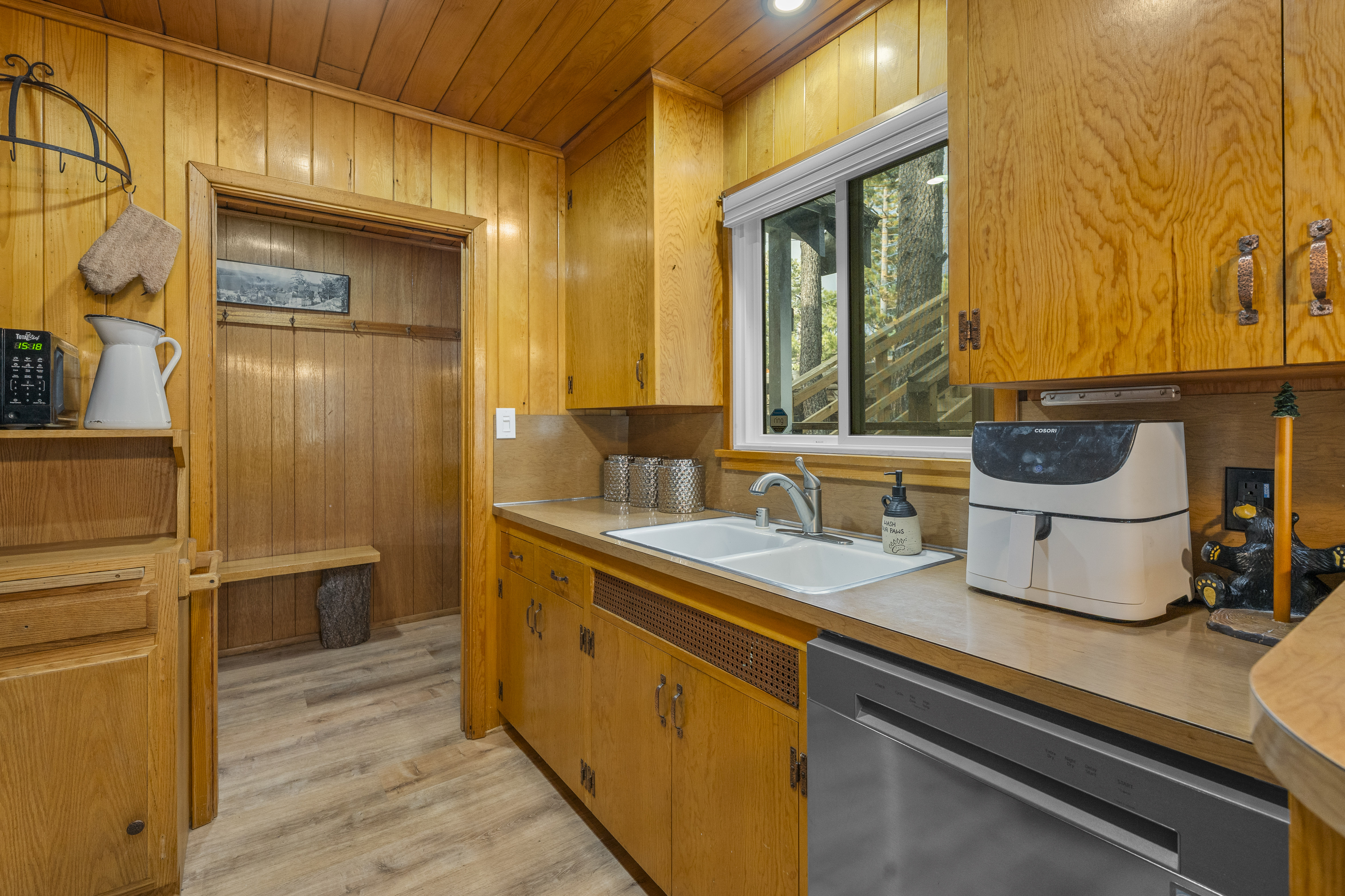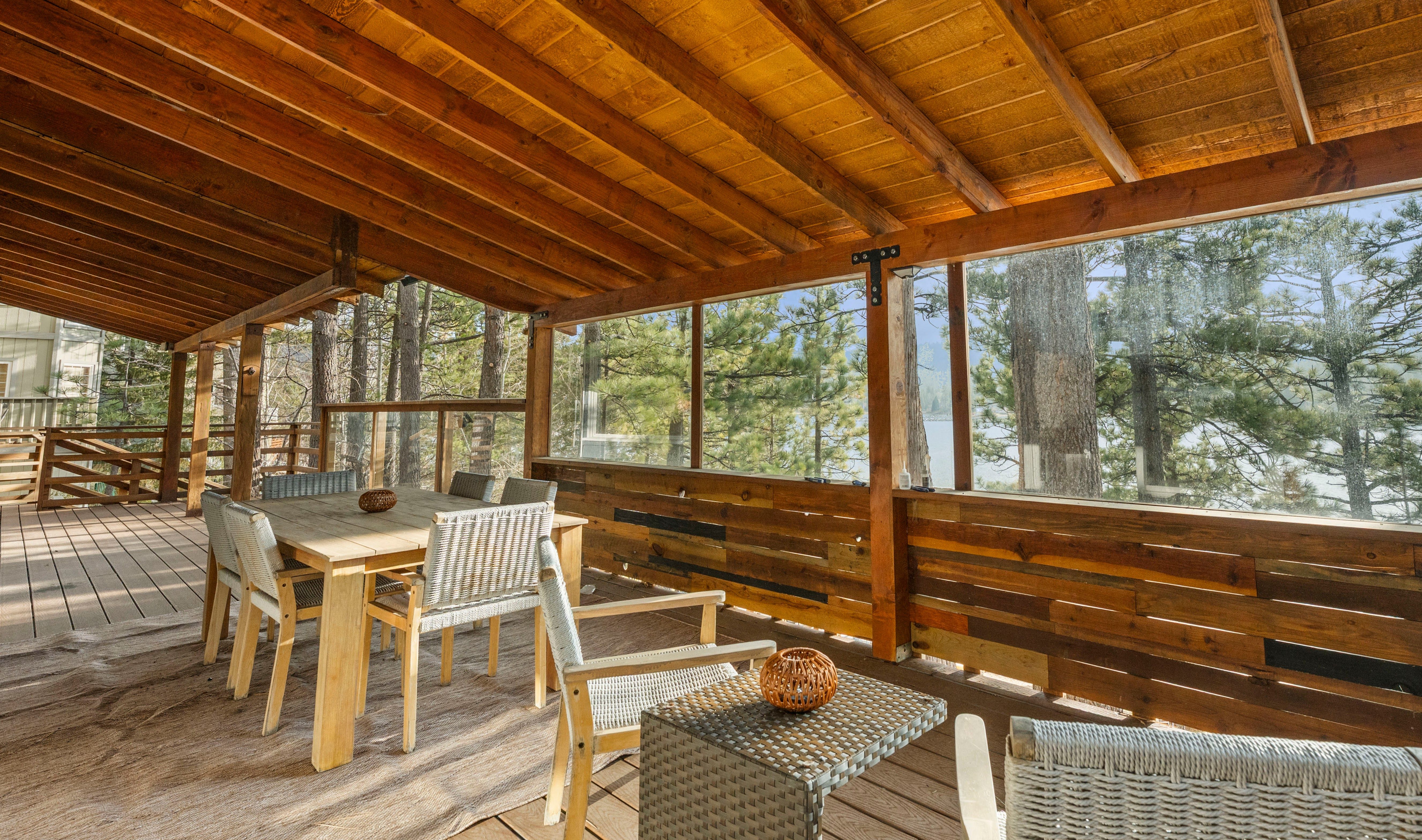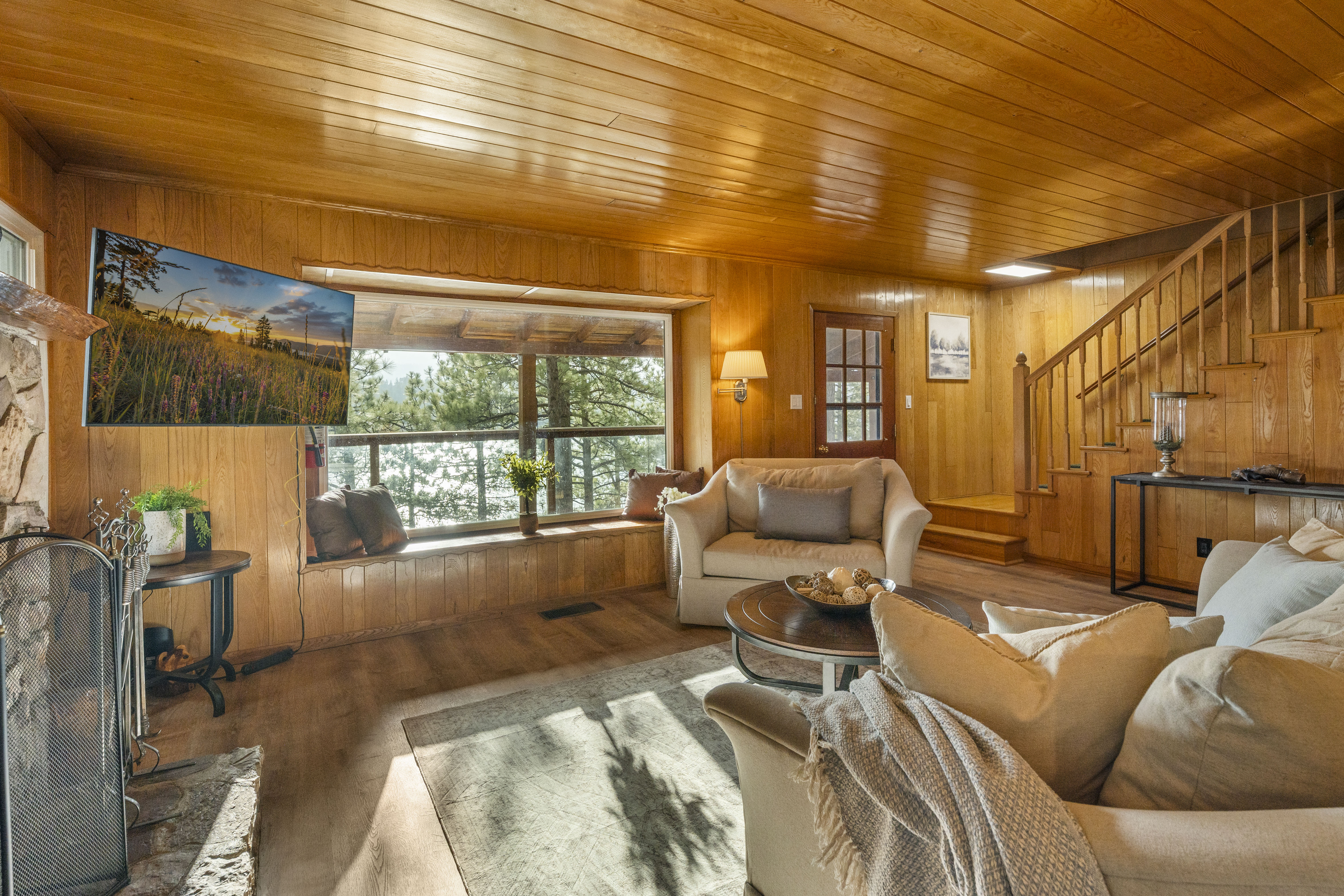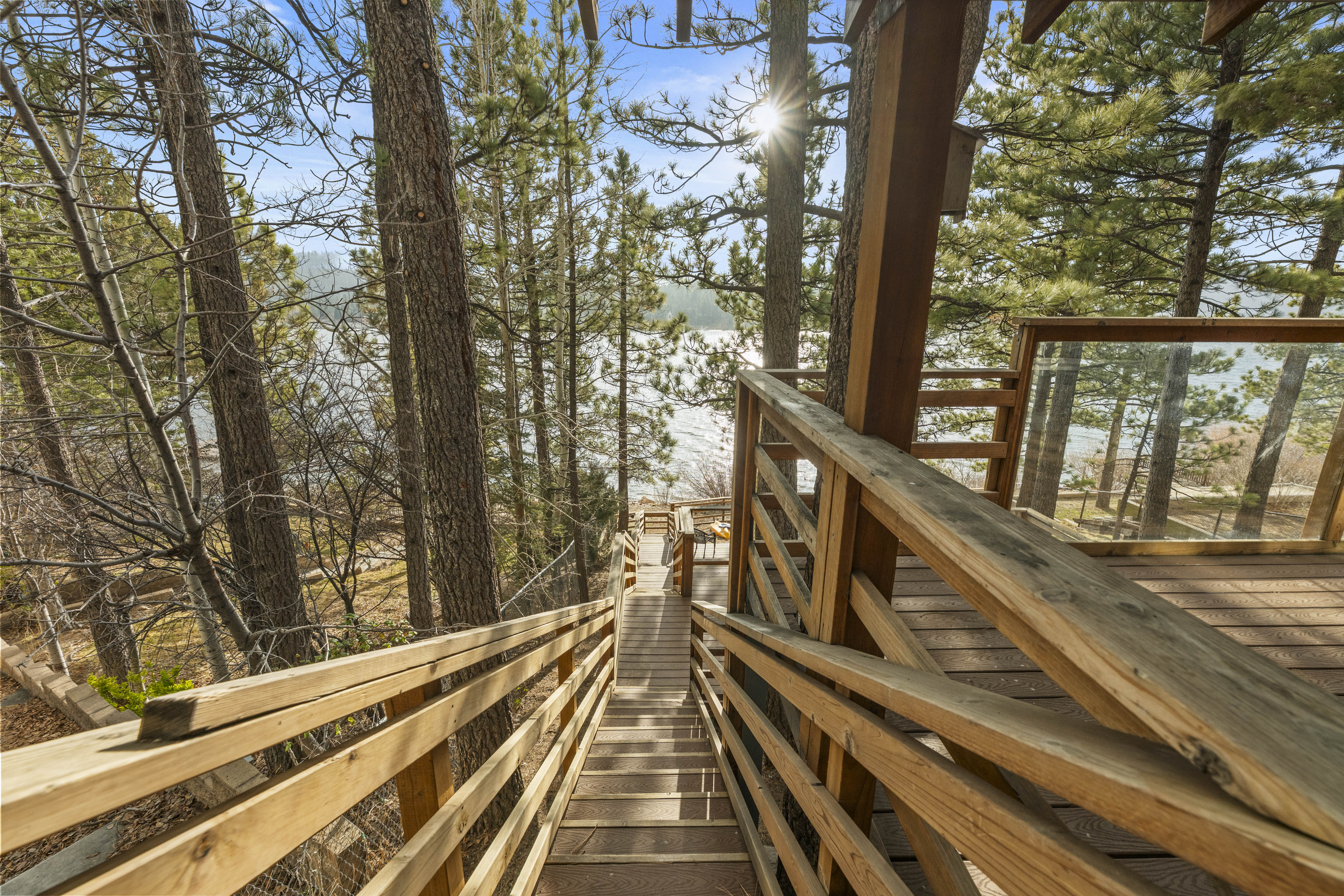 Rare Gilner Point Gem - Expansive 4BR/2BA Lakeside Retreat! Discover the ultimate mountain escape and privacy on Lake Drive - perfectly located with 60 feet of prime lake frontage in the exclusive Gilner Point peninsula community of Big Bear Lake. This 2,170 SF home blends classic 1950s lakefront charm on a large wooded lot featuring 4 bedrooms and 2 bathrooms - making it a premier choice for a multi-family getaway and a highly desirable income property. It is time for a new owner to create your own lasting memories. Step inside to a welcoming living space centered around a warm fireplace, perfect for chilly mountain evenings and large windows frame the lake views. The primary bedroom, conveniently located on the main level, offers a serene sanctuary overlooking the lake. Upstairs, you'll find two additional bedrooms and another guest bathroom, each exuding its own unique charm and boasting lake views. Step outside on the expansive sprawling outdoor deck surrounded by mature pine trees overlooking the lake with ample space for outdoor entertaining - relax, dine and enjoy the natural beauty all around you. The three-story design includes a 520 SF lower floor with room for a ping pong and pool table with additional storage and direct access to a second deck in the wooded backyard. Lastly, a large 2-car attached garage for year-round convenience. This lakefront retreat is ready to be enjoyed by a new owner on one of Big Bear Lake's most sought after stretches of shoreline. Whether you're seeking a tranquil escape - enjoy summer days on the lake or an outdoor adventure hiking the mountains and winter at the nearby ski slopes - this property puts you in the heart of it all. Just a short drive to the shops, dining, and festivals of Big Bear Village, this is your chance to own a piece of Southern California's favorite four-season destination. Whether you're seeking a tranquil escape or an outdoor adventure, this exceptional property offers the perfect blend of lakefront serenity, and outdoor recreation.