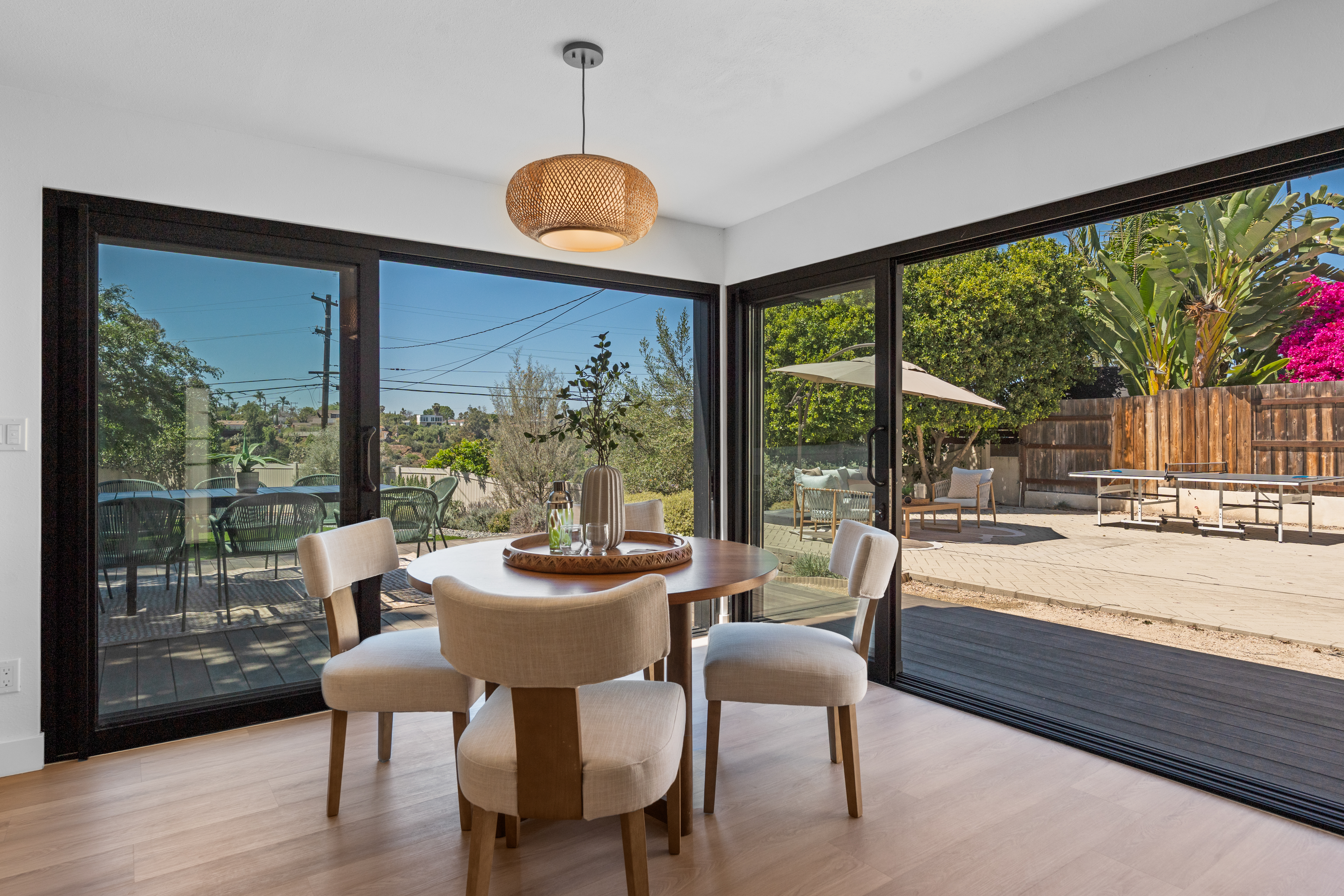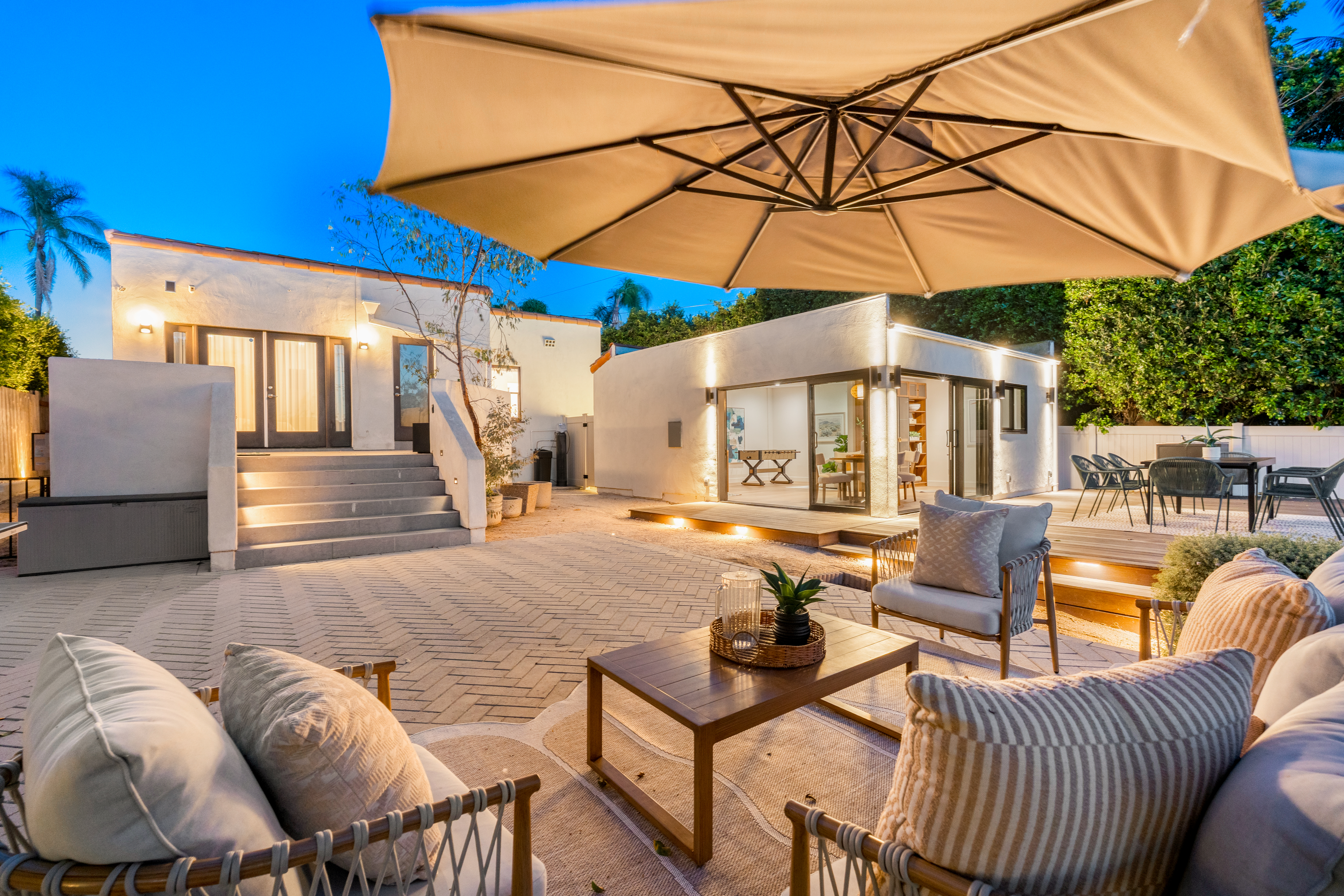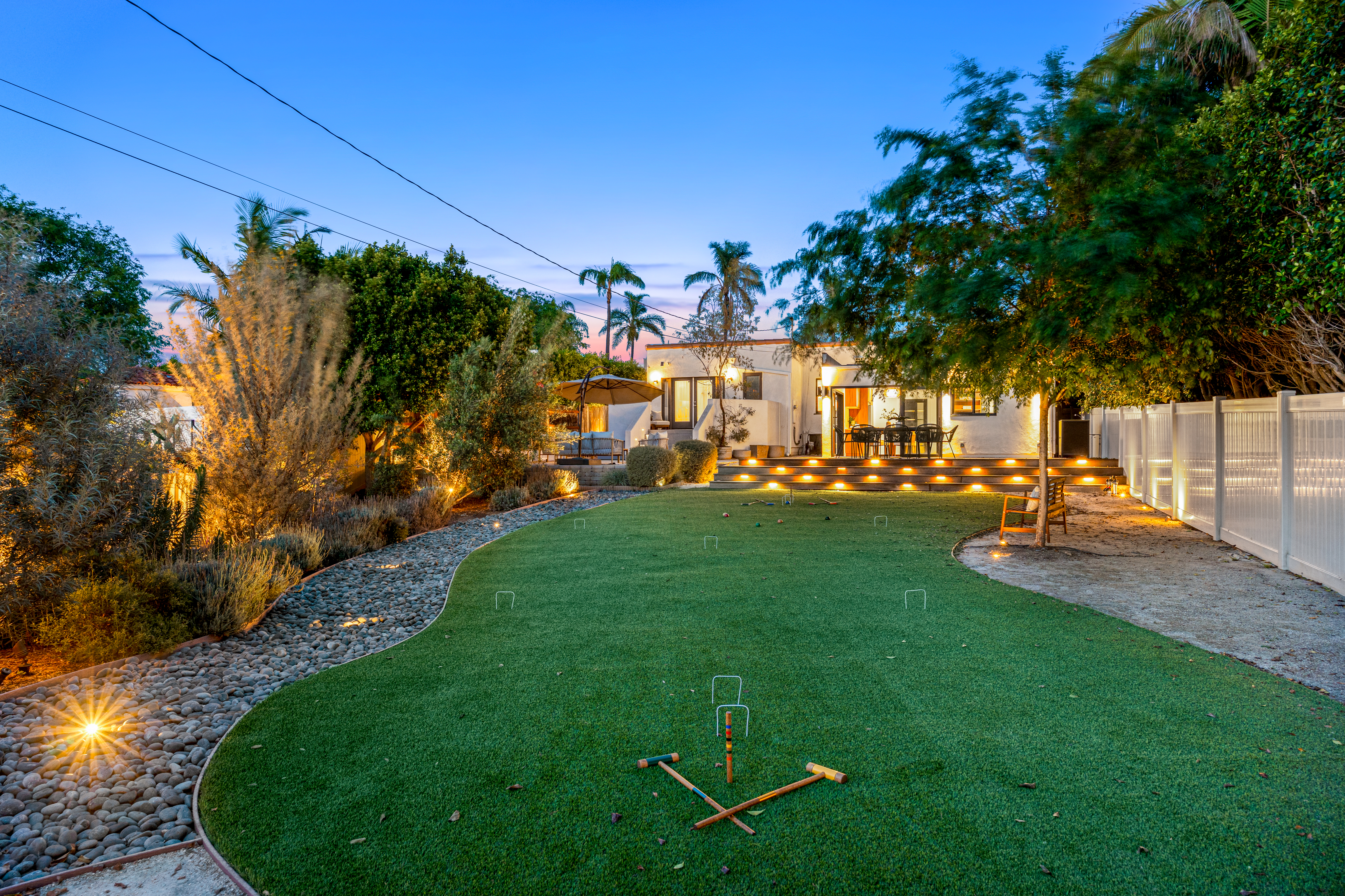 Nestled within the idyllic enclave of Kensington, a charming neighborhood in San Diego known for its distinct village atmosphere, this beautifully restored 1937 Spanish residence blends timeless architectural character with refined modern living. Situated on an expansive 15,000+ square-foot lot, the single-level home offers approximately 1,554 square feet, featuring three bedrooms and three elegantly renovated bathrooms, all thoughtfully updated while preserving the home’s classic Spanish charm. The home has been meticulously renovated throughout and features a stunning open kitchen with premium Thermador appliances, including a wine refrigerator and refrigerator drawers deal for effortless entertaining. The kitchen flows seamlessly into the dining and living areas, where a welcoming gas fireplace creates a warm gathering space. Extensive upgrades include beautifully remodeled baths with designer tile and fixtures, updated plumbing and electrical, water softener system, EV charger, and an electric driveway gate. Outdoors, the property transforms into a private retreat with three inviting backyard decks, a fully fenced yard, and low-maintenance landscaping enhanced by dramatic exterior lighting. A converted garage studio with a dry kitchen opens through sliding doors to a beautiful Balau wood deck, creating exceptional indoor-outdoor living. Just moments away, Kensington’s vibrant village offers cafés, restaurants, boutiques, markets, dog park, children's playground, banking, salons, and a village library.