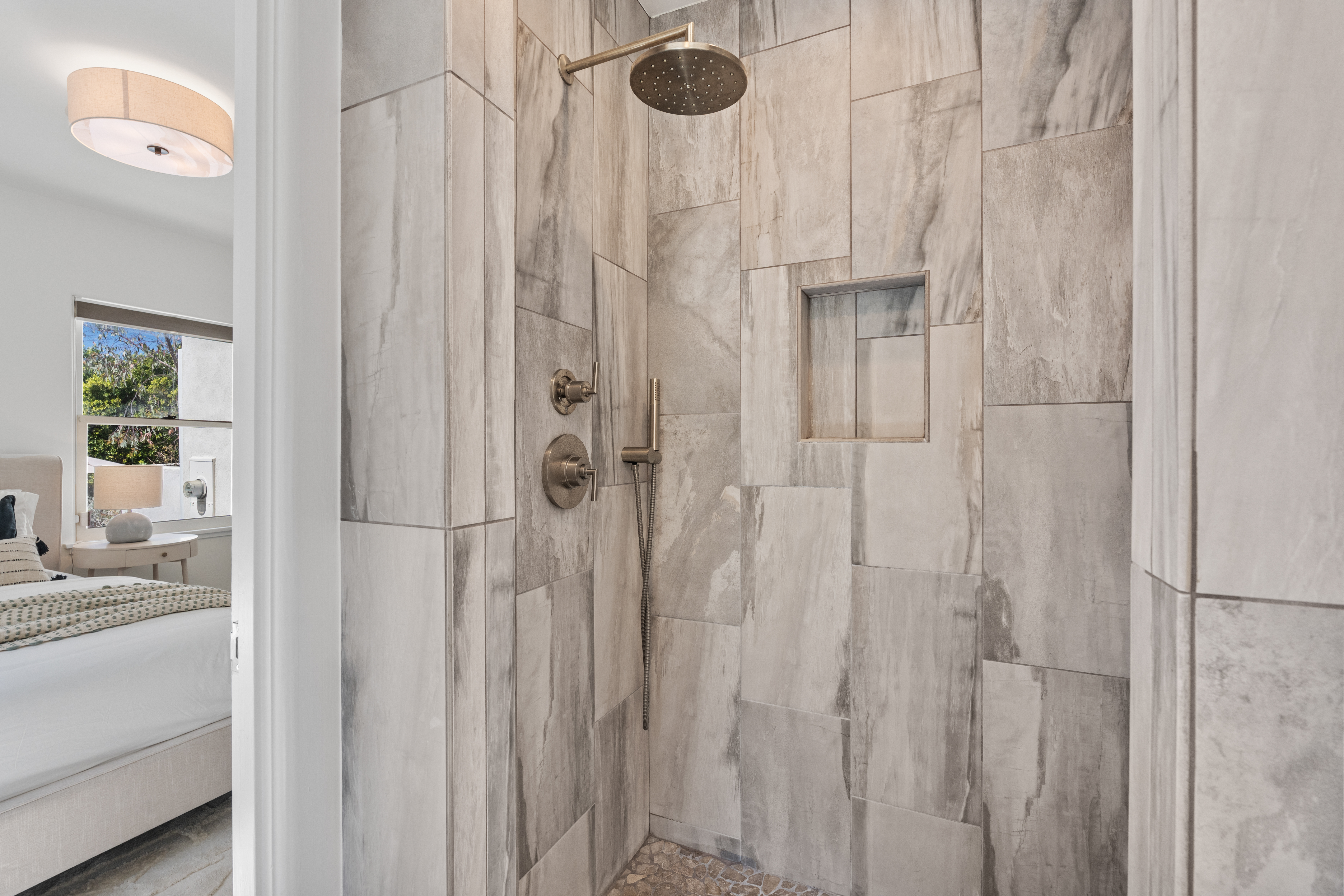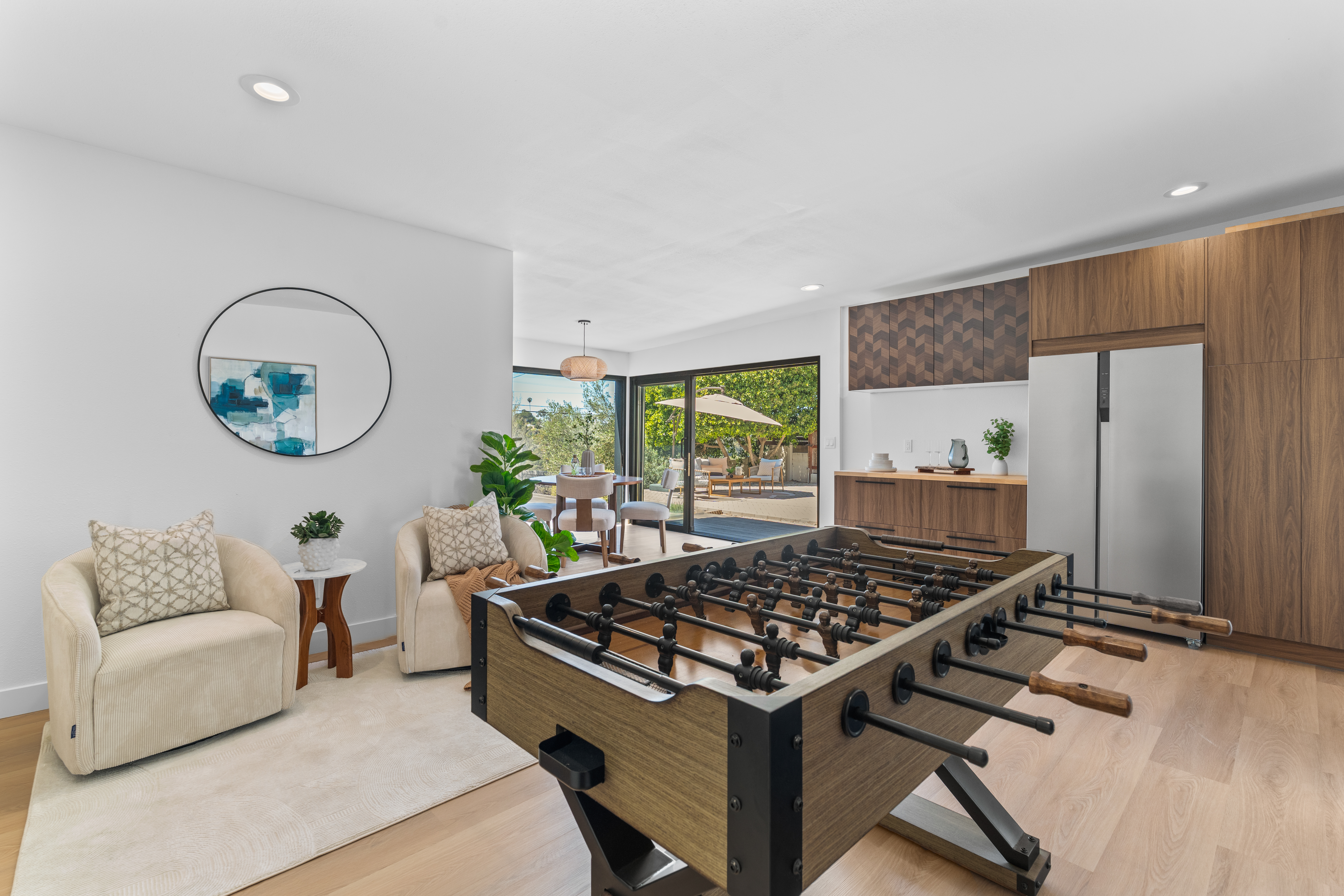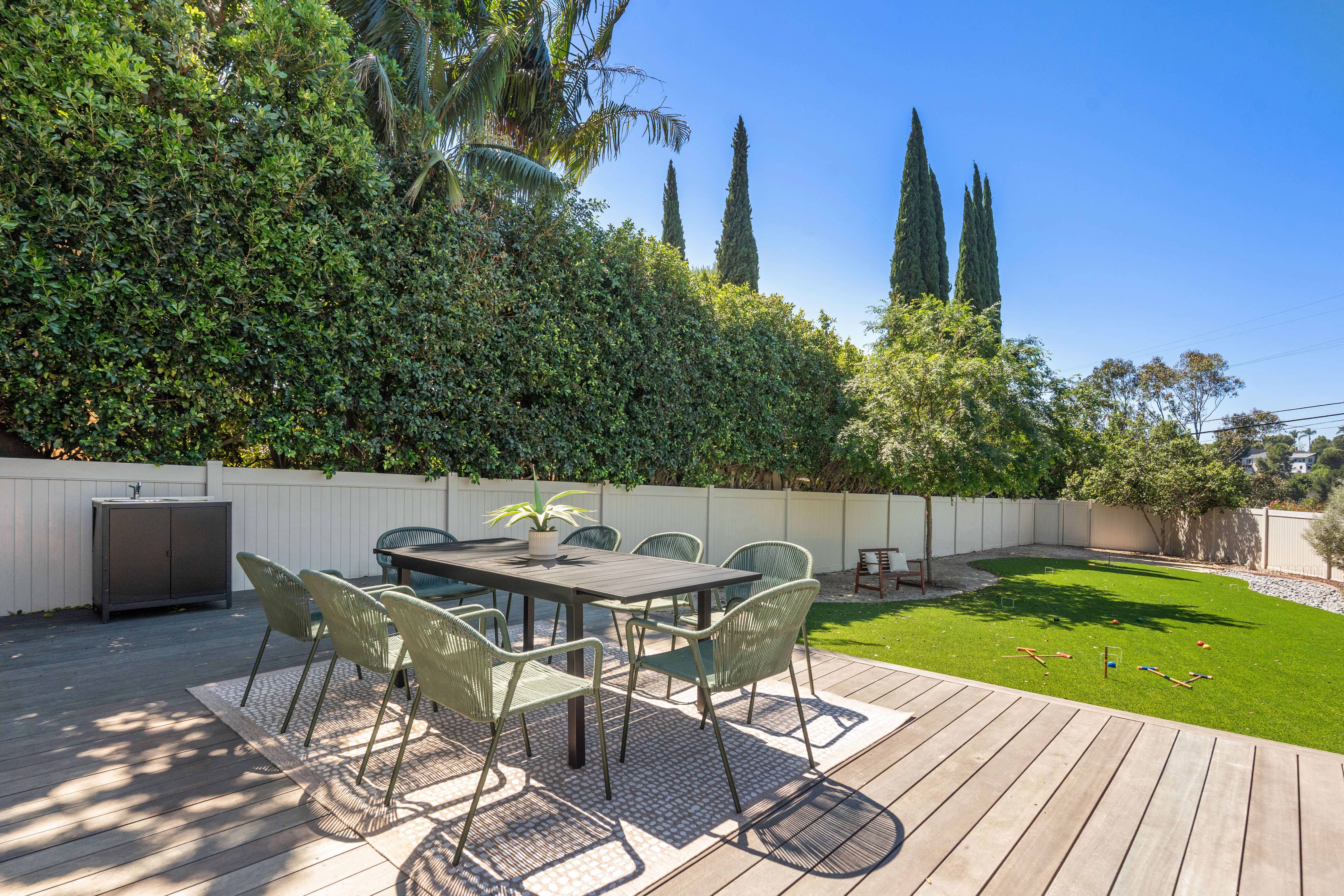 Nestled within the idyllic enclave of Kensington, a charming neighborhood in San Diego known for its distinct village atmosphere, this beautifully restored 1937 Spanish residence blends timeless architectural character with refined modern living. Situated on an expansive 15,000+ square-foot lot, the single-level home offers approximately 1,554 square feet, featuring three bedrooms and three elegantly renovated bathrooms, all thoughtfully updated while preserving the home’s classic Spanish charm. The home has been meticulously renovated throughout and features a stunning open kitchen with premium Thermador appliances, including a wine refrigerator and refrigerator drawers deal for effortless entertaining. The kitchen flows seamlessly into the dining and living areas, where a welcoming gas fireplace creates a warm gathering space. Extensive upgrades include beautifully remodeled baths with designer tile and fixtures, updated plumbing and electrical, water softener system, EV charger, and an electric driveway gate. Outdoors, the property transforms into a private retreat with three inviting backyard decks, a fully fenced yard, and low-maintenance landscaping enhanced by dramatic exterior lighting. A converted garage studio with a dry kitchen opens through sliding doors to a beautiful Balau wood deck, creating exceptional indoor-outdoor living. Just moments away, Kensington’s vibrant village offers cafés, restaurants, boutiques, markets, dog park, children's playground, banking, salons, and a village library.