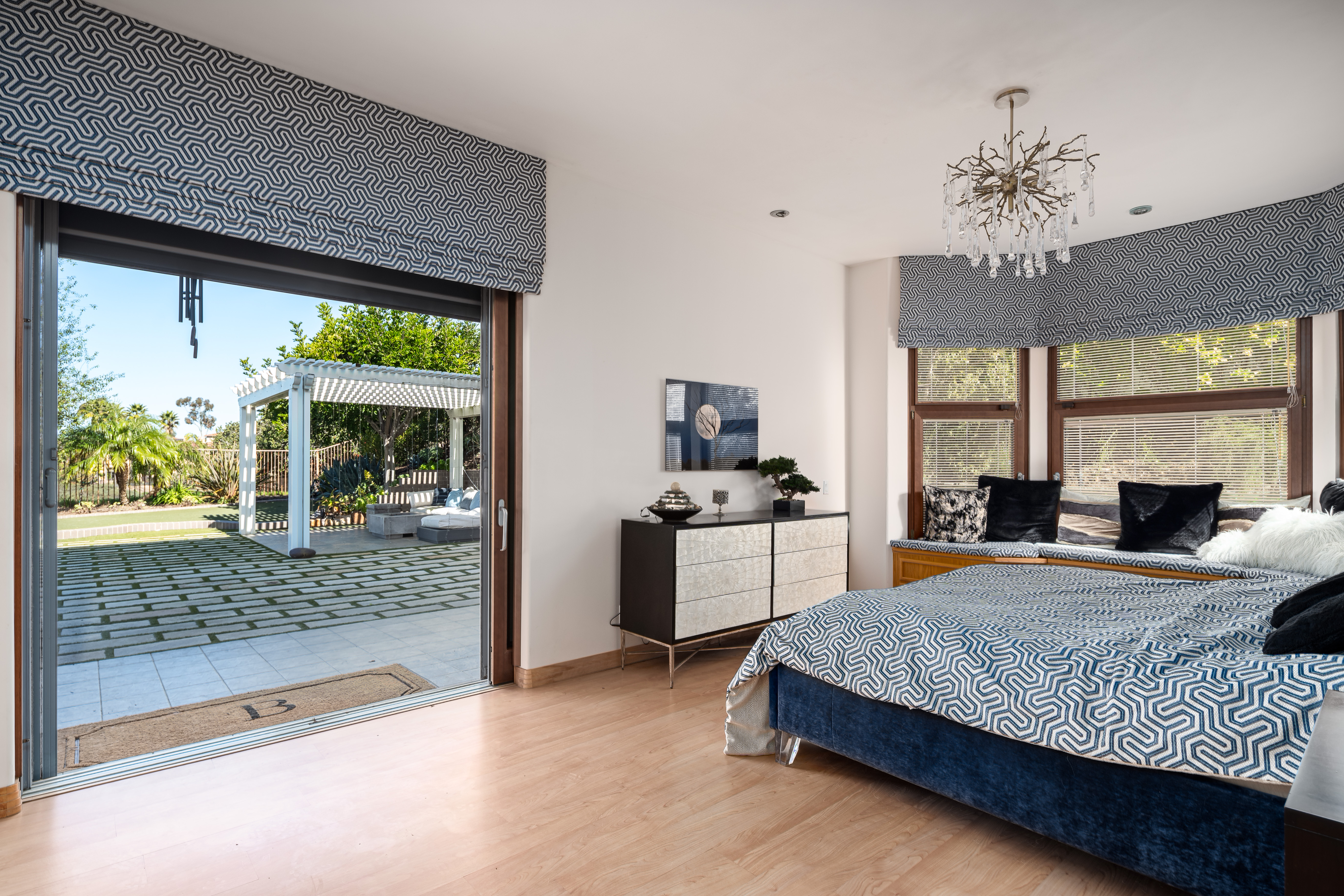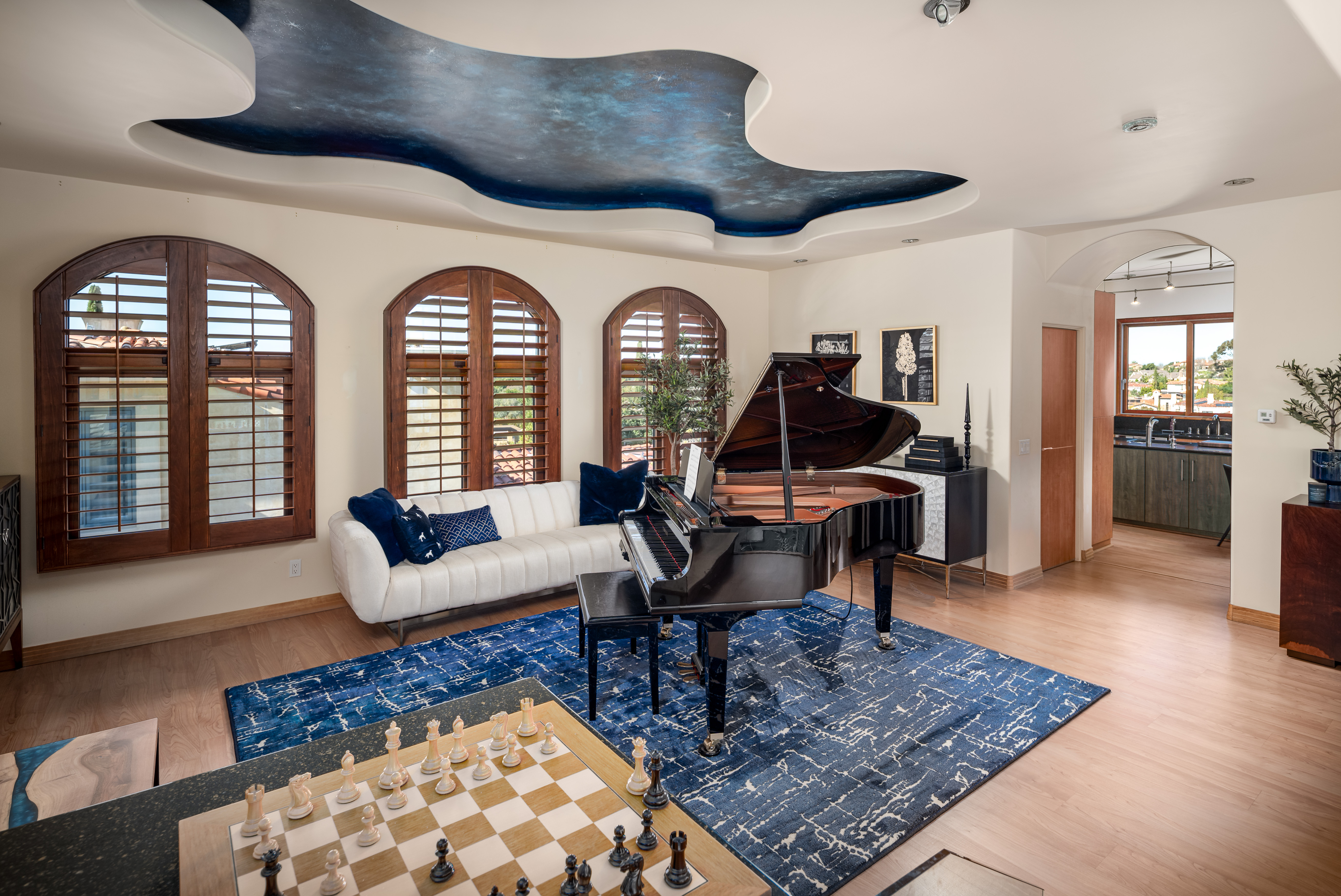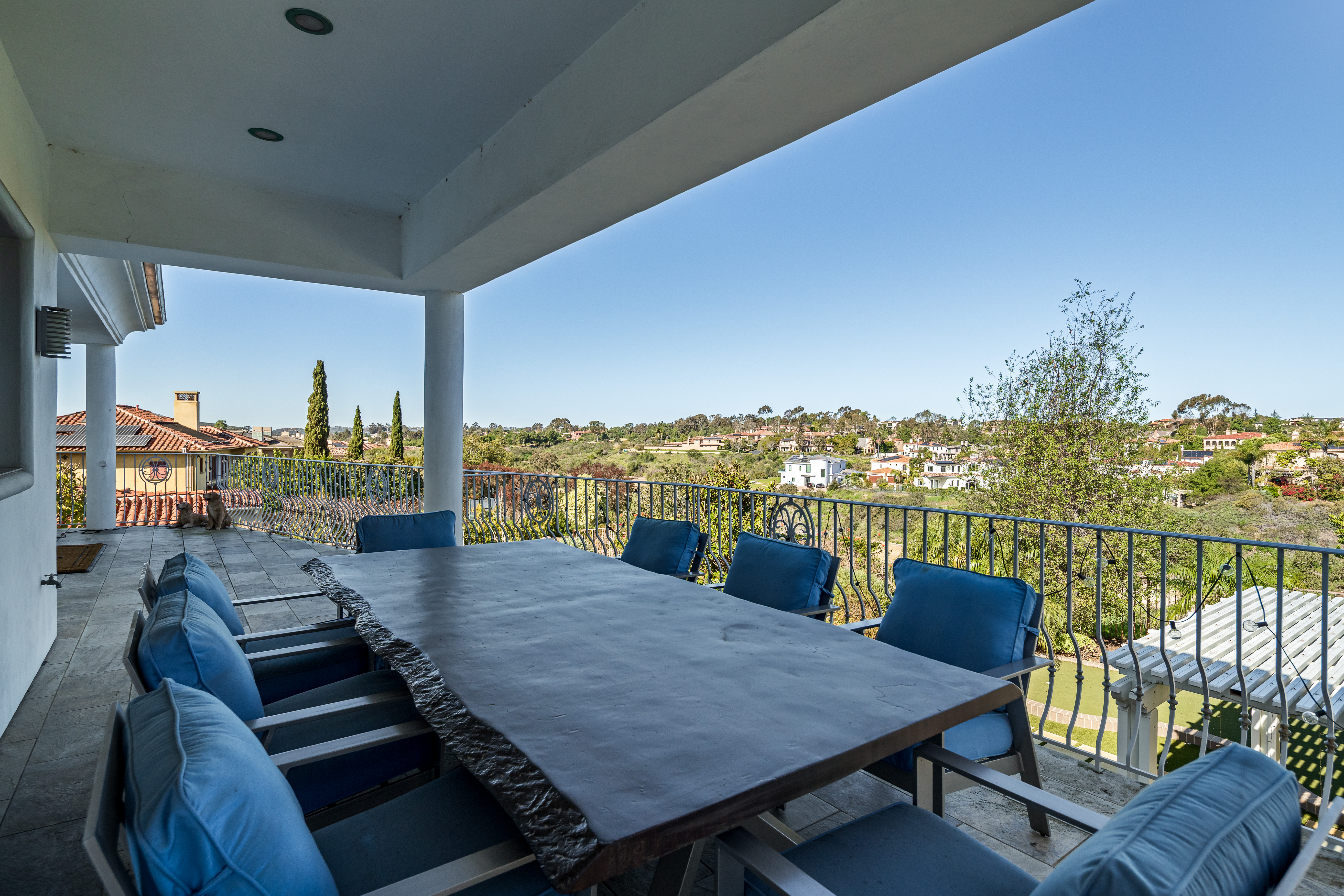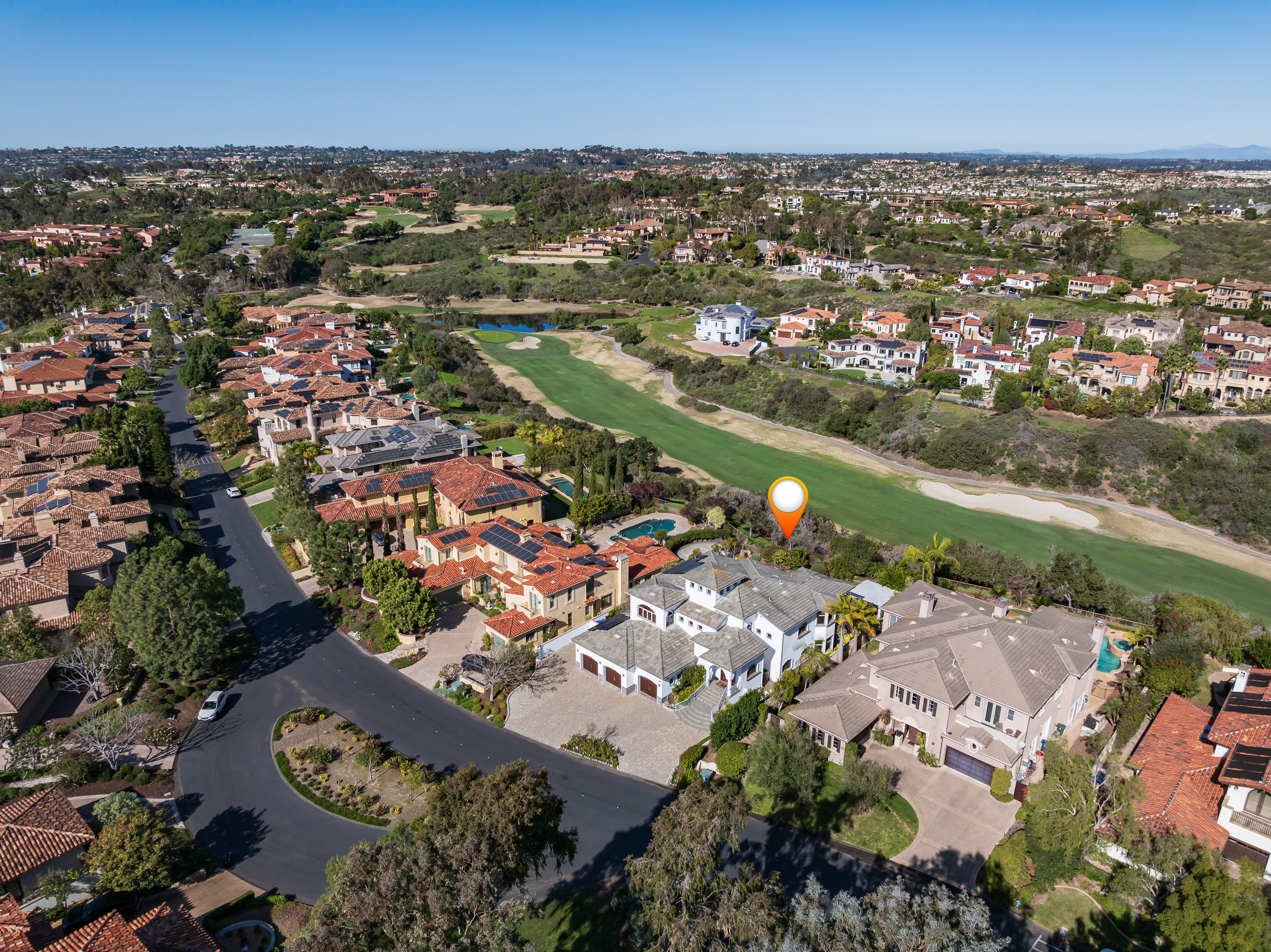 Stunning custom contemporary residence ideally located in the coveted East Gate of Meadows Del Mar, overlooking the 16th hole of the renowned Tom Fazio–designed Grand Del Mar golf course. This exceptional home offers a rare combination of architectural sophistication, privacy, and resort-style living within one of North County’s most prestigious gated communities. A dramatic atrium welcomes you into a thoughtfully designed open floor plan, with the kitchen, living room, art/yoga studio, office and dining areas positioned on the top level to maximize breathtaking golf course and resort views. Seamless indoor-outdoor living flows to the expansive entertainment deck—perfect for hosting or relaxing while taking in the serene surroundings. The primary suite is privately situated on the first floor and features a sitting area that opens to a beautifully manicured backyard. Enjoy lounging in the cabana, practicing your putting or unwinding to the sound of the tranquil waterfall amid mature fruit trees and lush landscaping. Impressive attention to detail and extensive upgrades throughout. This is a truly unique opportunity to own a custom masterpiece in Meadows Del Mar, moments from the Fairmont Grand Del Mar resort, championship golf, and world-class amenities. Owned solar. Koi pond. Fruit trees include: pomegranate, apple, lemon, apricot, fig, passion fruit, blackberry. Ideal location being close to all major freeways, shopping and beautiful San Diego beaches.