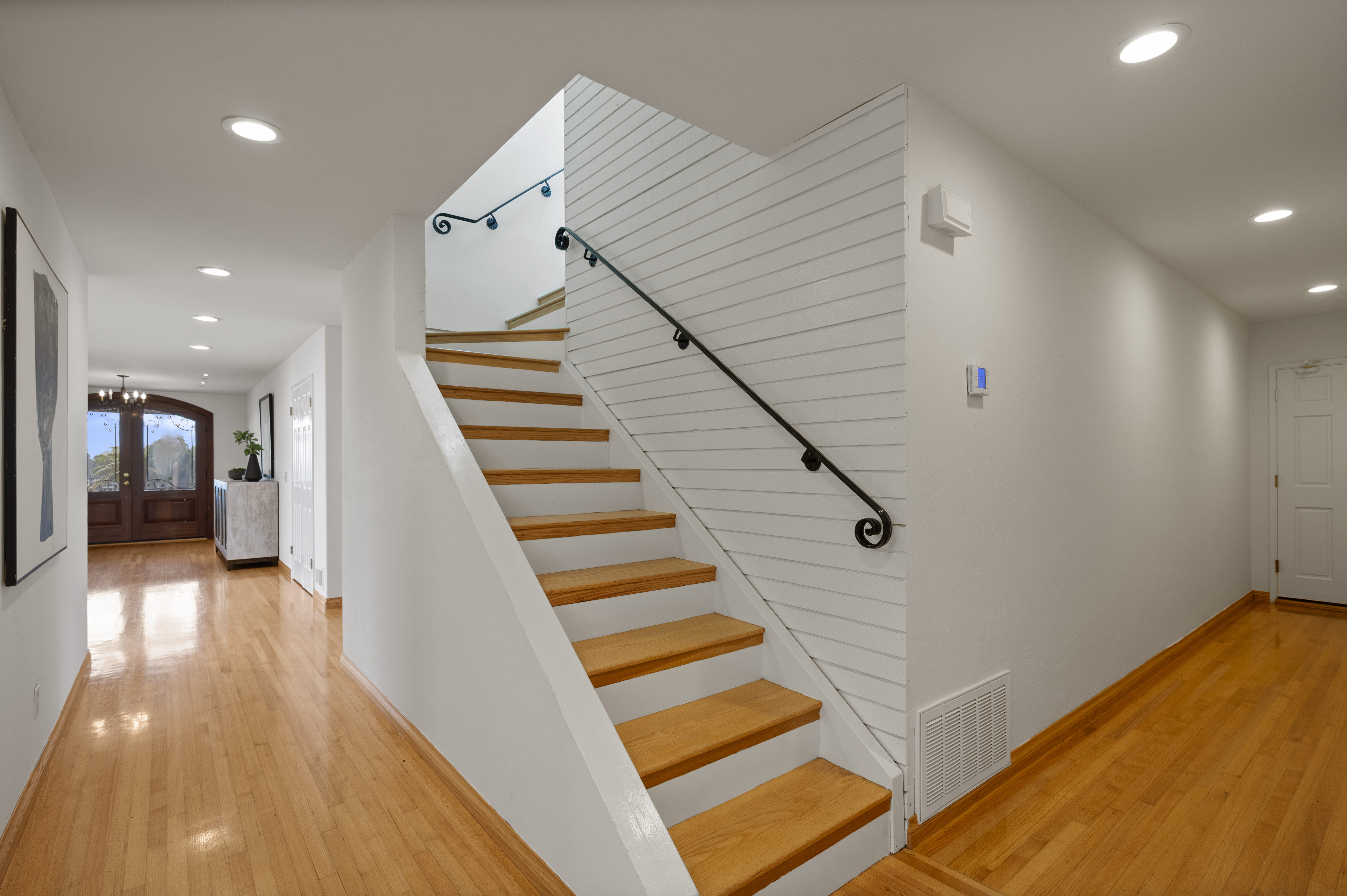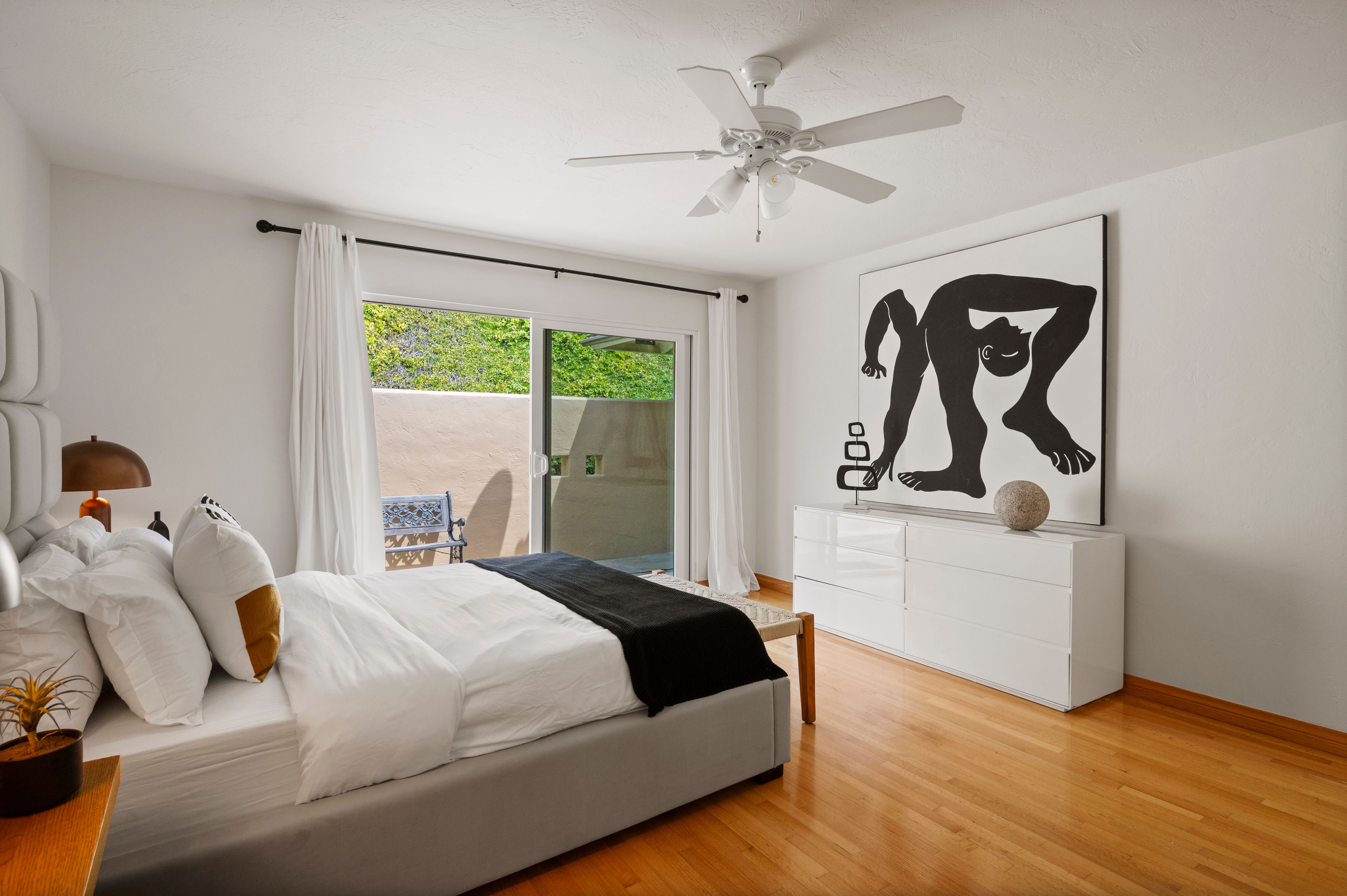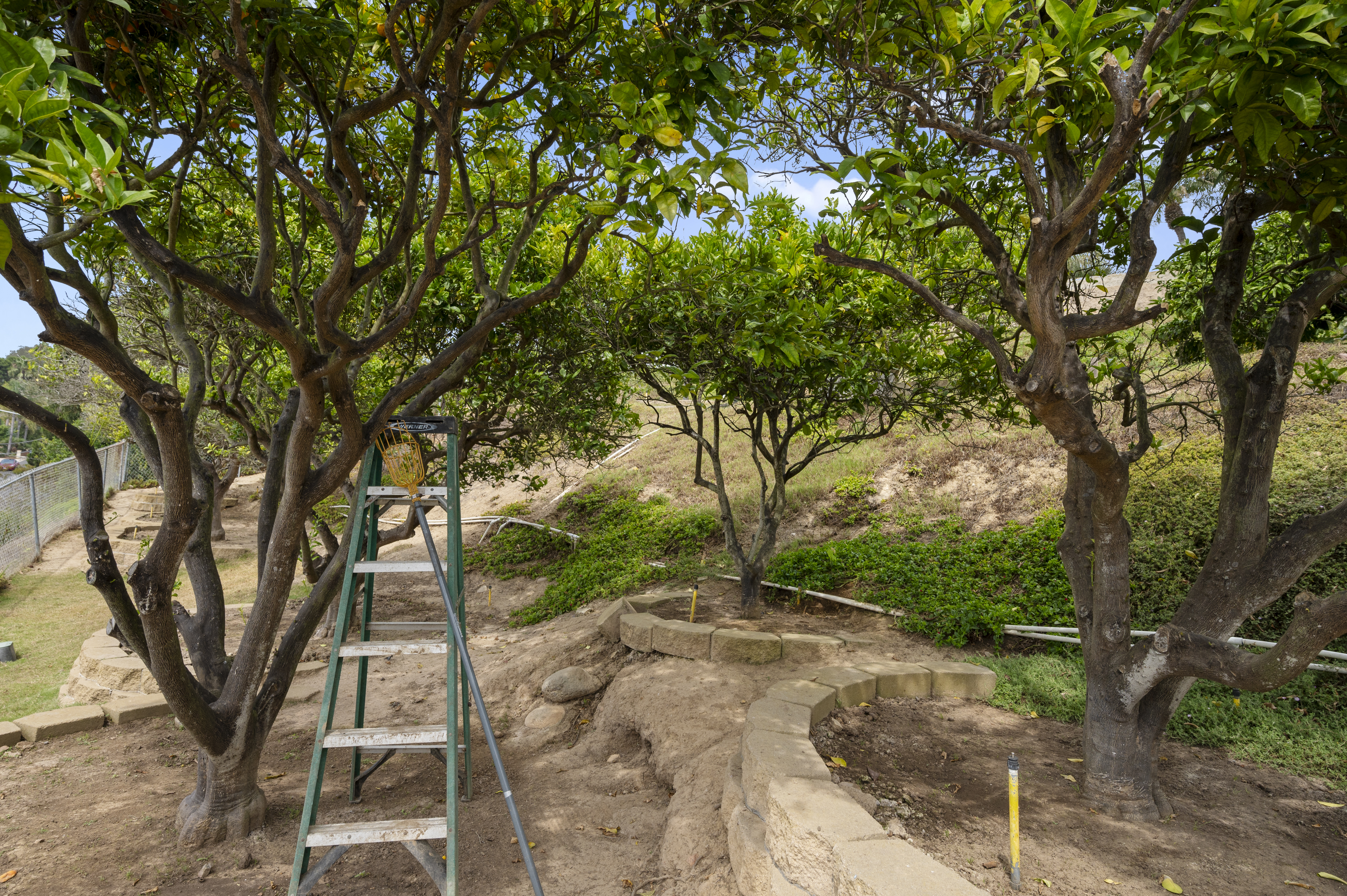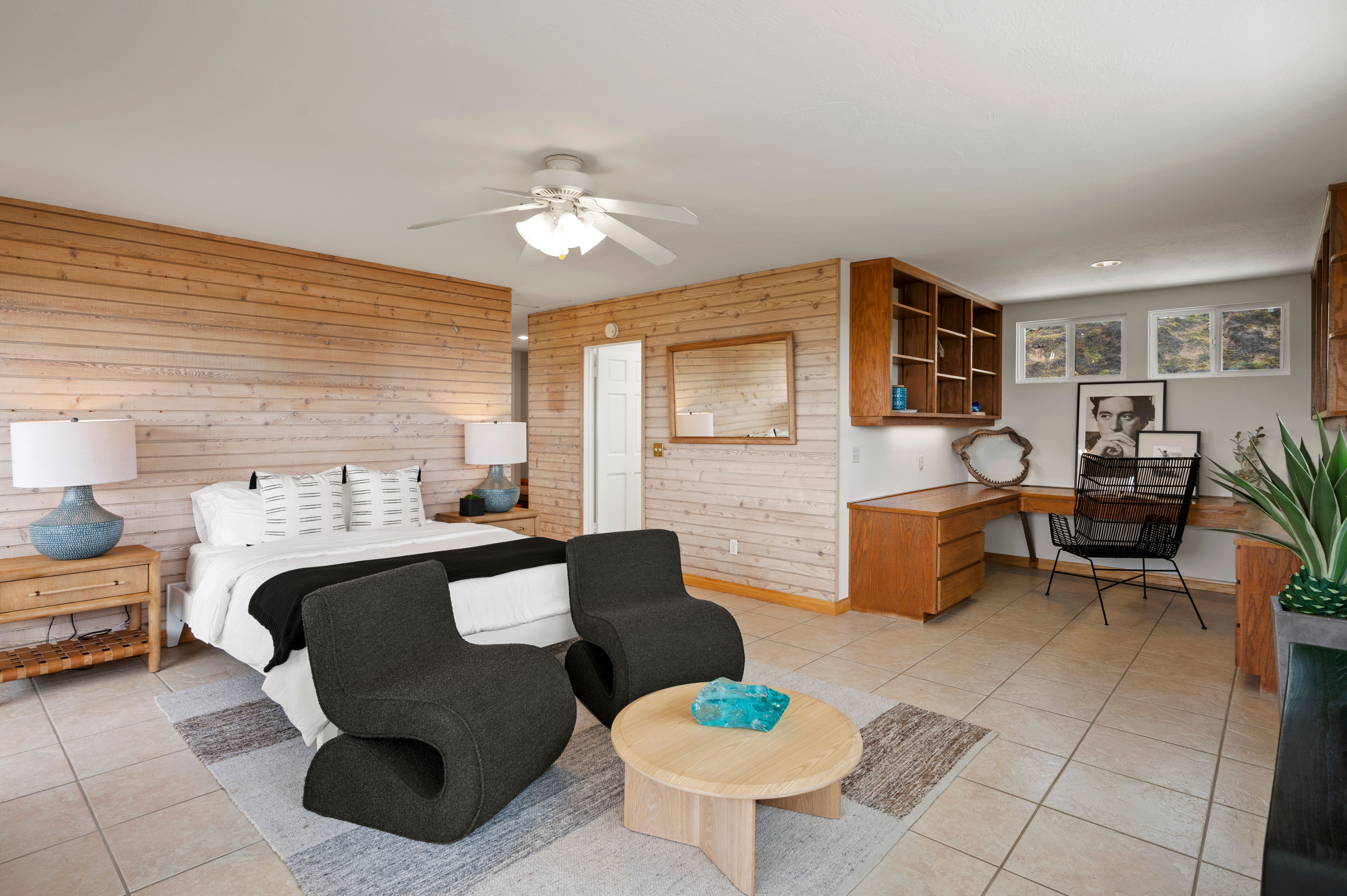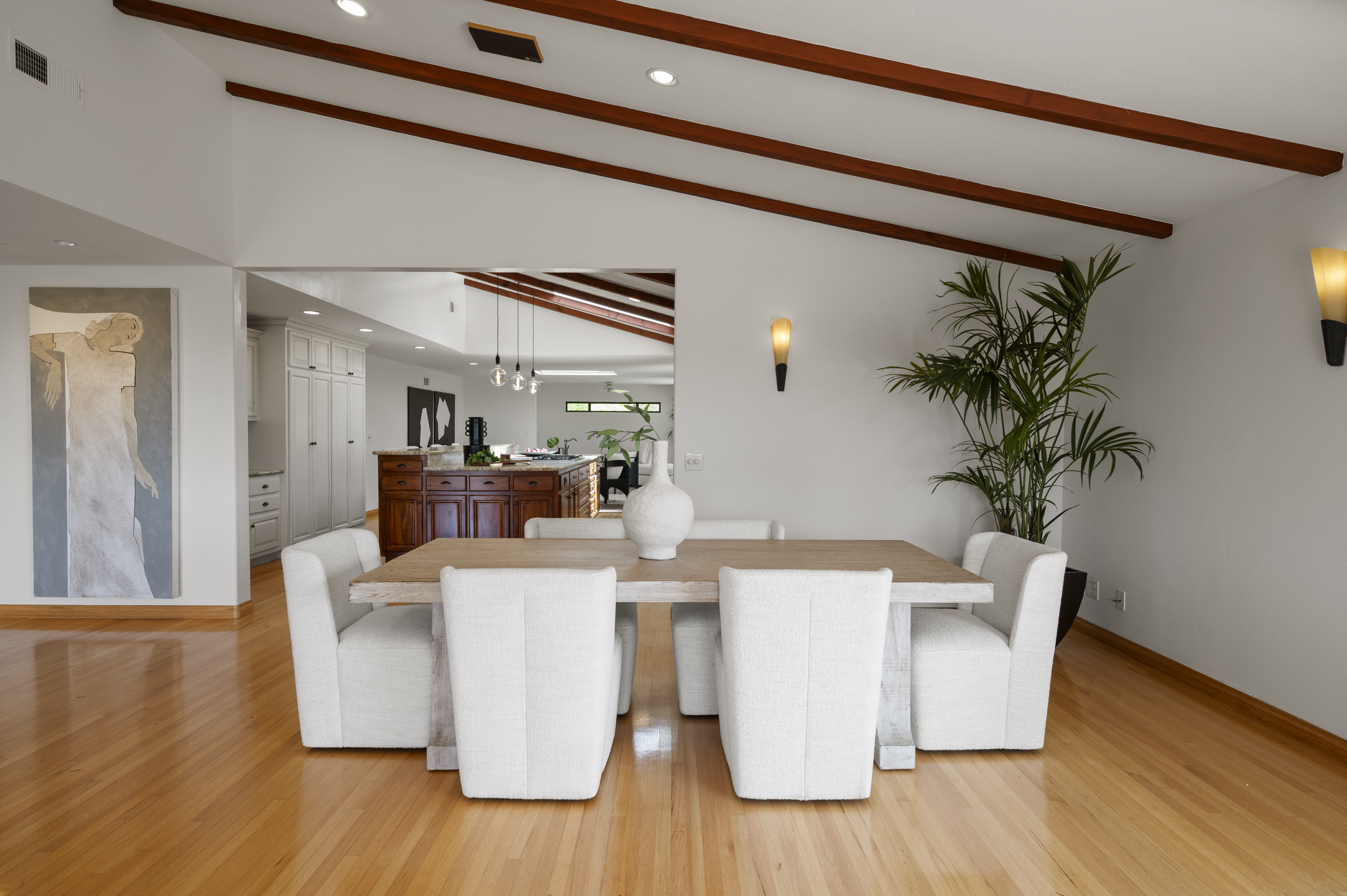 EXQUISITE PRIVATE HILLTOP RETREAT WITH PANORAMIC OCEAN VIEW! This custom-built Muirlands Crest estate offers spectacular coastline and lush canyon views from nearly every window of the home as well as from its expansive private deck. Perfectly situated on a huge 21,000 sf lot at the end of an exclusive five-home private drive, this property is on the market for the first time in 57 years. This open-concept home features formal entry, plenty of oversized windows and sliders, soaring ceilings, gleaming hardwood floors, custom built-ins in each of the generous-sized bedrooms, and a gorgeous chef's kitchen. Cozy up in front of the kiva-style gas FP in the adjacent family room. Step outside onto the sizable, shaded patio with vertical garden. A flexible floor plan offers two primary suites, one on each level. The light-filled upper suite has a roomy open bath, walk-in closet and dressing room, dedicated WFH space, and a sitting area in the sunroom with views of the sparkling coastline waters all the way to Mexico! The lower half of the property boasts a terraced fruit orchard with 30+ mature trees while palm-drenched, drought-tolerant landscaping surrounds the home. Everything is on automated irrigation for easy maintenance. Other features include fully-owned rooftop solar with net positive output, drinking water filtration system, and 2 car garage with dedicated outlet for your EV as well as W/ D hookups. This freshly painted home is move-in ready or can be reimagined to maximize the potential of this truly unique parcel. This is your opportunity to own a glorious piece of SoCal heaven!