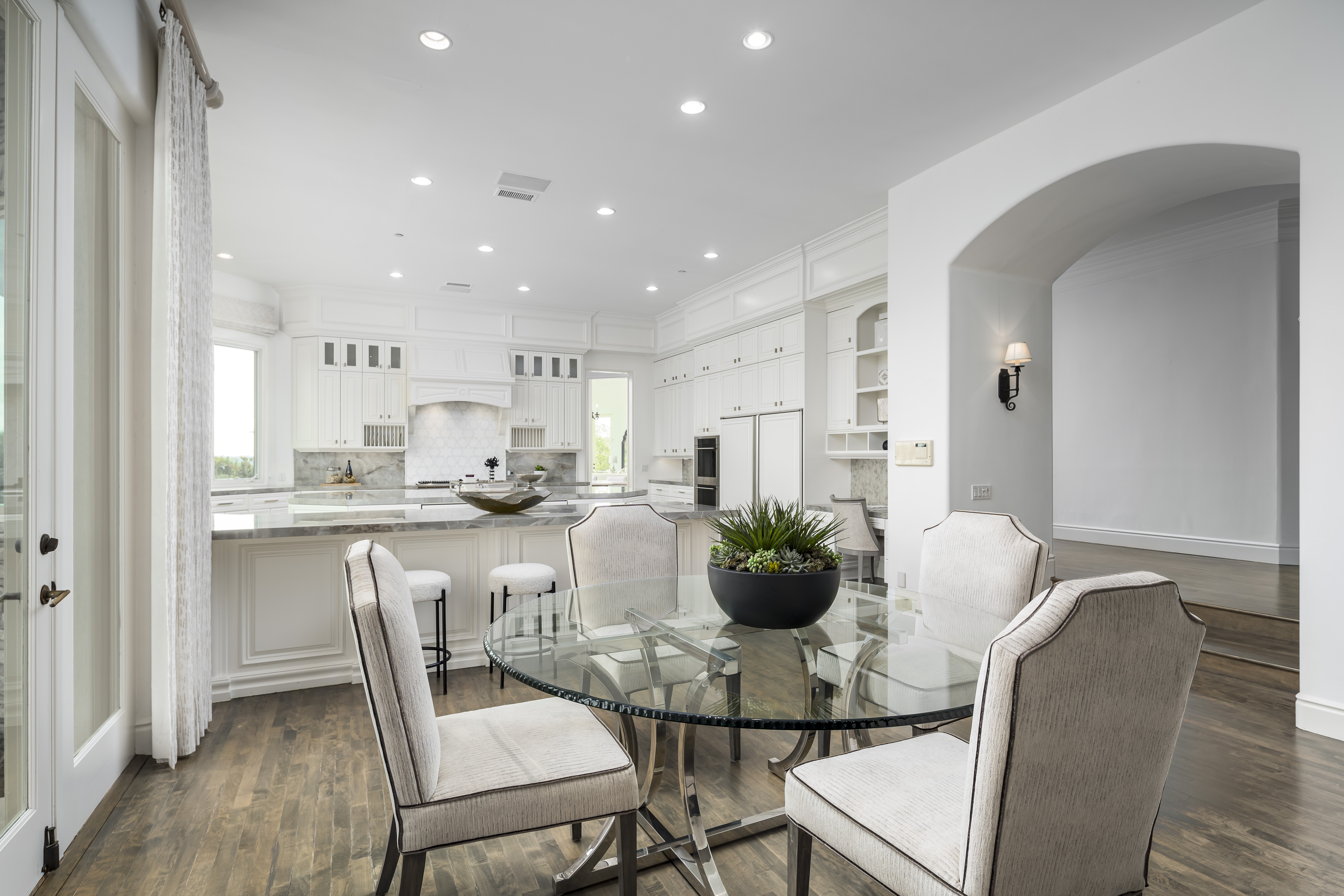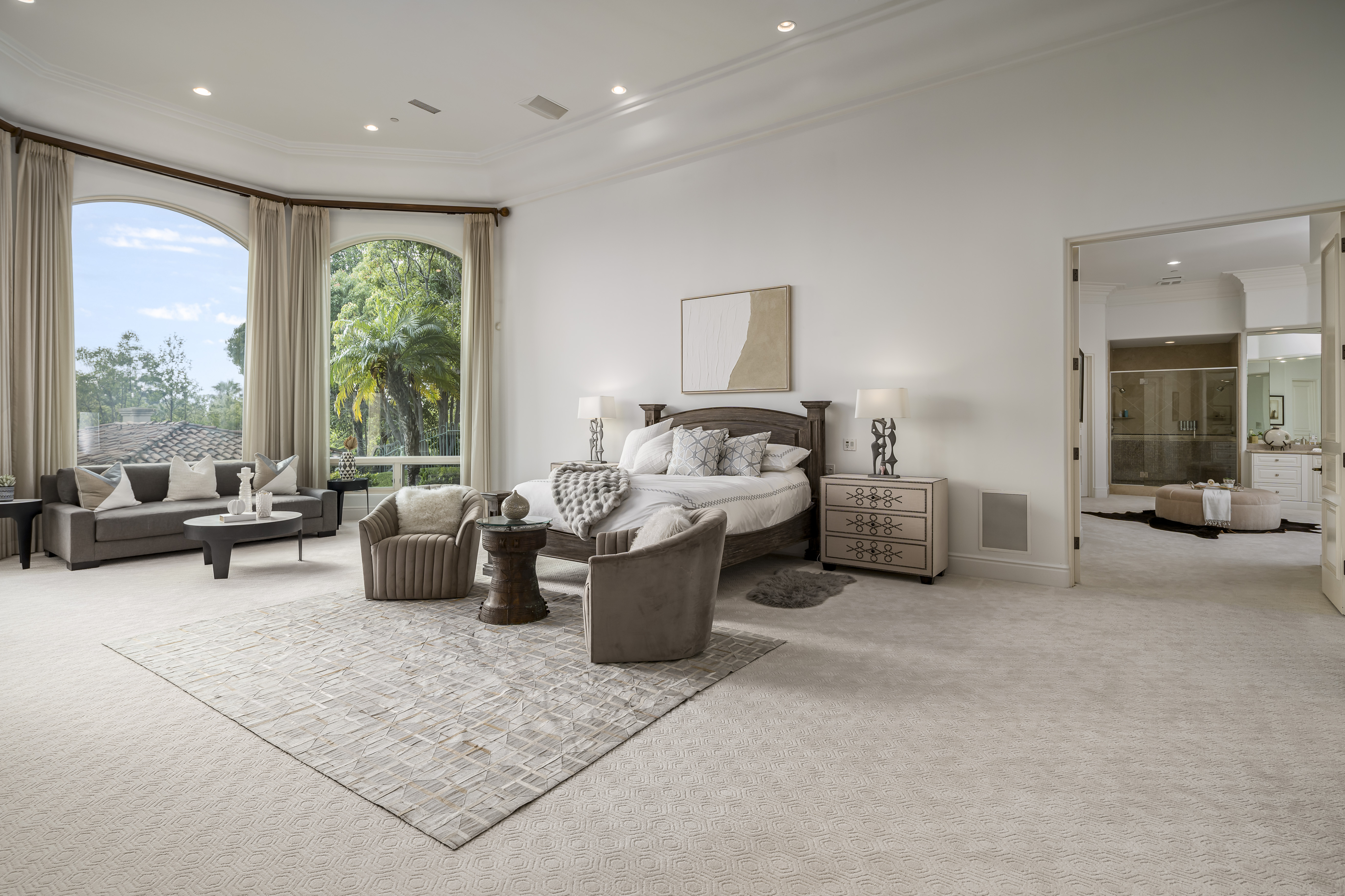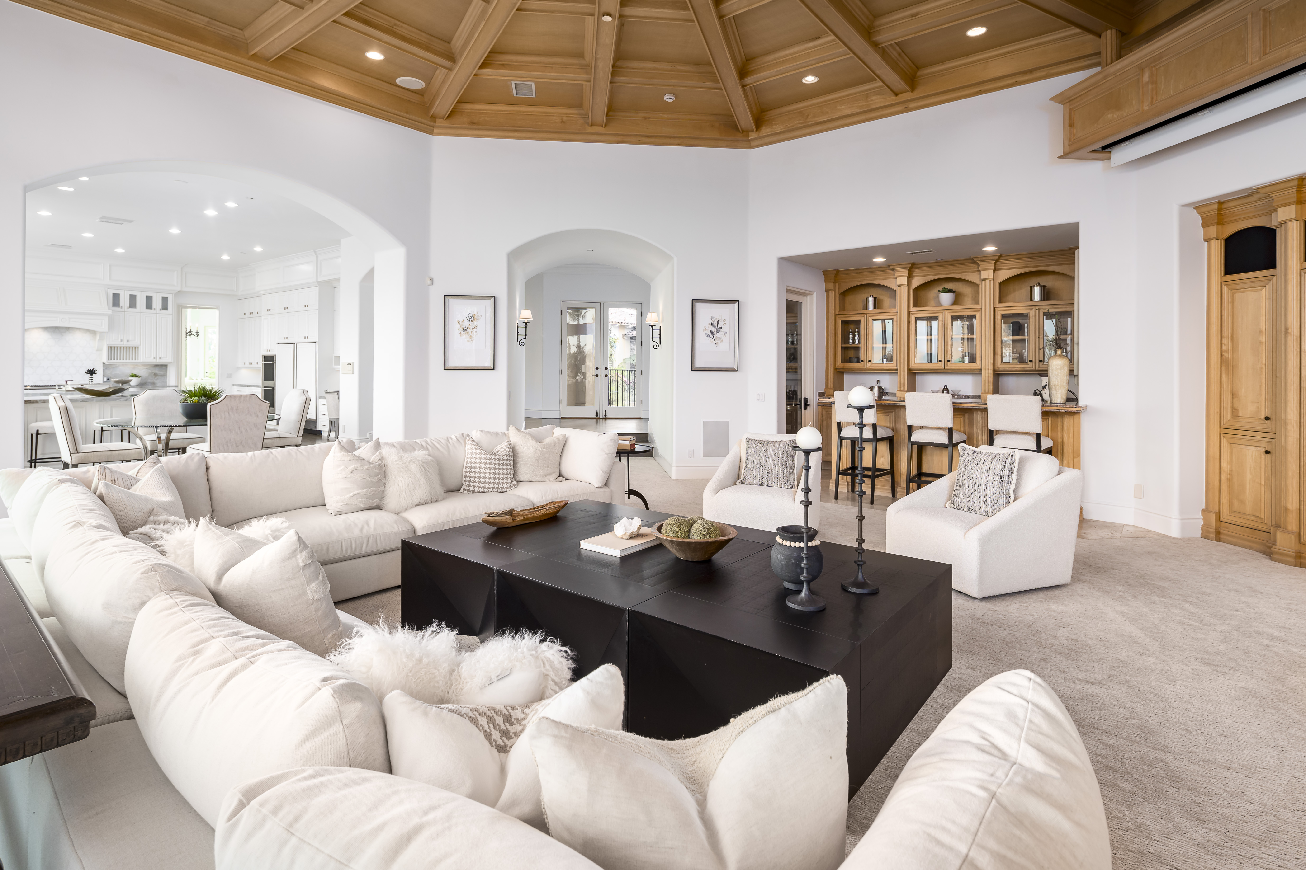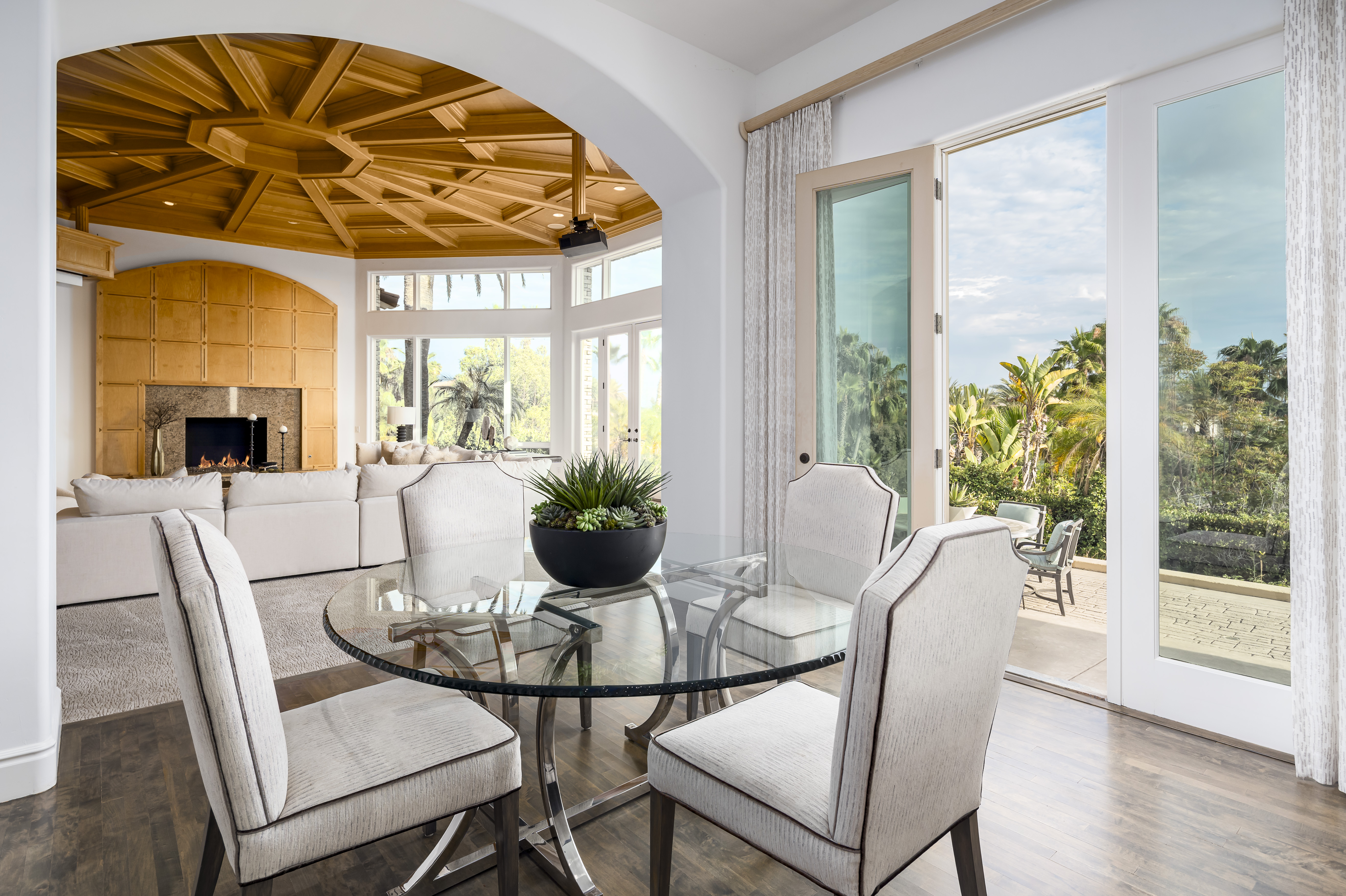 Set on 2.39 acres of lush, tropical grounds, this grand Mediterranean estate offers sweeping views of the RSF Farms Golf Course and beyond. Located within the highly exclusive, guard-gated community of Spyglass, this property is a true sanctuary of privacy, luxury, and timeless elegance. A gated entrance leads to a long, winding driveway culminating in a stately motor court with tranquil fountain. Oversized beveled-glass double doors welcome you into a dramatic foyer that opens to the expansive formal living room, featuring a stately fireplace and panoramic vistas. Adjacent is the formal dining room with seamless access to the resort-style pool and spa, ideal for indoor-outdoor entertaining. The richly appointed wood-paneled office, complete with fireplace, offers an elegant space for work or study. The luxurious primary suite is a private retreat featuring a cozy sitting area with fireplace, an opulent spa-inspired bath, dual dressing rooms, and a versatile adjacent room ideal for a gym, office, or massage space. The recently remodeled chef’s kitchen is a culinary masterpiece, boasting high-end appliances, a spacious island with bar seating, and a casual dining area that flows effortlessly into the expansive family room—accented with custom woodwork, a full bar, and wine cellar. The main level also includes a guest bedroom suite, two powder rooms, a well-equipped laundry room, and direct access to the attached four-car garage. Upstairs, discover four generously sized bedroom suites, most with access to large view balconies, plus a versatile bonus room—perfect as a playroom or lounge. A detached one-bedroom, one-bath guest house offers the same architectural charm and luxurious finishes as the main residence. It features a spacious great room with fireplace, ideal for visitors or extended family stays. Outdoor living is truly elevated with a summer kitchen, outdoor bar, ample seating areas, and a stunning pool and spa surrounded by mature landscaping and manicured grounds. Spyglass Lane features interlocking pavers and an additional gate for enhanced privacy. Perfectly positioned close to major highways, upscale shopping, world-class beaches, and award-winning schools—this is Southern California luxury living at its finest.