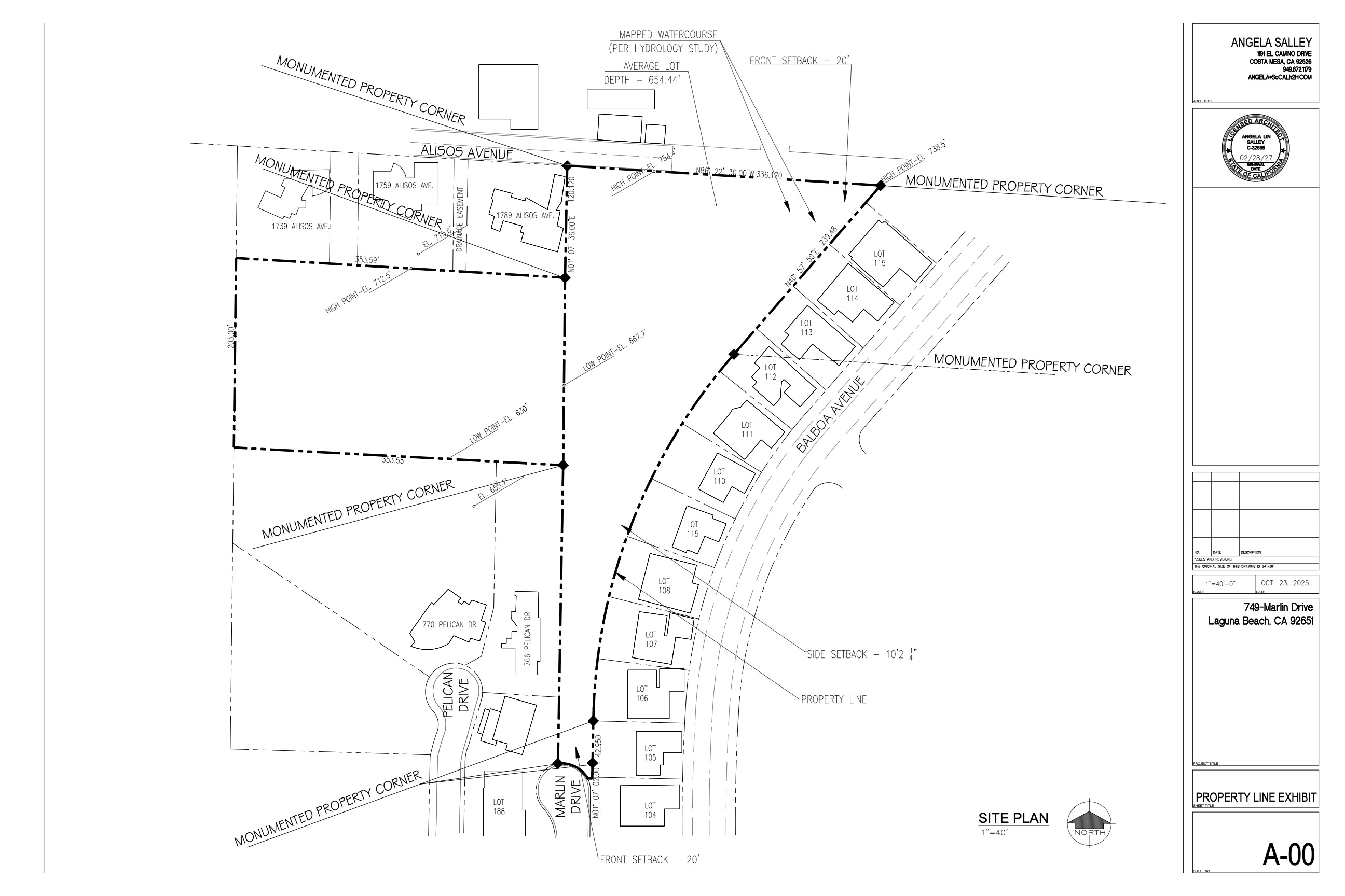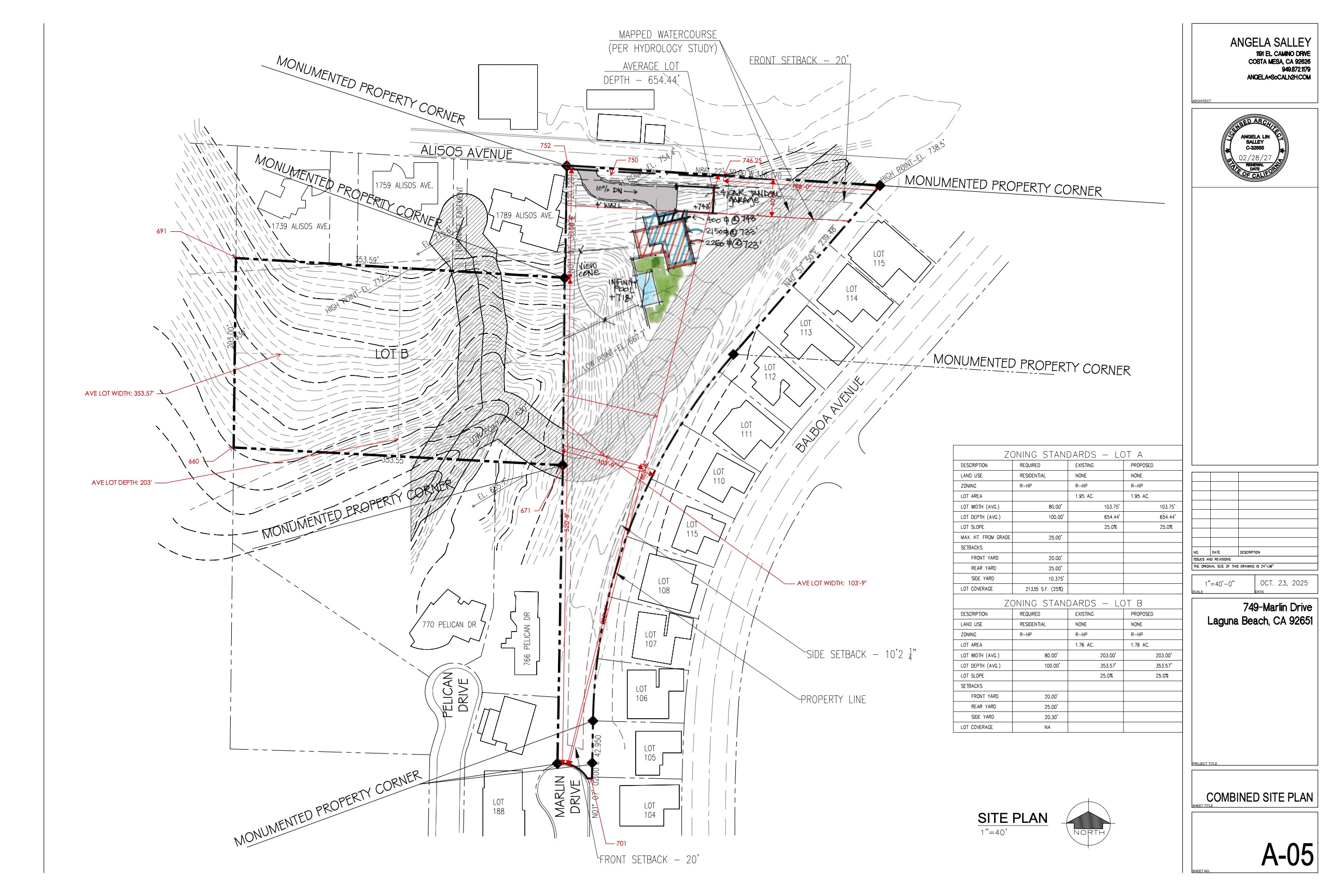 Perched high on a hill above Victoria Beach and Montage sits one of the last large vacant parcels Laguna Beach has to offer. 749 Marlin Drive presents the rare opportunity to own approximately 3.58 acres of land which is comprised of AP# 656-032-03 (Approximately 1.948 Acres) and AP# 656-032-20 (Approximately 1.635 Acres). AP# 656-032-03 is a vacant legal building site with access from the eastern end of Alisos Avenue. AP# 656-032-20 is a vacant lot adjacent to AP# 656-032-03 and is not a legal building site. Located in Portafina, one of Laguna’s most beautiful and central neighborhoods. Nestled into a tranquil setting at the eastern end of Alisos Avenue and extending to the cul de sac at the end of Marlin Drive, it is quite unique. The distance along the property line from Alisos Avenue to Marlin Drive is approximately 600 feet. Legal access to the building site is on Alisos Avenue. Please click on the Video/Virtual Tour for a more detailed view. You’ll enjoy incredible canyon and ocean views. Photos and video include an architectural concept rendering as the potential location of a home on the site. A short stroll to Moulton Meadows Park, plenty of outdoor activities await: hiking, mountain biking, children’s playgrounds, and sport courts for basketball and tennis. You’ll enjoy living just moments away from some of the area’s most exquisite restaurants just down the hill, including dining at the world-renowned Montage Laguna Beach and live music and entertainment at The Drake. Best of all, this lot sits just a short drive to some of the most breathtaking beaches in all of California. Surrounded by the very best Laguna Beach has to offer, this lot provides an opportunity to live the ultimate coastal lifestyle. Access on to the property is with permission only. Property is undeveloped. The property includes steep sections. Buyers and Agents entering on to the property do so at their own risk and therefore Seller is not held responsible.