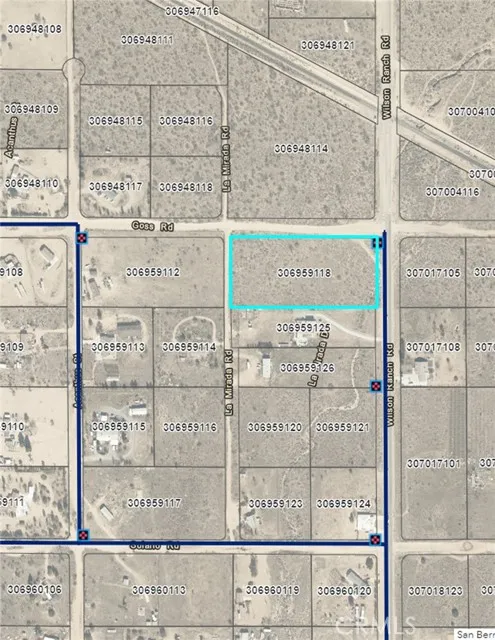 4.14 ac (3.64 ac net) vacant lot at the corner of Wilson Ranch Rd and Goss Rd in Phelan. Paved road access with water and power available. Fantastic views of the mountains. Drainage easement through corner of property along Wilson Ranch Rd. Zoned for 2.5 ac lots with possibility of doing a split.