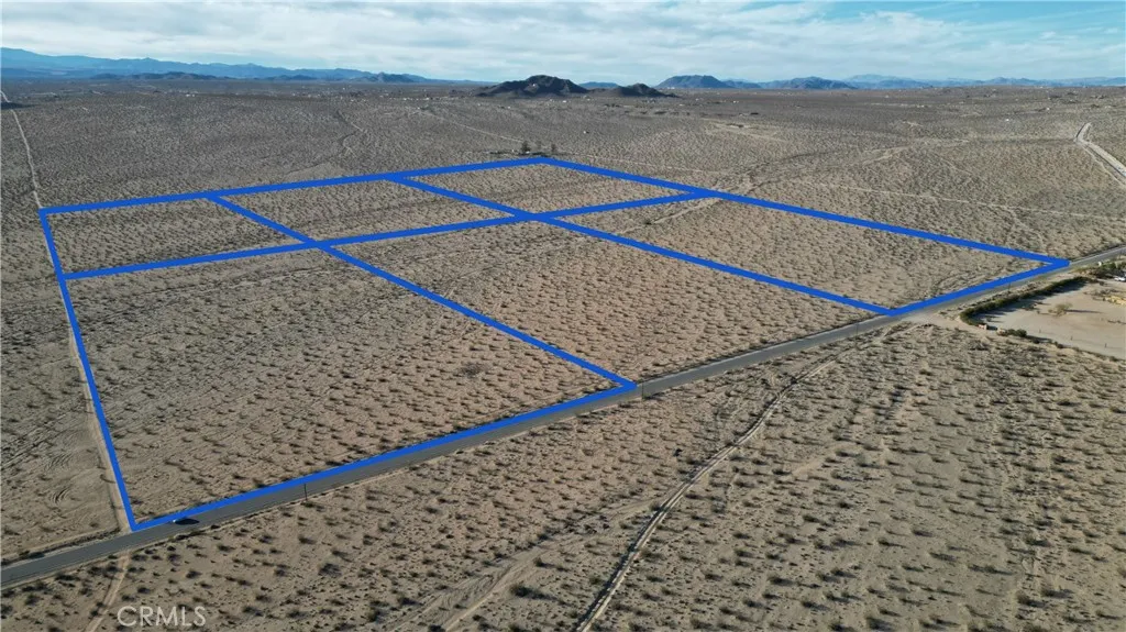 Embrace the boundless potential of these exceptional desert parcels! Whether you are envisioning a personal sanctuary or a development project, seize the opportunity to secure 1, 2, 3, 4, or all 5 of these contiguous lots, totaling an impressive 91 acres (each separately listed). Nestled amidst the breathtaking natural landscape, this expansive canvas offers the perfect setting for your dream desert compound or community. Picturesque open-sky sunrise to sunset vistas, sweeping sandy panoramas, and majestic rugged mountains set the stage for a truly captivating living experience. Adventure awaits with endless opportunities for wilderness exploration. Embark on thrilling hikes, traverse off-road trails, immerse yourself in the vibrant hues of wildflower blooms, or lose yourself in the mesmerizing spectacle of stargazing beneath the pristine dark skies. Conveniently located adjacent to Joshua Tree Lake RV and Campground, home of the renowned Joshua Tree Music Festival (voted #1 Best Music Festival in USA TODAY Readers Choice for 2024!) and a mere 14 miles from the iconic Joshua Tree National Park, this rural haven strikes the perfect balance between seclusion and accessibility. Enjoy the tranquility of your private oasis while still being within easy reach of the eclectic charm of downtown Joshua Tree, the electrifying energy of Indio's renowned festivals such as Coachella and Stagecoach, or the cosmopolitan dining scene of Palm Springs. Explore the possibilities with the County regarding potential development opportunities, whether it's building multiple units or subdividing
