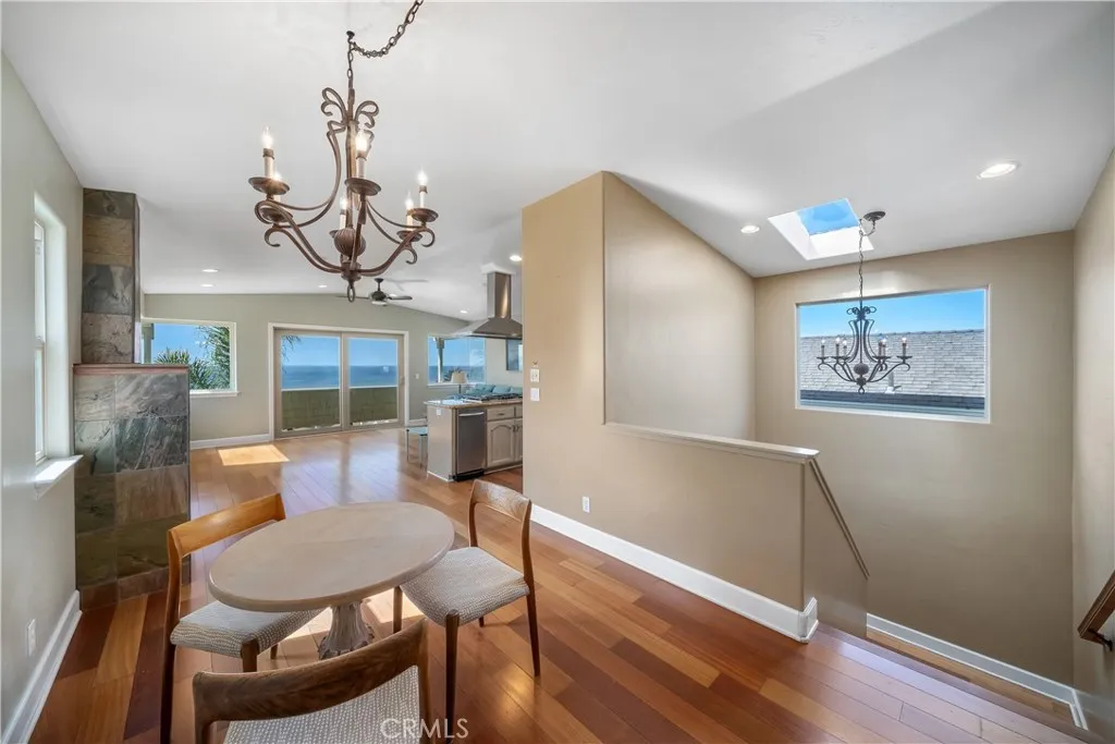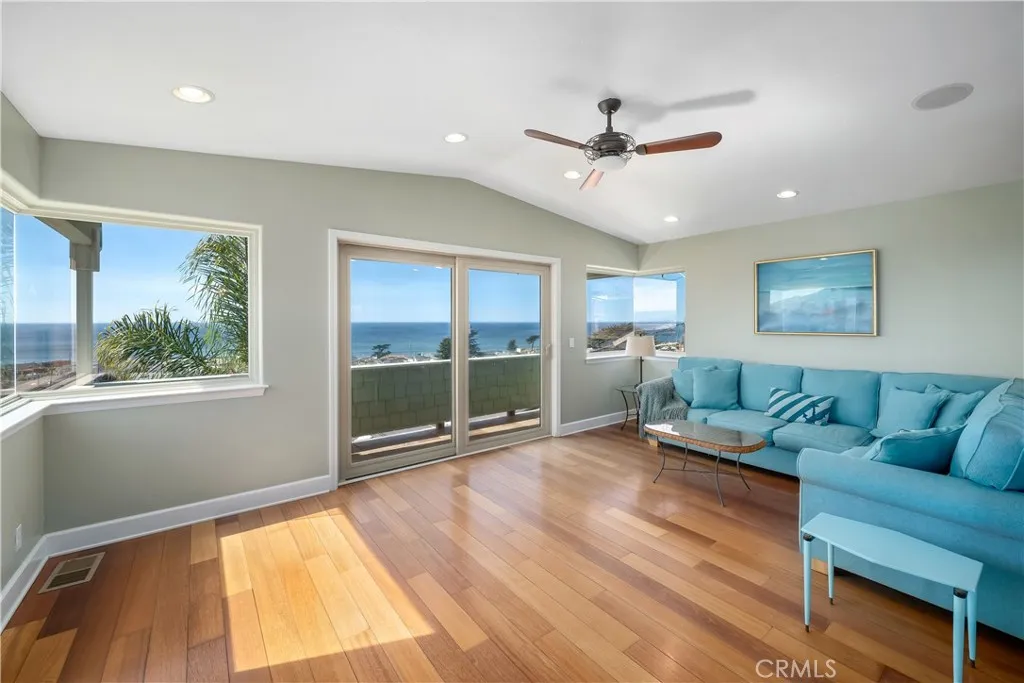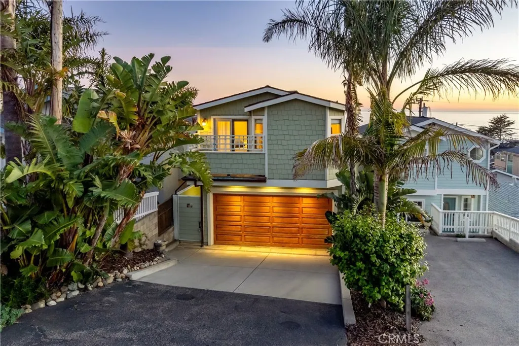 Perched in a premier Cayucos location just three blocks from the beach, 1000 Saint Mary Ave offers coastal living with tropical charm. A gated entry welcomes you into a lush setting of mature palms and banana trees, while ocean views greet you at the door. Inside, hardwood floors, a fireplace, and whole-home heating, A/C, and surround sound create comfort year-round. The main living level features a spacious layout ideal for large families, with a stunning ocean-view deck complete with gas hookups, perfect for outdoor cooking and entertaining. The primary suite is conveniently located on the main level, offering its own balcony, walk-in closet and a jacuzzi tub in the bathroom. Downstairs are two additional bedrooms, a full bathroom and a finished garage with built-ins and sink. The lower level includes a wine cellar and an unfinished bedroom and bath with plumbing in place, offering potential for future completion. Enjoy ocean sounds, cross breezes, and views from nearly every room. The fenced backyard, irrigation system, and walkable access to town and pier complete this exceptional coastal retreat.