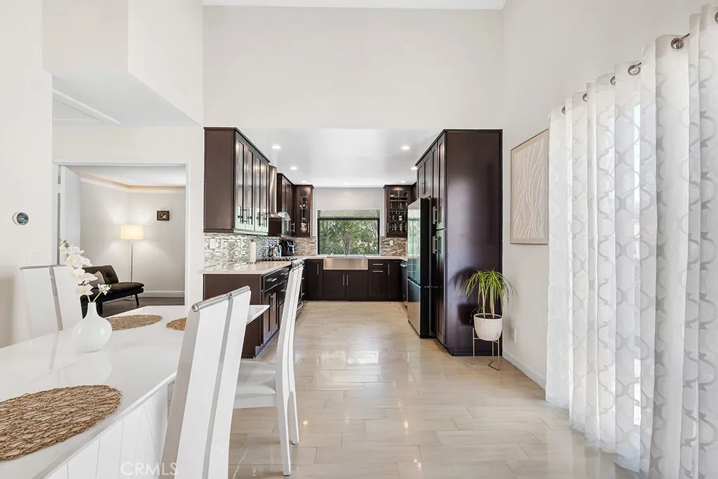 Turnkey corner-unit 2-bedroom, 2-bath townhome in the desirable Topanga South community with only one shared wall, offering privacy and abundant natural light. This home features vaulted ceilings, an open layout, and a bright living space with a fireplace and custom tiled surround, plus large sliding glass doors that open to a private patio. The remodeled kitchen includes quartz countertops, stainless steel appliances, a farmhouse sink, modern cabinetry, and a mosaic tile backsplash, opening to a dining area with soaring ceilings that enhance the homes airy feel. Upstairs, the spacious primary suite features vaulted ceilings and a beautifully updated en-suite bath with dual sinks, an LED-lit mirror, a frameless glass shower, and a rainfall showerhead. The secondary bedroom is well-sized and versatile for guests or a home office, and the hall bathroom also includes updated finishes. Additional highlights include laminate and tile flooring, recessed lighting, smooth ceilings, and a direct-access 2-car garage with epoxy flooring and built-in storage. Located in a well-maintained, tree-lined community with pool and spa, close to shopping, dining, hiking trails, major freeways, and the Topanga Canyon area.