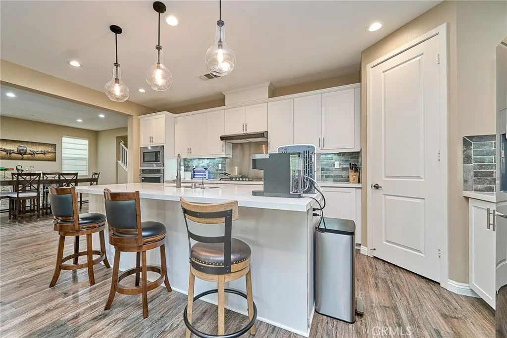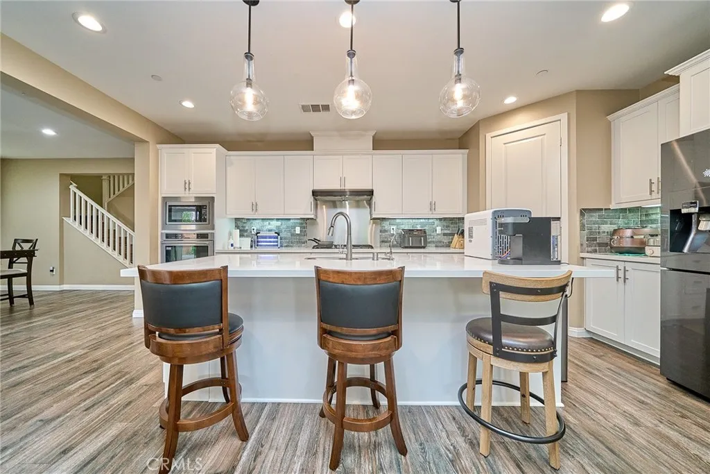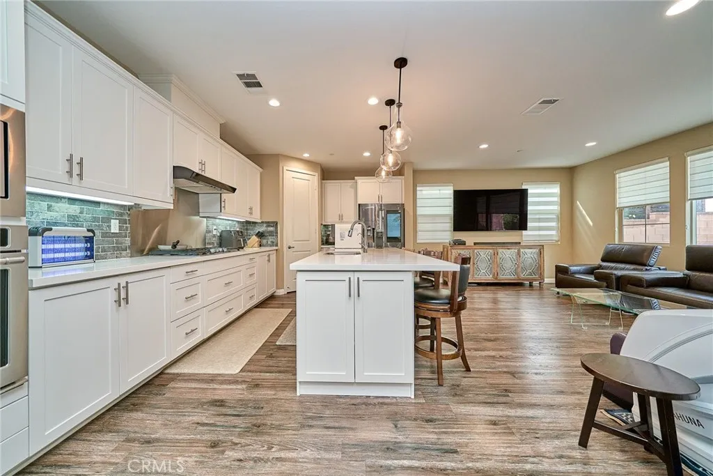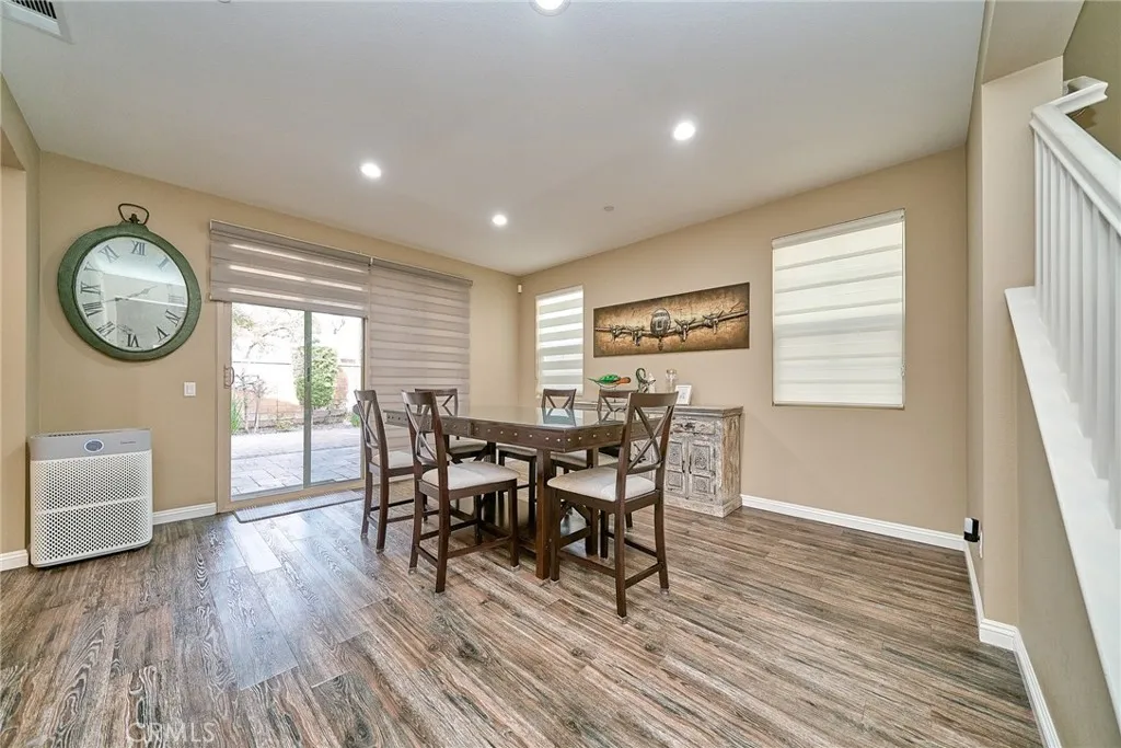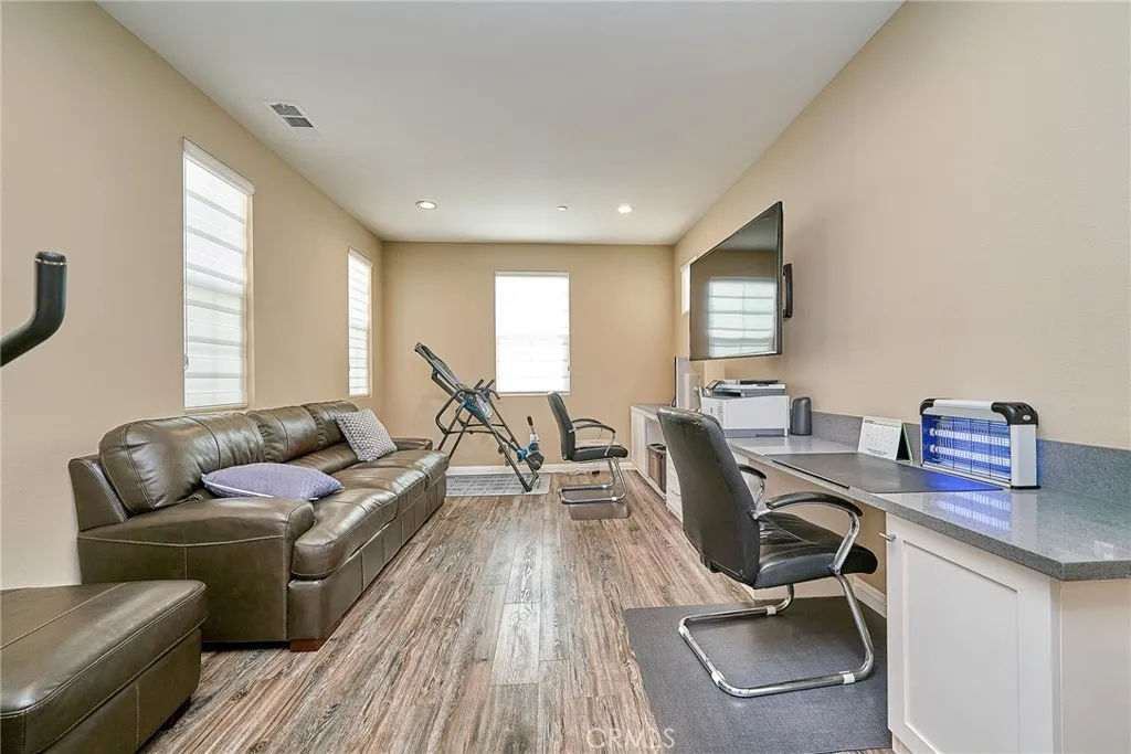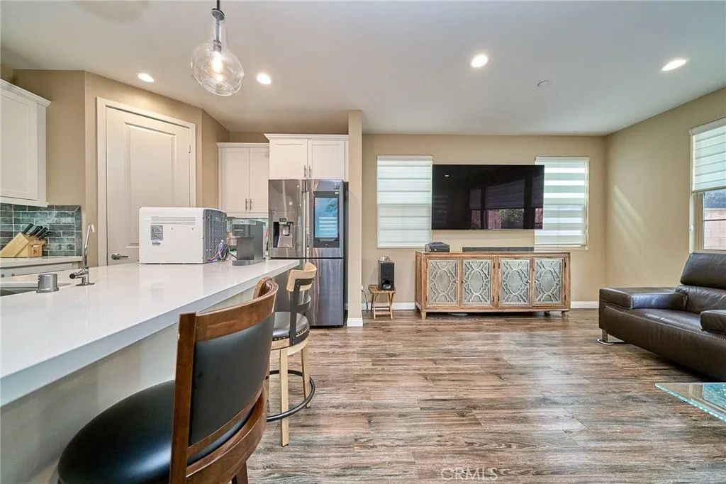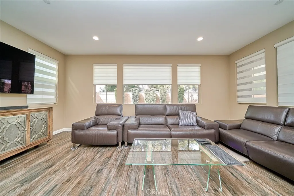 Beautiful two-story home in the heart of Buena Park offering timeless finishes and thoughtful upgrades throughout. Rich hardwood floors and recessed lighting set a warm, modern tone across the open main level. The chef-inspired kitchen features custom cabinetry, a large center island, stainless steel appliances, and abundant storage seamlessly flowing to the adjacent family/dining area and out to a serene, spacious backyard perfect for entertaining. Upstairs includes a versatile den plus a generous primary suite with a private bath. The center bathroom is appointed with a separate shower and dual vanity. Practical comforts include a dedicated laundry room and an attached 2-car garage. Situated in a desirable location with easy access to local amenities move in and enjoy the best of Buena Park living today.