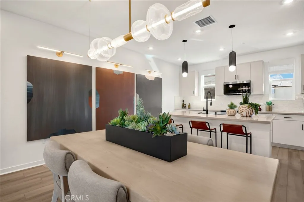 Rare opportunity to own a fully upgraded, professionally designed model home offered completely furnished with upscale furniture and custom dcor. Located in an intimate enclave of just 44 homes in Anaheim bordering Buena Park, this stunning three-story townhome blends modern design, smart functionality, and low-maintenance living. Thoughtfully designed for todays lifestyle, the versatile floor plan features 3 bedrooms and 3.5 bathrooms, including a private downstairs bedroom with en-suite bathideal for guests, multigenerational living, or a home office. The second level showcases an expansive open-concept layout with seamless flow between the kitchen, dining, and living areas, creating the perfect space for entertaining or relaxing. The designer kitchen offers abundant storage and opens directly to the main living space for convenient everyday living. Upstairs, two spacious bedrooms each feature their own bathrooms, providing comfort and privacy. Additional highlights include ample storage throughout, energy-efficient construction, and a 2-car attached garage. Enjoy a true lock-and-leave lifestyle in a community designed for convenience and connection. Residents have access to an inviting open green space, BBQ area, fire pit, and ping pong tableperfect for gathering with friends or unwinding at the end of the day. Situated adjacent to an exciting new development revitalizing the area with state-of-the-art entertainment, shops, and retail, the location offers exceptional accessibility. Close proximity to the 91 and 5 freeways allows for easy commuting throughout Orange Count