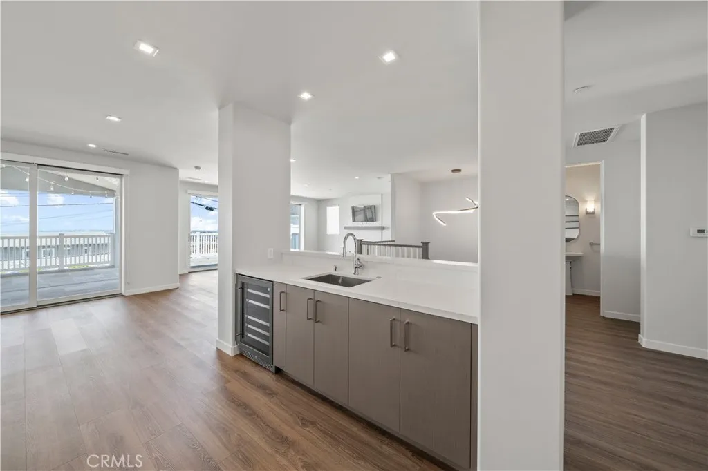 Newly constructed executive Craftsman-style home available for lease in the prestigious Upper Hollywood Riviera with partial Queens Necklace ocean and city views. The open-concept upper level offers 1,264 sq. ft. of living space with luxury vinyl plank flooring, an oversized Dutch front door, powder room, and direct access to the two-car garage with keyless entry, storage hooks, and charging stations. The gourmet kitchen features a Sub-Zero Thermador refrigerator/freezer, 6-burner gas range with griddle, double ovens, custom cabinetry, stone countertops, floating shelves, instant hot/cold water, a large island with seating, and a separate beverage/bar area with sink. The living and dining areas open through collapsible sliding doors to an oversized 545 sq. ft. deck spanning the length of the home, perfect for entertaining and enjoying the views. The living room also features a gas fireplace and hidden office space. The lower level offers 1,753 sq. ft. with four spacious bedrooms, each with its own en-suite bathroom, a laundry room with front-loading washer/dryer, and direct access to the backyard. Additional features include abundant storage and two EV charging stations (garage and driveway). Luxury living in one of the South Bays most desirable neighborhoods.