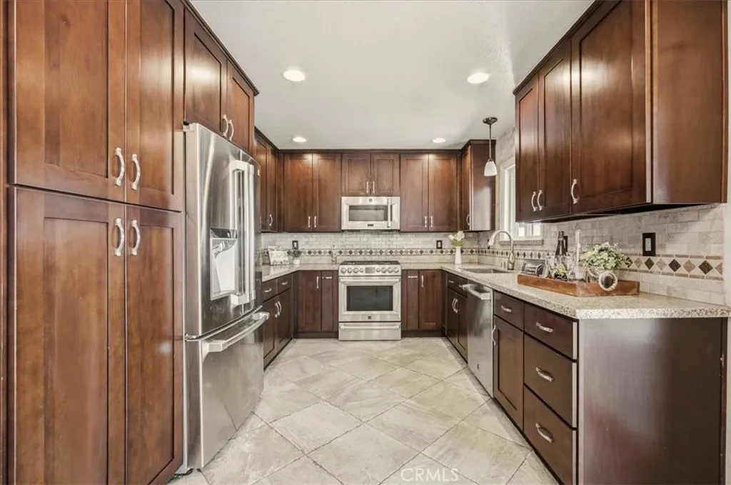 Cozy single-story home located in the highly desirable area of Rancho Cucamonga. This inviting property with double doors entry offers 3 well-sized bedrooms and 2 bathrooms with a bright and comfortable layout. Recent upgrades include brand new laminate flooring and fresh interior paint, giving the home a clean, modern, and move-in-ready feel. The updated kitchen features stylish cabinetry and stainless steel appliances, while the spacious living room showcases a charming stone-accent fireplace and abundant natural light, creating a warm and welcoming atmosphere. Additional highlights include dual-pane windows, a tankless water heater, efficient heating and cooling, and an indoor laundry area for everyday convenience. Situated on a generous 7,169 sqft lot with potential for an ADU ( buyer to verity with city), the backyard offers exceptional usability with a covered patio perfect for outdoor gatherings. Conveniently located near schools, restaurants, and major shopping destinations such as Costco, and Victoria Gardens, this home combines comfort, upgrades, and an outstanding location. A wonderful opportunity you won't want to miss!