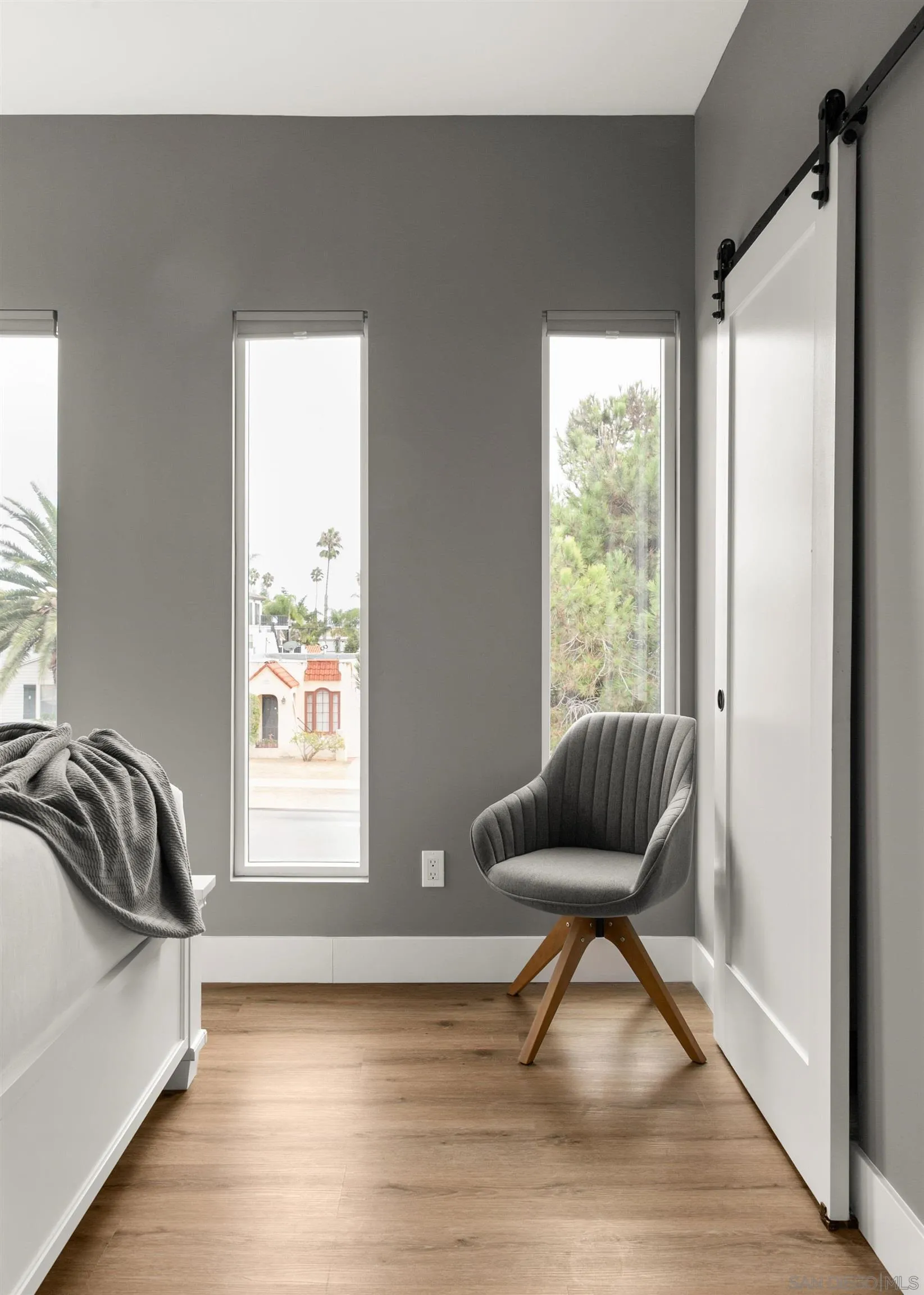 FURNISHED MIDTERM & LONG-TERM RENTAL — Brand New Coastal Contemporary in Pacific Beach Newly built 2BR / 1.5BA coastal contemporary home just four blocks from Law Street Beach in the heart of North Pacific Beach. Walkable to cafés, shopping, and vibrant dining, this stylish retreat offers fresh design and relaxed beachside living. Gated front yard features a pergola, cozy outdoor seating, market lights, and BBQ for alfresco evenings. Inside, the spacious living room includes a large sectional, flatscreen TV, and dedicated workspace. Open floor plan flows to the dining area for four and a modern kitchen with stainless steel appliances. Convenient half bath on the main level. Upstairs, both bedrooms offer queen beds; one includes a desk, the other a flatscreen TV and ceiling fan. Updated full bath with shower/tub combo completes the layout. A/C provided for year-round comfort. North Pacific Beach offers calm, family-friendly beaches, scenic cliffside viewpoints, surf schools, the boardwalk, and easy access to Tourmaline Surf Park and Crystal Pier. Sleeping Setup (max 4): BR1 Queen • BR2 Queen 1 Full Bath + 1 Half Bath Available fully furnished only. Rates reflect short-term rental pricing and vary by season and length of stay. Published amounts are estimates; final pricing, fees, and availability are subject to change until a signed agreement. Please inquire for an exact quote.