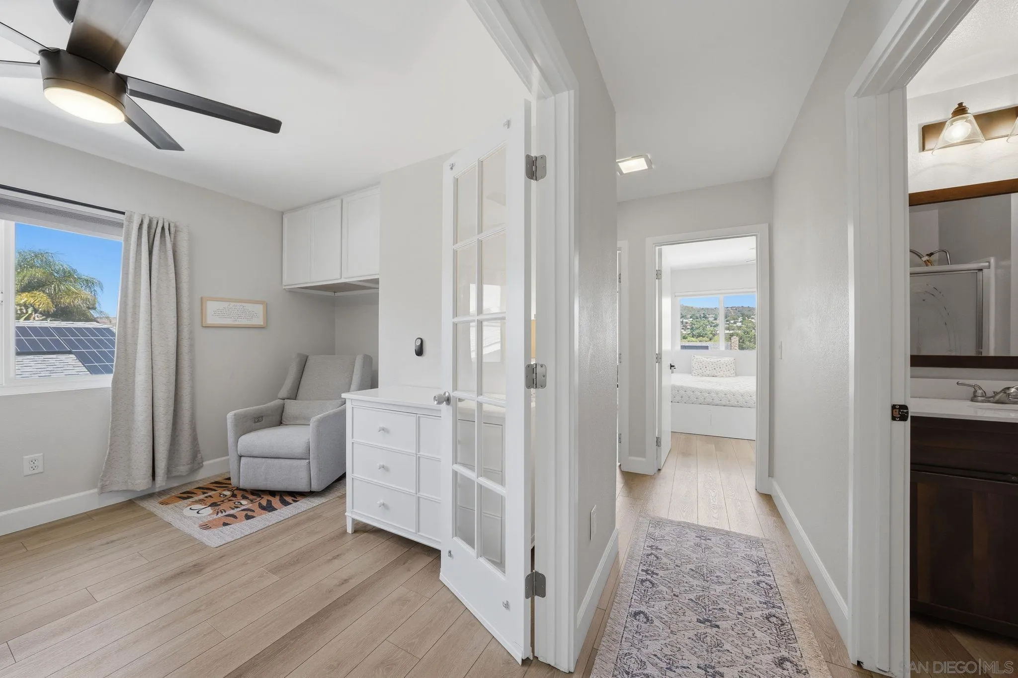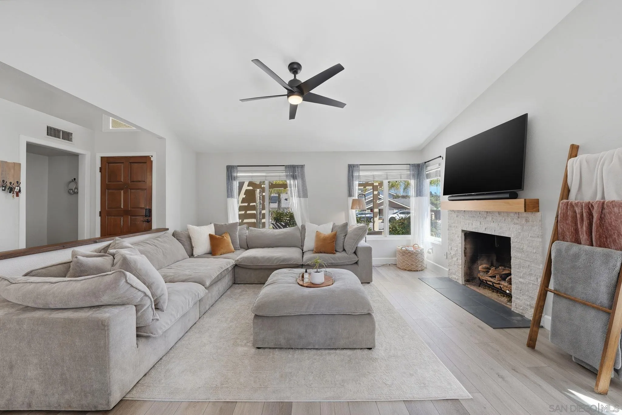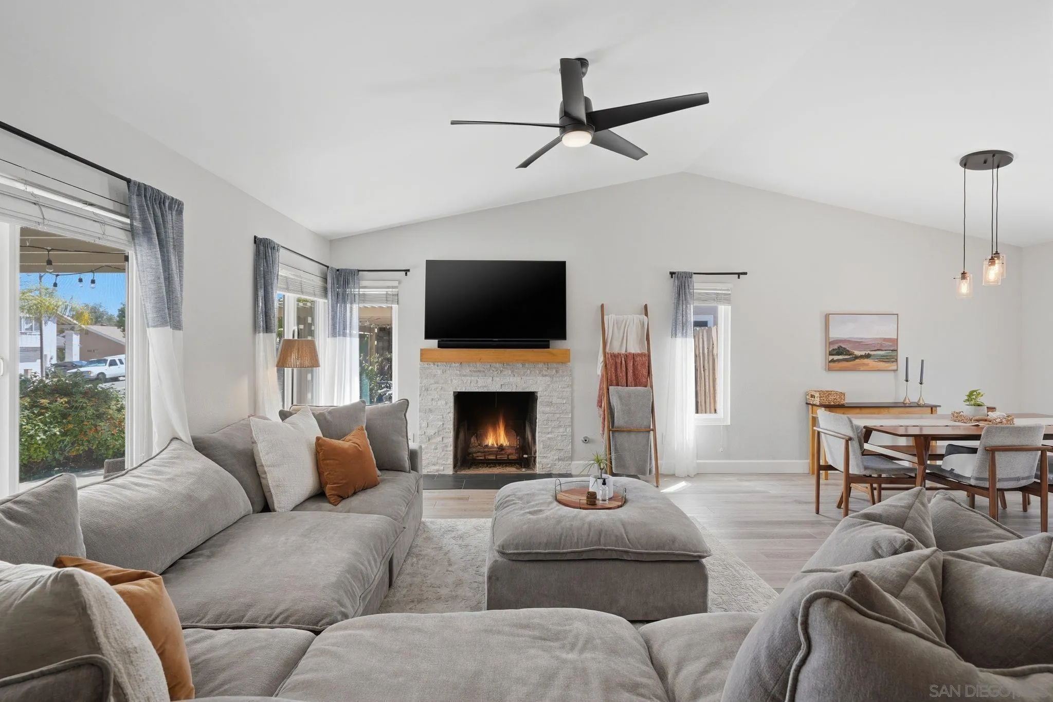 Completely renovated and thoughtfully reimagined, this bright and airy 4-bedroom residence offers the ultimate blend of style and functionality. Situated in the Santee Lakes neighborhood, the home makes a stunning first impression with soaring vaulted ceilings and an abundance of natural light that flows throughout the open-concept floor plan. The interior features multiple versatile living areas, a renovated kitchen, and beautifully updated bathrooms. Every detail has been addressed, including updated premium flooring, dual-pane windows, and contemporary fixtures. Energy efficiency is built-in with fully paid-off SOLAR panels, ensuring low utility costs year-round. The transition to outdoor living is seamless, leading to a private entertainer’s backyard complete with an outdoor kitchen, lush landscaping, and ample space for hosting. The property even boasts RV/boat parking. Located just minutes from trails, parks, coffee shops, restaurants, and all that Santee has to offer, this turnkey home offers modern luxury in a prime location.