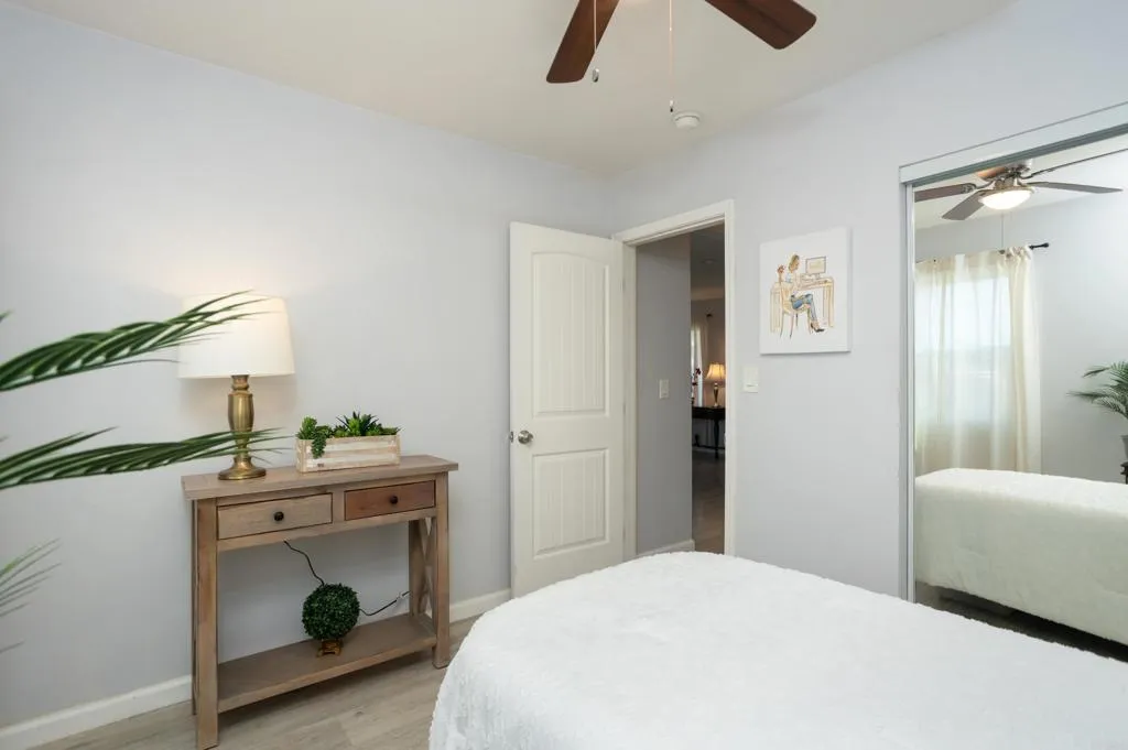 Welcome to this charming 2-bedroom, 1-bathroom single-family home, offering 812 sq ft with an open concept layout. Remodeled in 2019 by the previous owner, this home has been lovingly cared for and is move-in ready. It features modern upgrades, including vinyl plank flooring, quartz countertops, updated kitchen cabinetry and a practical kitchen island. The open floor plan maximizes natural light, creating a bright and inviting atmosphere. Ceiling fans in the bedrooms provide added comfort. Outside, the flat lot includes a spacious backyard with potential for future expansion, including the possibility of adding an accessory dwelling unit (ADU), subject to city approval. Located within walking distance to church, schools and public transportation. Close to shopping and freeways. Zoned R-2, this home is a great starter home with room to personalize and grow. Dont miss the opportunity to make it yours!