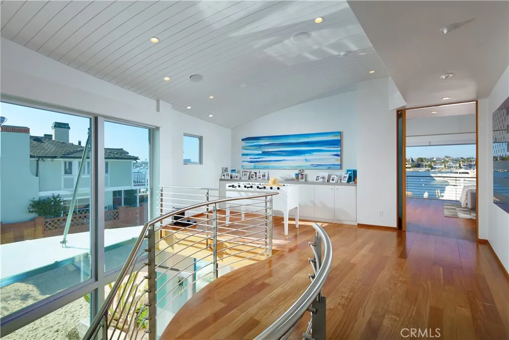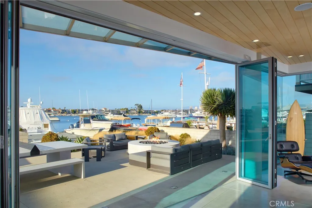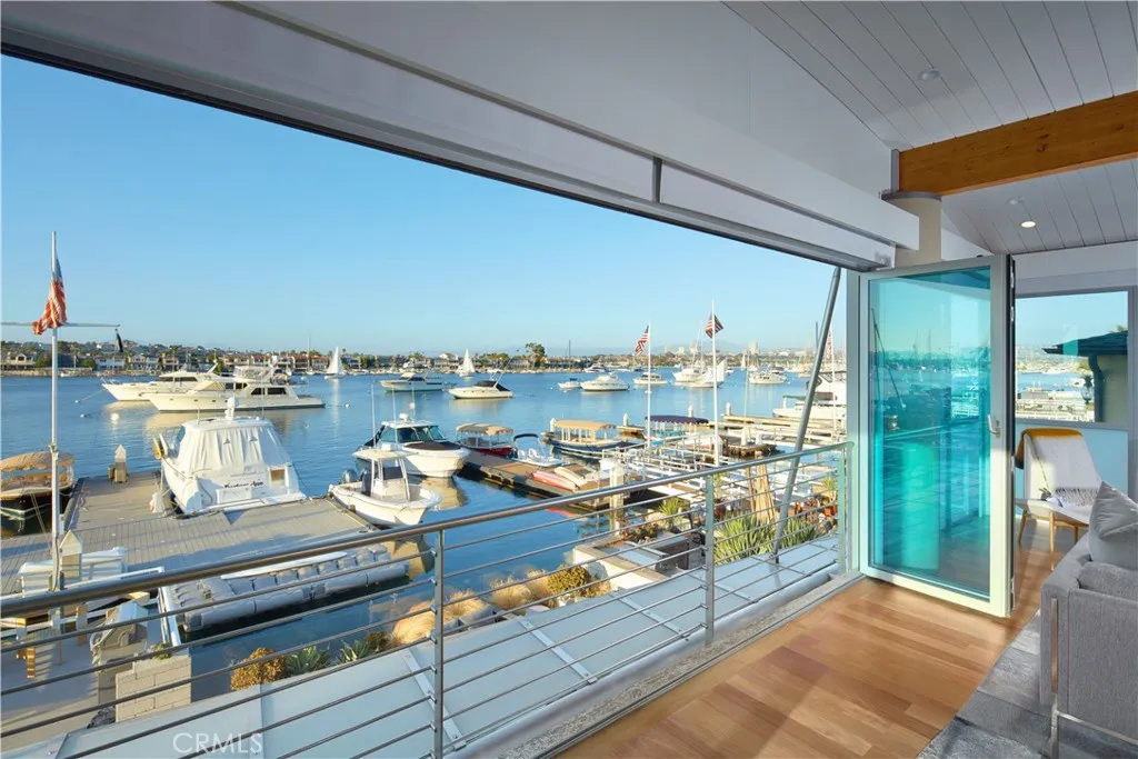 Harborfront contemporary retreat with private dock, offered fully furnished or unfurnished and featuring a gym with infrared sauna, jacuzzi, and the option of a 43 boat with captain. Set on a coveted corner lot on Balboa Peninsula, this bayfront home captures sweeping views of the turning basin, city lights, and harbor activity. Expansive sliding glass doors open to a large waterfront deck, creating seamless indoor-outdoor living. Approximately 4,256 square feet, the residence offers a spacious great room flowing into a chefs kitchen with oversized island, marble countertops, and English Sycamore cabinetry. The main level includes a guest suite with en-suite bath, powder room, and an attached three-car garage. The upper level is anchored by a full-width primary suite with stunning water views, fireplace, built-in workspace, and a limestone bath with soaking tub. Four additional bedrooms, two baths, and a flexible loft complete the home. Custom finishes include maple ceilings, mahogany floors, Venetian plaster, limestone, stainless steel railings, Brazilian Blue granite, and a zinc roof. Just beyond the patio, a private pier and dock can accommodate a vessel over 50, providing immediate access to the harbor. Ideally located moments from Balboas shops, dining, and beaches, this home delivers elevated coastal living at its finest.