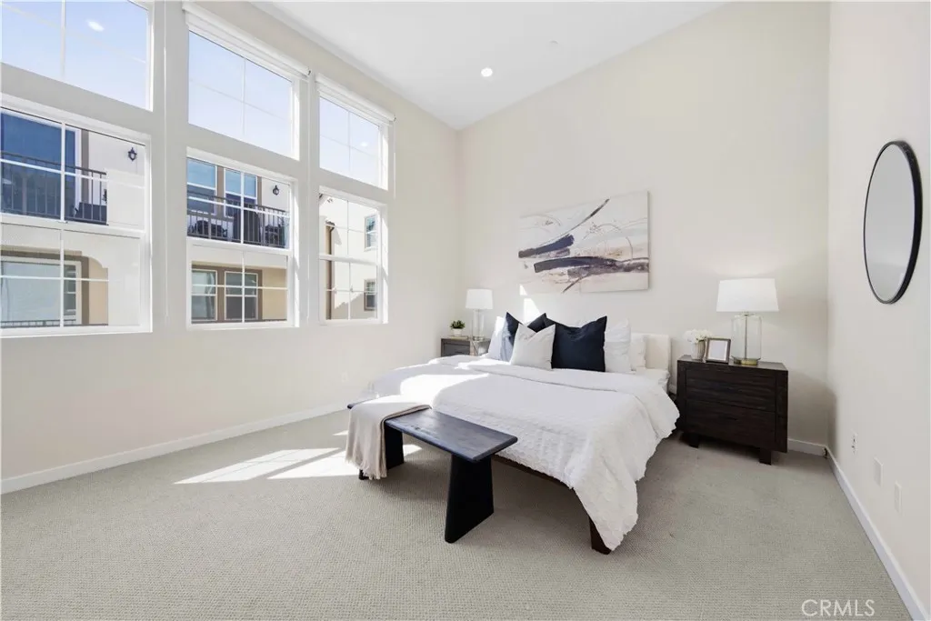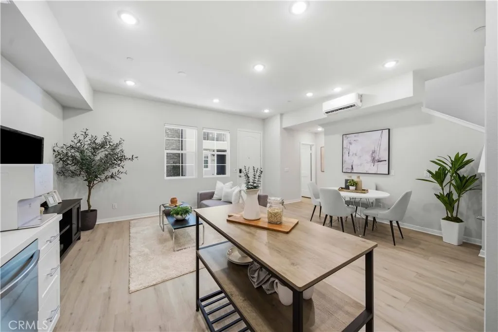 Welcome to 105 Lugo in Mission Viejo, a beautifully maintained, newer construction home built just about two years ago and proudly owned by its original owner. Located in the desirable Saddleback Place community by Trumark Homes, this modern residence offers the perfect blend of contemporary design, energy efficiency, and low-maintenance living. With approximately 887 square feet of thoughtfully designed space, the open-concept floor plan feels bright and spacious, enhanced by oversized dual-pane windows that fill the home with natural light. The main living area features wood-look luxury vinyl flooring, recessed lighting, and custom window treatments, creating a clean, sophisticated look. The kitchen is both stylish and functional, complete with stainless steel appliances, sleek countertops, white cabinetry, and seamless flow into the living and dining areasideal for everyday living and entertaining. Upstairs, plush upgraded Berber carpeting lines the staircase, hallway, and primary bedroom, adding warmth and comfort. The spacious primary suite is highlighted by dramatic 13-foot ceilings, creating an airy retreat with an open, light-filled ambiance. Built with todays efficiency standards in mind, the home includes owned solar panels and a tankless water heater, offering long-term energy savings. An oversized one-car garage plus an additional dedicated parking space provide added convenience. Residents enjoy access to the community pool, spa, and BBQ area, perfect for relaxing or gathering with friends. Conveniently located near the 241 Toll Road, major freeways, shopping,
