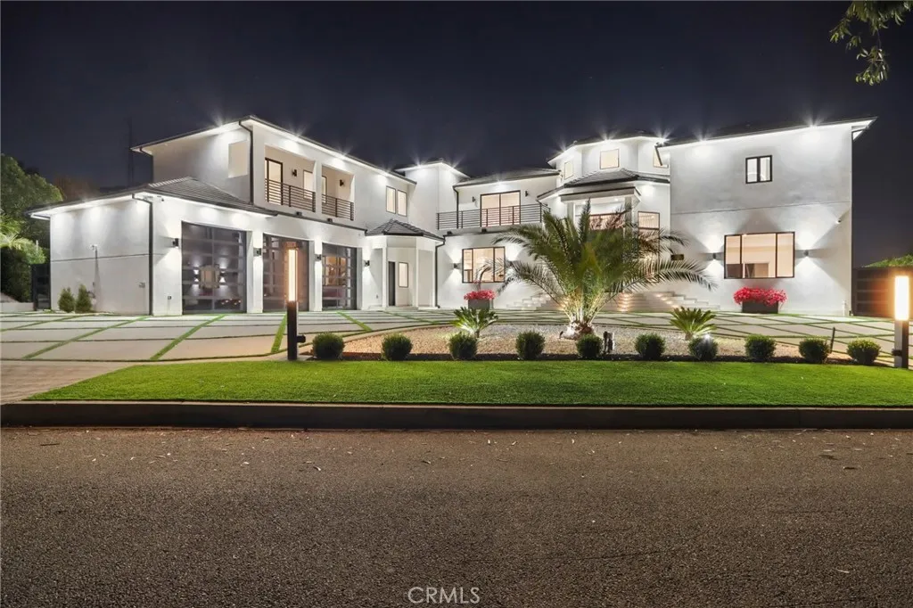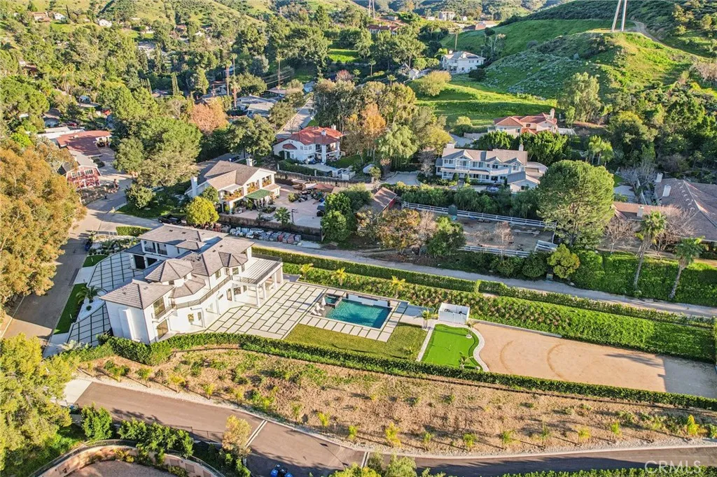 Brand-New Shadow Hills Stunner | Ultimate Luxury Estate! Welcome to luxury living at its finest. This brand-new Shadow Hills estate spans over 5,600 square feet of impeccably designed living space and delivers a true entertainers masterpiece. Enter through custom wrought-iron doors into a breathtaking formal foyer showcasing soaring two-story ceilings and a dramatic double staircasea striking architectural statement from the moment you arrive. The step-down living room features a sleek modern electric fireplace, creating the perfect ambiance for entertaining. A formal dining room seamlessly transitions into the family room, highlighted by wall-to-wall folding glass doors that invite indoor-outdoor living at its best. At the heart of the home lies a one-of-a-kind chefs kitchen, complete with a massive center island, Taj Mahal quartzite countertops, sophisticated German cabinetry, and top-of-the-line Miele appliancesa dream for both chefs and design enthusiasts alike. The expansive primary suite is a private retreat, featuring a spacious balcony with stunning mountain views, a generous walk-in closet, and a spa-inspired en-suite bath with soaking tub, dual vanities, and an oversized walk-in shower with rain head and floor-to-ceiling designer tile. Step outside to a true resort-style backyard, designed for ultimate entertaining. Enjoy a covered patio with fireplace, a Baja-style pool with waterfall, oversized spa, putting green, and lush landscaping supported by a drip irrigation system. The property also offers ample space for a guest house or sports court, just under an acre