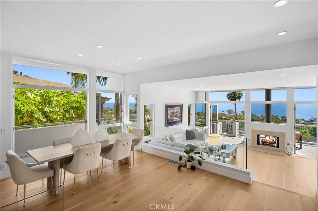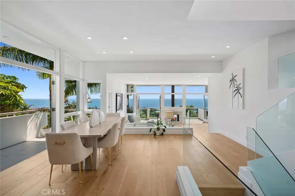 Retreat to a private world of luxury and breathtaking ocean and whitewater views at this spectacular custom home in Laguna Beach. Welcome to 1061 Skyline Drive, an artfully reimagined residence tucked into the desirable Lower Mystic Hills enclave. Set against a stunning backdrop of unobstructed, 180-degree vistas stretching across the Pacific Ocean and Catalina Island, this exceptional 4-bedroom, 4-bathroom home offers over 3,300 square feet of elevated coastal living. Thoughtfully upgraded with timeless elegance, the home features a soft, neutral palette that compliments wide-plank hardwood flooring, vaulted ceilings, and expansive walls of glass that flood the interiors with natural light and perfectly frame the dramatic ocean views. The designer kitchen is both refined and functional, showcasing porcelain countertops, custom cabinetry, and premium Sub-Zero and Thermador appliances ideal for both everyday living and stylish entertaining. Main living areas extend to ocean-facing view decks, where year-round sunsets and gentle coastal breezes set the tone for effortless indoor-outdoor living. The primary suite serves as a private sanctuary, complete with a fireplace, walk-in closets, a spa-inspired bath, and a secluded terrace with sweeping views. On the lower levels, three additional bedrooms accompany a secondary living area perfectly suited as a home theater with a retractable cinema screen and high-resolution projector. These spaces open directly to a large entertaining deck and an oversized, landscaped backyard offering privacy, versatility, and a beautiful setting for