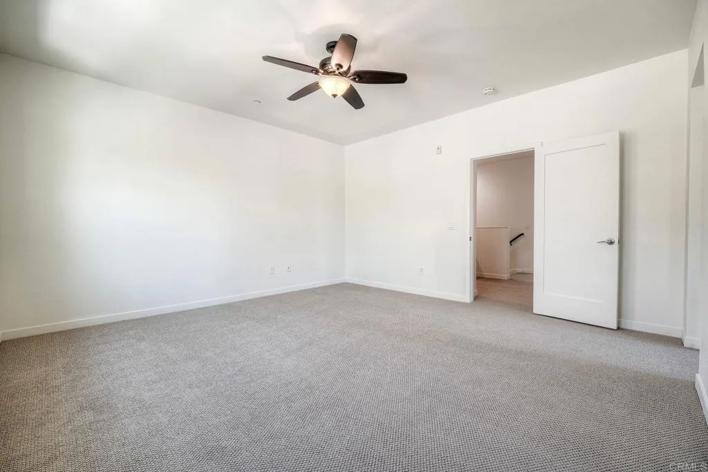 End unit townhome, four bedroom, 2.5 bathrooms in the heart of Carmel Valley within walking distance of Sage Canyon Elementary and Sage Canyon Park. The breezes and open feeling are felt in and out of the house. The lower level is hardwood floors throughout with high volume ceilings. The great room is drenched in natural light. The kitchen is huge with tons of storage and counterspace with natural stone counter tops, plus a large walk-in pantry. A breakfast bar is great for the quick snack or meal. Stainless appliances cap off the perfect cook's space. There is a half bath on the lower level and an attached two car garage. Upstairs are 4 ample sized bedrooms with an ensuite main and a shared full bath for the remaining bedrooms, with celling fans in every room. A full sized laundry room too.