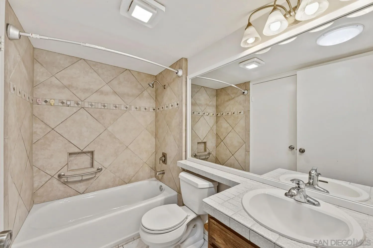 This beautifully situated single-story end-unit offers the privacy and comfort of having no neighbors above or below, surrounded by lush trees and serene greenery. The thoughtfully designed two-bedroom layout features a spacious living area that opens to a large private patio—perfect for relaxing or entertaining—complete with a convenient storage room. Inside, the home offers an in-unit laundry room, a walk-in closet in the primary bedroom, and modern upgrades including a solar system for added efficiency and comfort. Two assigned parking spaces provide everyday convenience. Residents enjoy access to resort-style community amenities, including pools, spa, and tennis courts, all within a welcoming, dog-friendly neighborhood. Ideally located in San Diego, this home combines peaceful surroundings with easy access to everything the area has to offer.