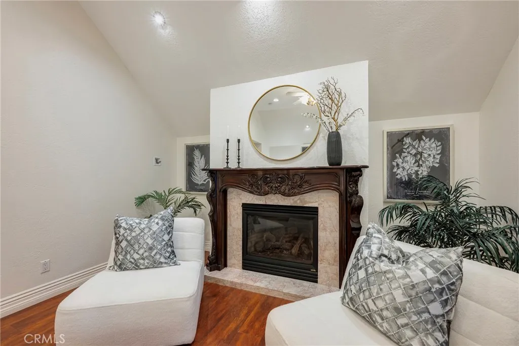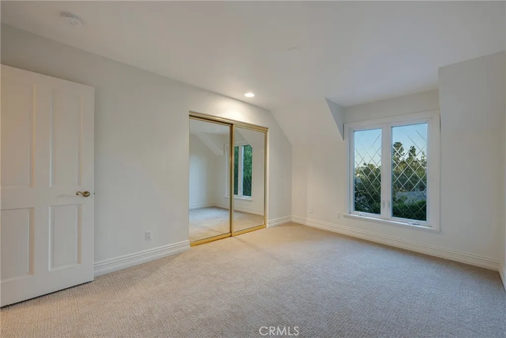 A private road leads to this exceptional, secluded & spacious North Tustin property surrounded by mature trees. This beautiful home offers 5 bedrooms, 3.5 bathrooms with an inviting ambience throughout. The downstairs bedroom is used as an office with impressive, custom built-in cabinetry and elegant en-suite bathroom. The formal living and family rooms make a striking impression with high beamed ceilings and welcoming fireplaces. The expansive first floor family room with wet bar is an inviting area for gatherings and celebrations. A formal dining room opens to an outdoor patio. The light and bright atmosphere is accentuated by the highest quality french doors and windows throughout the house. The second-floor family room/extra "bonus room" provides the flexible space today's luxury buyers demand. It leads onto an attractive walkway that circles around and down to the backyard, featuring a gazebo and peaceful meditation space along the way. The primary bedroom offers a fireplace and private balcony, ideal to enjoy quiet mornings. The en-suite bathroom features a jacuzzi soaking tub for relaxing moments. Three additional, spacious bedrooms complete the upstairs living area. An oversized attic with pull down access provides extra storage space. The resort like backyard is a true retreat with exceptional privacy, space and functionality. Designed for indoor/outdoor living, it features a unique waterfall, spa and refined bar & sitting area with built in BBQ. An entertainer's absolutely delightful dream! Don't forget about furry friends with a private, enclosed grassy area. An