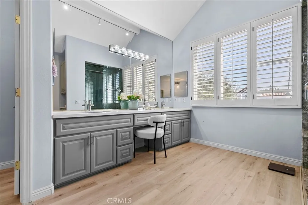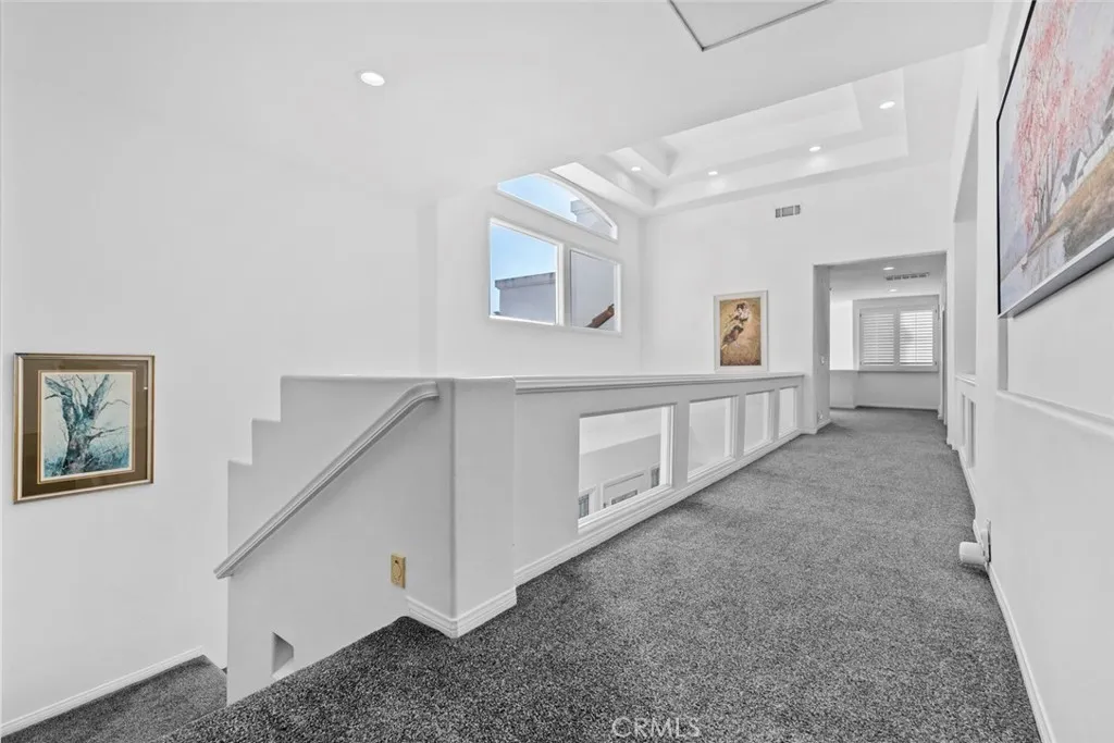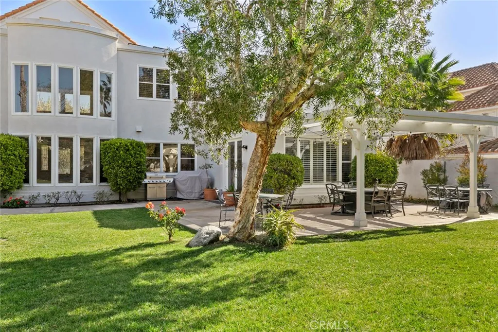 Stunning, contemporary estate located in a prestigious Chatsworth neighborhood. This home showcases 5 bedrooms and 5.5 bathrooms with over 5,400 sq ft of living space on a 17,499 sq ft flat lot. Featuring architectural details throughout, soaring two story ceilings, recessed lighting, high end tile flooring, impressive step-down living room with two story ceilings and windows overlooking the ample back yard. Plenty of natural light throughout. The remodeled kitchen boasts top of the line Viking appliances, a center island with bar seating and a spacious eating area that connects to the bright and airy family room, which features high ceilings and large windows with plantation shutters. A large office, powder room, bedroom, bathroom and dedicated laundry room complete the downstairs. Access the upstairs via two separate stairways at opposite sides for maximum convenience. The master bedroom showcases vaulted ceilings, and a separate seating area/office. A two-sided fireplace separates the bedroom and the large, spa-like bathroom that features a soaking tub, a glass enclosed shower, double sink vanity and two walk in closets. In addition, there are three other bedrooms each one with its own ensuite bathroom. Outside you will find a large patio with a pergola covered seating area, mature trees and plants and plenty of space to use as you desire. Limited access makes this a quiet neighborhood. Close to trails, bike paths, supermarkets, restaurants, coffee shops and all the conveniences that the Vineyards have to offer. Newly installed solar panels are paid off.