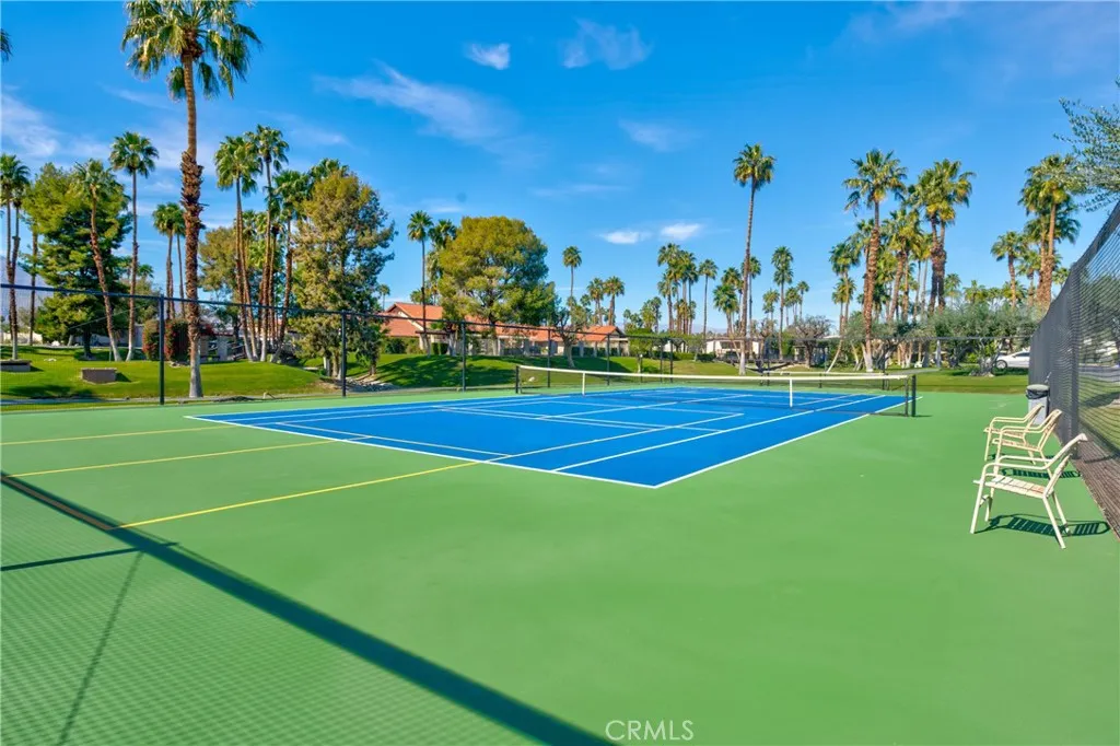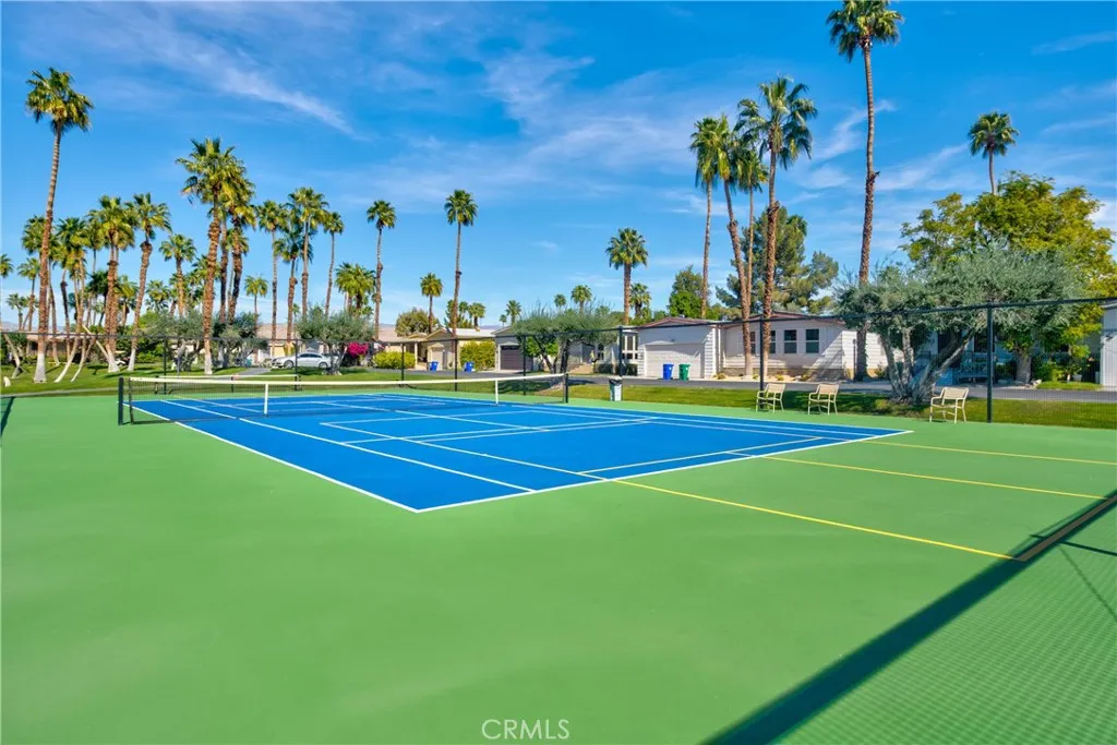 Wonderful home in the beautiful Desert Sands mobile home community. This home sits on one of the best lots in Desert Sands...beautiful view of the lake, club house, tennis & pickle ball courts. There is a two car garage with direct access to the house, a large kitchen, two dining areas, a bar. a living room and family room area...The large primary bedroom has french doors overlooking the lake, a walk-in closet, and a bathroom with a shower and tub...The owners put in a very large raised cement patio with room for a patio set, and BBQ. Plenty of room for a large family gathering, or a party...the clubhouse boasts a pool, spa, gym, and card room. This is a great place to live!