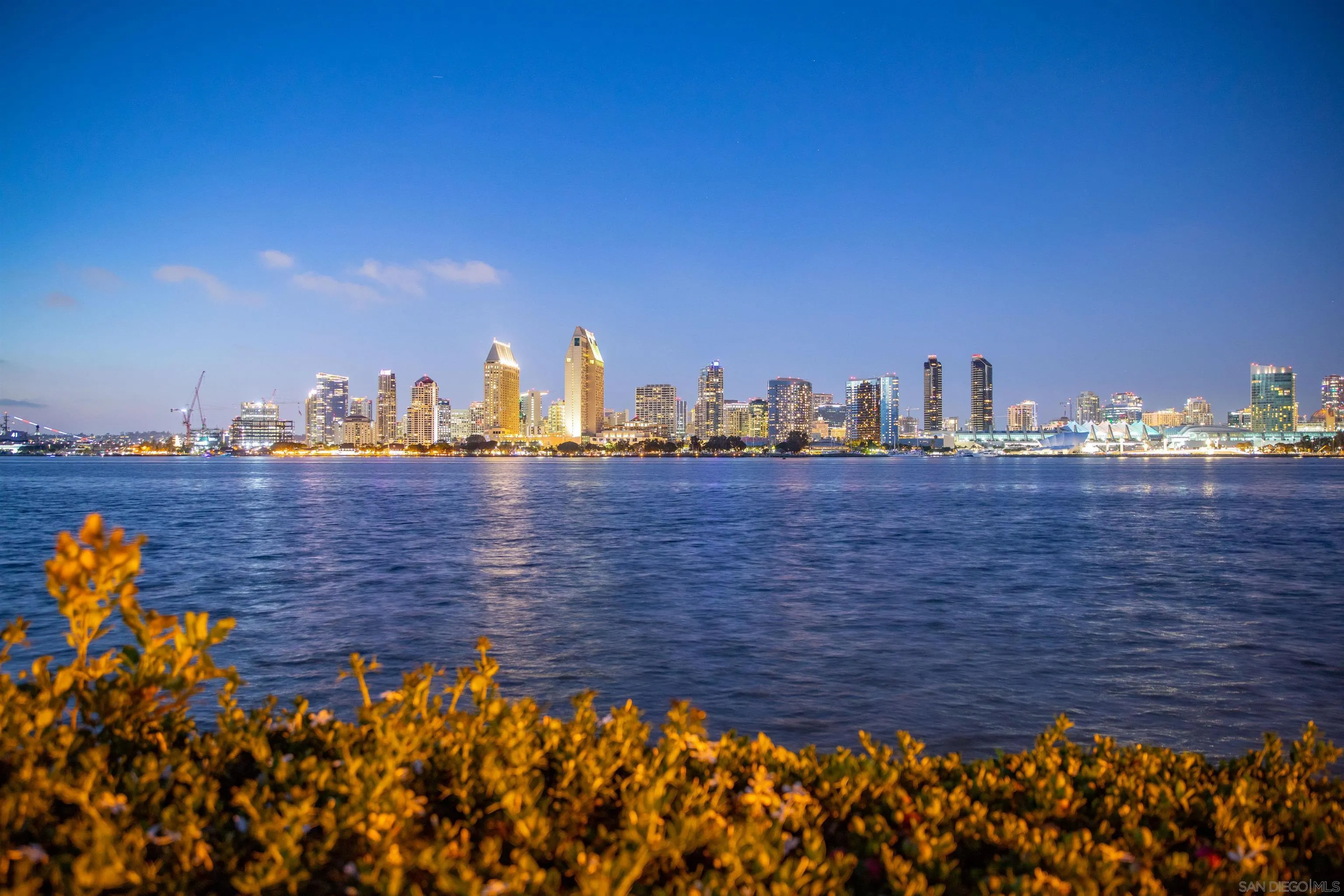 INCREDIABLE BAY AND CITY VIEWS - AVAILABLE EITHER LONG-TERM OR SHORT TERM FURNISHED. This extraordinarily beautiful corner unit condo with spectacular views of San Diego Bay and Downtown is fully furnished and ready for guests. Located in "The Landing," you have access to a pool, spa, BBQs and gym and you are within walking distance to the Ferry Landing, restaurants, bike path around the bay, shopping, and all Coronado points of interest and festive locations! The unit is well appointed and spacious enough for 2 couples or a family of 4 to spread out and relax and take in all the beauty that Coronado/San Diego Bay has to offer, from Navy ships cruising by, to fireworks and music from the Rady Shell in the evenings. The primary bedroom with king-size bed is complete with en suite bathroom and is located in the front of the unit facing the water and has unobstructed views of the bay and skyline. There's also a French door leading out to a sitting deck that allows for morning coffee or a glass of wine at sunset. The living/dining area also enjoys the same views along with access to the sitting deck. Bedroom 2, also en suite bath, has a queen size bed and is located near the entry of the unit. There is one covered parking spot included, AC and full-size washer and dryer inside unit. Fireplaces located in Living room and Primary Suite Beach chairs provided. You will love this location and want to return each year.