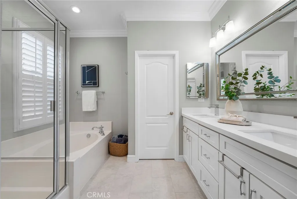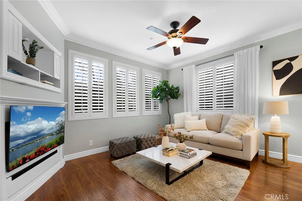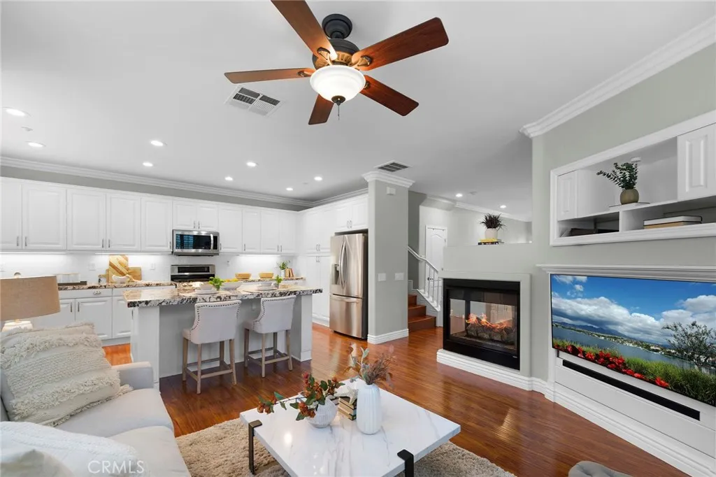 **HIGHLY DESIRABLE END UNIT and RARELY AVAILBLE PARK-FACING LOCATION** This timeless style home offers an abundance of natural light, park-facing, and 1,761 square feet of living space with 3 Bedrooms and 2.5 Baths. As one of the most sought-after floor plans and locations in Briar Rose, it has high ceilings with a separate formal living room and dining room featuring a peninsula fireplace adjacent to the family room and gourmet-style kitchen. The kitchen features an oversized island perfect for entertaining and is equipped with stainless steel appliances, generous cabinet space, subway tile backsplash and beautiful granite counter tops. The primary bedroom has a dual entry walk-in closet and primary bath with dual sinks with separate soaking tub and shower. Charming secondary bedrooms are both light and bright with generous closet space; full hallway bath adjacent. Dedicated upstairs laundry room with linen cabinet and folding counter offer ample storage space. The generously sized 2-car garage includes a bonus storage area. As you tour the home, you will also find many upgrades which include crown molding, tall baseboards, quartz counter tops in bathrooms, hardwood style and ceramic flooring, plantation shutters, recessed lighting, custom paint, tankless water heater and re-piped with Pex piping. Walking distance to Oso Grande Elementary. Enjoy the award-winning community amenities that Ladera Ranch has to offer!